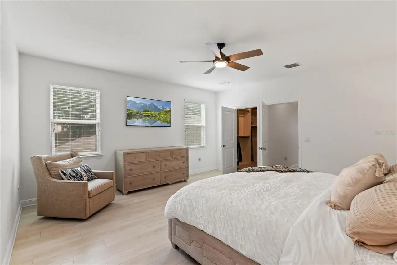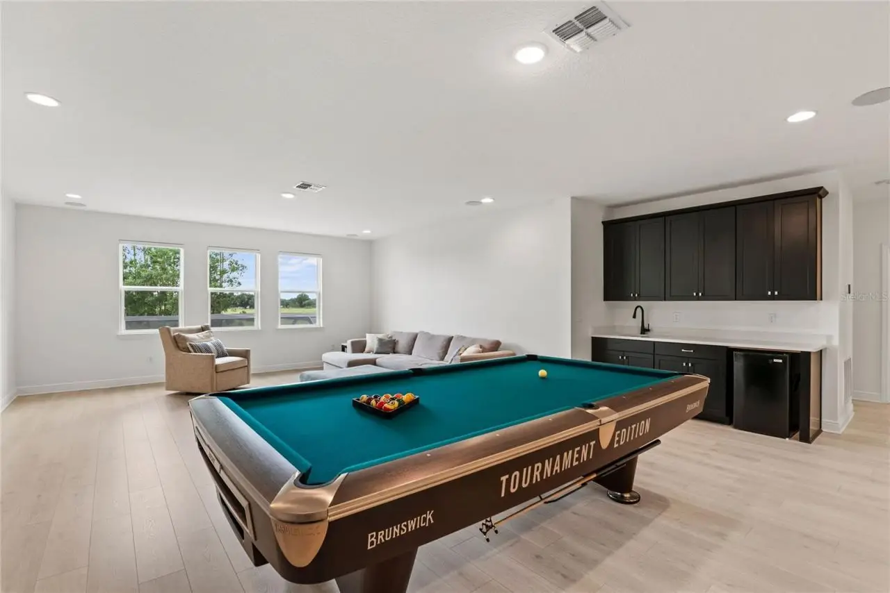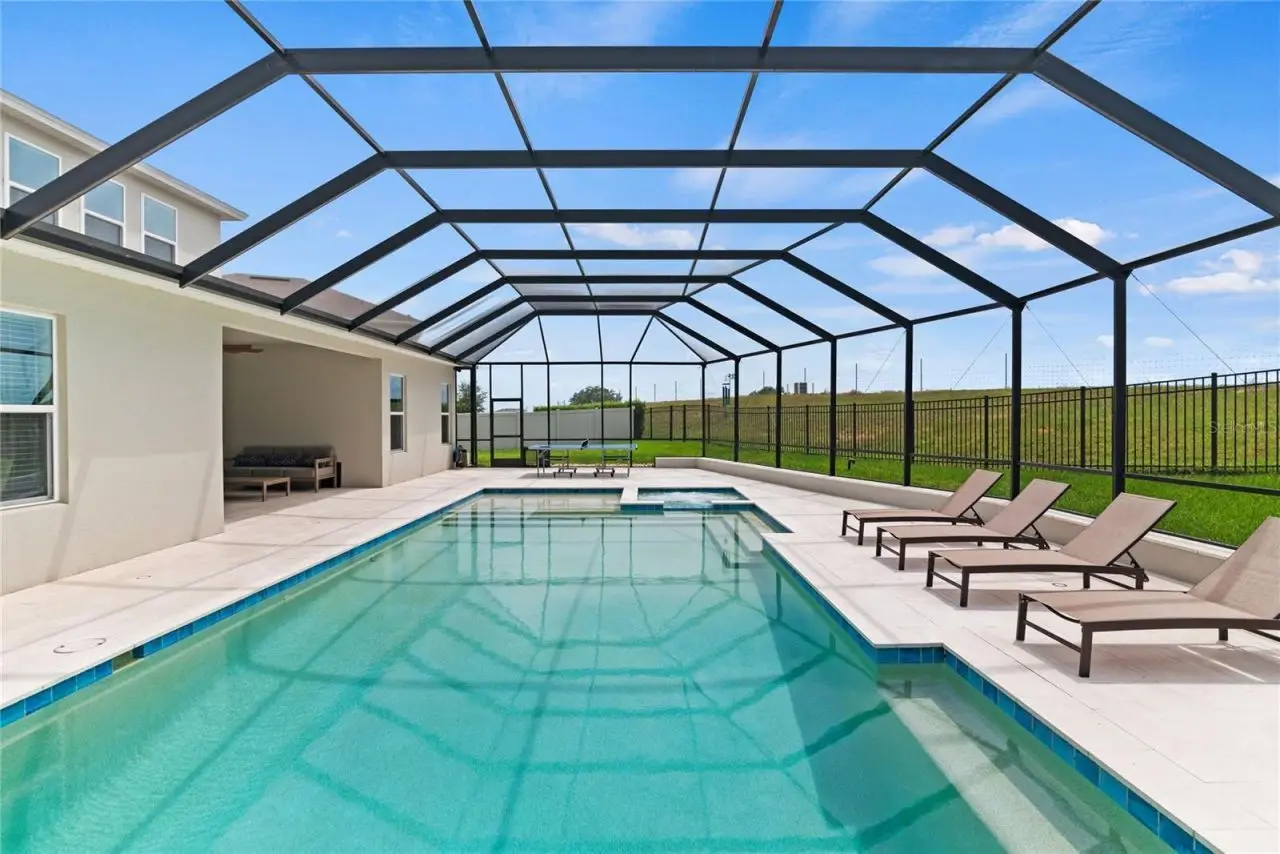 BEAUTIFUL, MOVE IN READY fully upgraded home in Winter Garden's Wincey Groves! This Dream Finders 'Arlington w/Bonus home sits on one of the largest and most private lots in the entire community, with no rear neighbors and breathtaking sunset views every evening. Boasting 6 spacious bedrooms, 4 full bathrooms, and a large upstairs bonus room with wet bar and space for a wine fridge, this home offers comfort and space for families of all sizes. The oversized 2-car garage includes additional workshop/storage space, a sealed floor, ceiling-mounted storage racks, slatwall organizing system, and a Tesla car charger. Step inside to find 10' ceilings on the first floor and 9' ceilings upstairs, a neutral design, and an open-concept layout perfect for modern living. The gourmet kitchen features 42 upper cabinets with crown molding and hardware, quartz countertops, oversized island with breakfast bar, tile backsplash, double ovens, and a custom corner pantry with built-in shelving. The kitchen flows into the family room, where you'll find a built-in entertainment center and cozy fireplace. Slide open the pocket glass doors to your covered, screened-in patio and enjoy the saltwater pool and spa, complete with an ozone generator for water purification and new rock landscaping along the sides of the pool/equipment. It's an entertainer's dream and the perfect oasis to sip your morning coffee or wind down at sunset. The private downstairs owner's suite overlooks the tranquil backyard and includes two closets-one with a permanent safe. The en-suite bath offers a standalone tub, tiled walk-in shower, and dual 'adult height vanity with quartz counters. Also downstairs are three additional bedrooms and two full baths, with one bedroom offering double doors, making it a possible home office or den. Every bedroom, the pantry, under-stairs closet, and office feature custom closet organizers. The custom laundry room provides ample cabinetry and extra storage.Upstairs, enjoy the expansive bonus room, two additional bedrooms, and a full bathroom-perfect for guests, teens, or multigenerational living. Smart features abound: smart thermostats, Arlo doorbell, smart home light switches in the owner's suite and main floor, hunter douglas blinds, and automated smart blinds on the downstairs slider and bonus room. Ideally located in the heart of Hamlin, you're just minutes from major highways, theme parks, and top-tier shopping and dining. No need to wait to build -this upgraded, rare-lot home is available now. Don't let this gorgeous and spacious home pass you by!