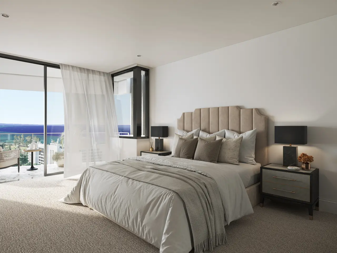 • Wide covered balconies with sweeping coastal views