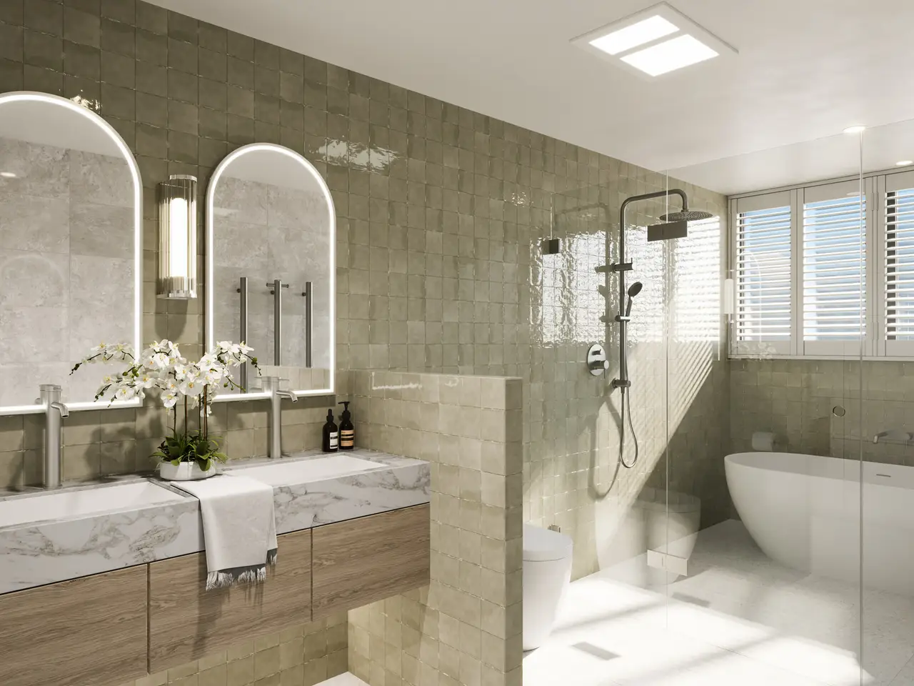 • Chic bathrooms with freestanding baths and rain showers