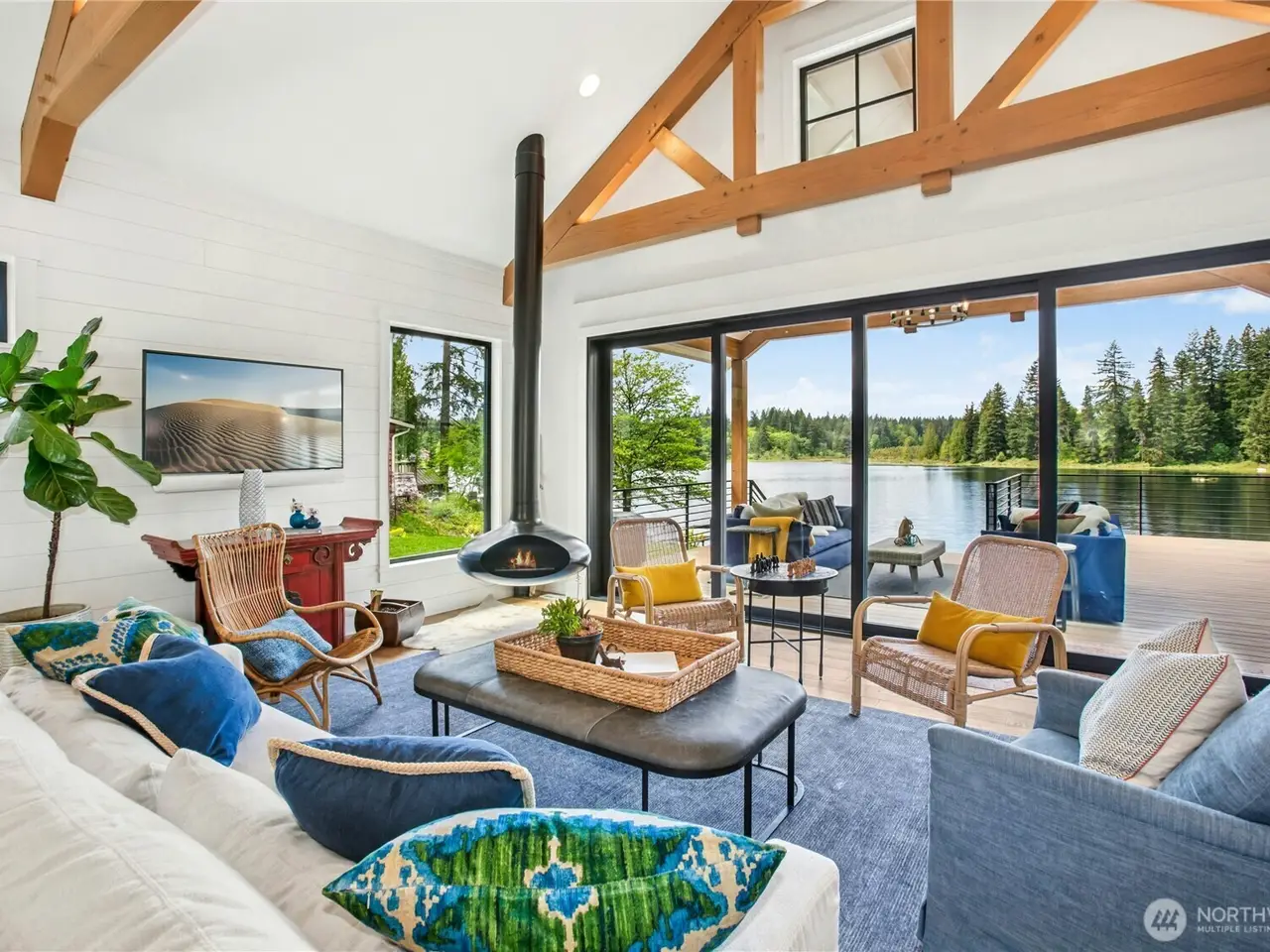 Welcome to Crystal Lake, one of the Eastside's most desirable waterfront communities! Reimagined & reconstructed by an interior designer in 2021, this dream home features a chef's kitchen with high-end appliances & an expansive great room with window walls opening to pristine lake views. The primary suite includes an ensuite bath, wall of sliders to lake views & hot tub access. With 4 bdrms, 4 baths, & a stunning home office, there's space for work and relaxation. The lower level offers a bonus room & gym/flex areas. A detached studio provides space for guests or rental. Enjoy indoor/outdoor living, sandy beach, dock, clubhouse, tennis/pickleball, & top Northshore schools - just minutes from downtown & wineries, yet a peaceful world away!