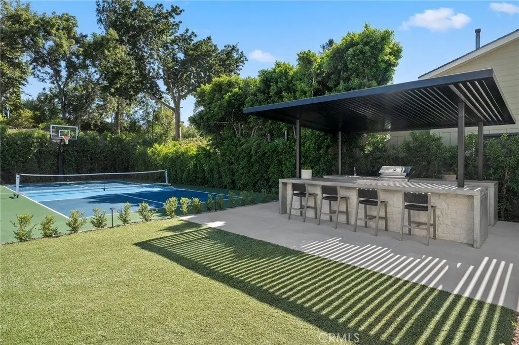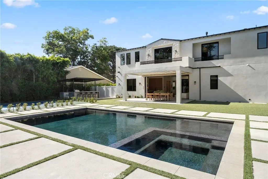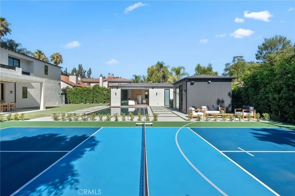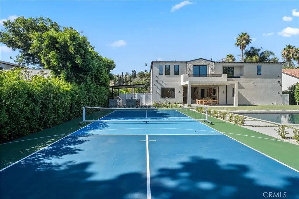 Welcome to this exquisite custom-gated estate, just completed and situated in the prestigious Walnut Acres community of Woodland Hills, CA. Nestled on a tranquil, quiet, and desirable street, this luxurious property offers a total living area of 6,418 square feet. It features a primary residence of 5,369 square feet, an 830-square-foot guest house, and a 219-square-foot gym. The estate features six spacious bedrooms, each with its own en-suite bathroom, as well as a guest bathroom located downstairs. Exceptional amenities include a sports court/pickleball court, a pool, a jacuzzi, a sauna, and an outdoor covered barbecue area. Inside, you will find a state-of-the-art theater room and convenient laundry facilities on both levels. Set on an expansive 18,338-square-foot flat lot, this property presents a rare opportunity to own a home in one of Woodland Hills' most sought-after neighborhoods.