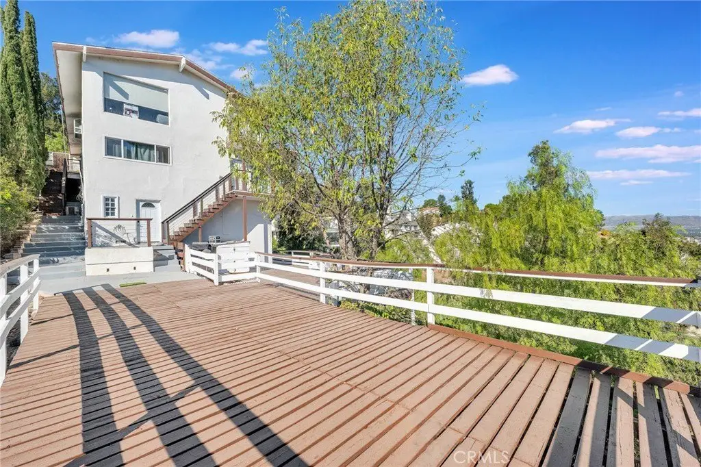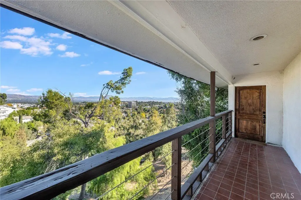 Perchée sur un terrain privé de 1 600 m² au sommet d'une colline, cette superbe maison moderne du milieu du siècle sur trois niveaux offre une vue panoramique imprenable sur la vallée de San Fernando et les montagnes environnantes. Située dans le quartier très prisé de Woodland Hills, au sud du boulevard, cette résidence de 3 chambres et 3 salles de bain allie harmonieusement style, confort et fonctionnalité. Le niveau supérieur présente une conception ouverte, idéale pour recevoir, avec de grandes baies vitrées qui inondent l'espace de lumière naturelle. Ce niveau comprend un spacieux salon, une salle à manger, une cuisine, une salle de bain pour invités et un accès direct au garage double. Au deuxième niveau, vous trouverez la luxueuse suite parentale, deux chambres supplémentaires, une salle de bain complète et un chaleureux séjour familial avec cheminée et bar. Le niveau inférieur dispose d'un studio polyvalent avec sa propre kitchenette, sa salle de bain et son entrée privée, idéal comme logement locatif, bureau à domicile ou suite d'invités. De plus, la propriété comprend un logement indépendant pour les belles-mères, offrant encore plus de flexibilité pour les revenus locatifs ou la vie de famille élargie. Chaque niveau dispose de son propre système de climatisation, garantissant un confort optimal toute l'année. Située à quelques minutes des autoroutes, du Warner Center, du Village, d'écoles prestigieuses, de restaurants raffinés et d'une vie nocturne animée, cette maison est le refuge idéal pour ceux qui recherchent la quintessence du style de vie californien, alliant intérieur et extérieur.