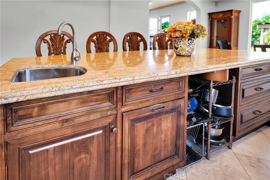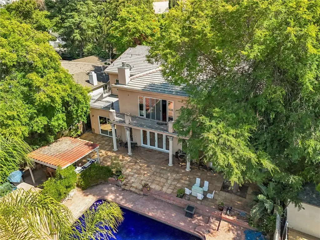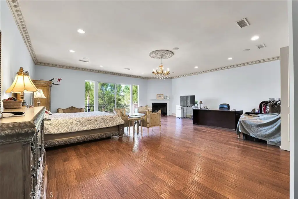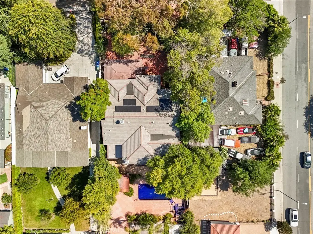 Set on a quiet, tree-lined street, this stunning 6,250 sq ft residence, rebuilt in 2007, sits on a sprawling 22,804 sq ft lot. Designed for both luxurious living and seamless entertaining, the home features 6 bedrooms, 7.5 bathrooms, and a flexible bonus room—two bedrooms and the bonus room are conveniently located on the main level. Enter through grand double doors into an impressive foyer with vaulted ceilings, elegant crown molding, and a formal living room with a striking marble fireplace. The gourmet kitchen, inspired by French design, includes custom European Craftsman cabinetry, granite countertops, a large center island, and high-end Sub-Zero and Wolf appliances. A cozy breakfast nook overlooks the expansive backyard with a sparkling pool—perfect for both entertaining and peaceful moments. Upstairs, an antique wrought-iron staircase leads to four spacious bedrooms, including the opulent primary suite with a private balcony, dual walk-in closets, and a fireplace. Additional highlights include marble flooring throughout the first level, an integrated sound system, a fully gated semi-circular driveway, a 3-car garage, and energy-efficient solar panels. With a perfect blend of classic elegance and modern convenience, this home offers unparalleled living in one of Woodland Hills' most coveted neighborhoods. Owner may consider seller financing or lease options.