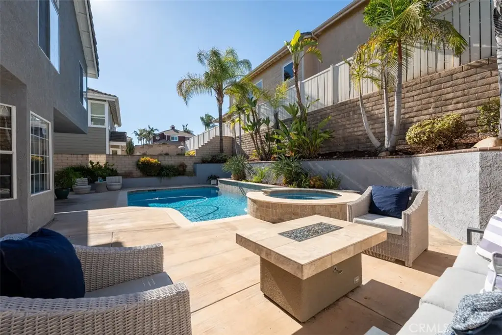 Welcome to Fairmont Terrace, a gated community offering privacy and convenience. This spacious 4 bedroom home, 3 baths with a loft and three-car garage showcases an open floor plan with thoughtful upgrades throughout. The main level features a bedroom and bath, perfect for guests or multigenerational living. Enjoy gatherings in the living room with a custom-tiled fireplace and wood mantle, a formal dining room with a dry bar and wine fridge, and a family room complete with fireplace, built-ins, and French doors that open to the backyard retreat. The remodeled chef's kitchen boasts custom cabinetry, granite countertops, designer tile backsplash, stainless steel appliances including a Wolf six-burner cooktop, built-in Sub-Zero refrigerator, Sharp drawer microwave, walk-in pantry, and a cozy breakfast nook. Upstairs, a versatile loft with ceiling fan complements two secondary bedrooms and the luxurious primary suite, featuring vaulted ceilings, dual closets including a custom walk-in, and a spa-like bath with quartz countertops, soaking tub, walk-in shower, and light-up mirrors. Step outside to a private oasis with a saltwater pool and spa with waterfall accents, fire pit, and plenty of room to relax or entertain. Additional highlights include: steamer shower downstairs, interior laundry, surround sound, water softener and reverse osmosis system, updated HVAC upgrade, Lenox furnace/AC/ducting, new carpet, vinyl flooring, garage with built-in cabinets, Generac 24w generator and two EV chargers. Ideally located within the award-winning Plac/Yorba Linda school district and walking distance to parks and schools, this home combines elegance, function, and lifestyle in one perfect package. Your home search is over!