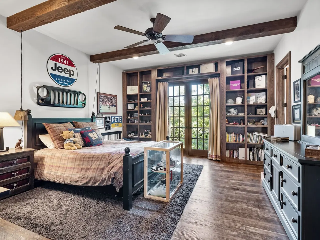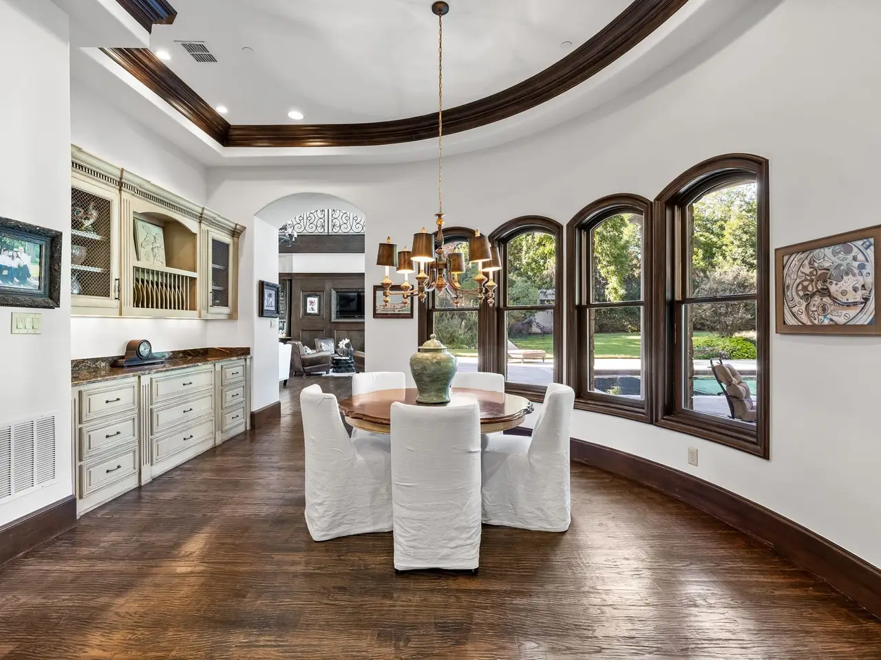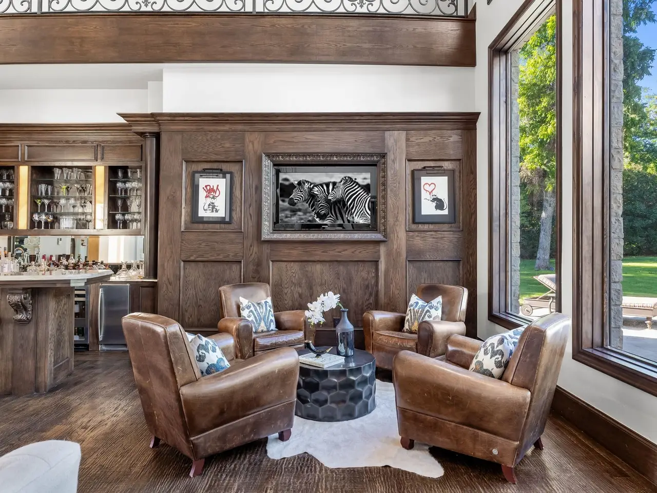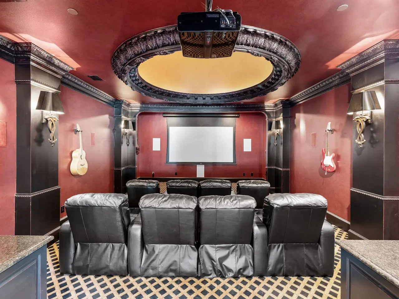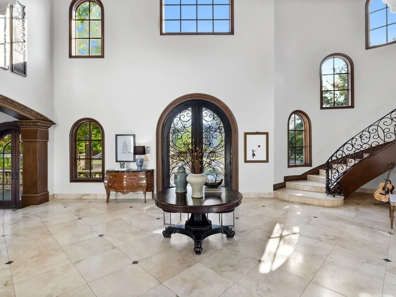 Majestic luxury in cul-de-sac home full of custom features, including private pond & fountain, energy-efficient features, elevator, and custom design touches. Grand entry wows with dramatic iron staircase and vaulted ceilings that show off gold inlay turret with chandelier. Huge dining room with French doors to front veranda, custom ceiling mural, and access to 750-btl temp-controlled wine room. Formal living features floor-to-ceiling UV-protected windows overlooking outdoor retreat, Isokern fireplace, and onyx-topped bar with 2 Uline fridges. Expansive gourmet kitchen includes 2 Bosch dishwashers, Viking 6-burner gas cooktop, double ovens, warming drawer, & massive island. Oversize walk-in pantry offers 2nd built-in fridge and extra storage. Stylish study has French doors to front patio and hidden room used as storm shelter. Primary suite feels like a luxury hotel, with imported wood doors from Bali, coffee bar & refrigerator, and elegant fireplace in sitting area. Spa-like primary bath with exquisite hand-carved marble tub, walk-in shower with dual heads, dual vanities, heated travertine flooring, and walk-in closet with island. Expansive game room offers space for pool table or gaming, with access to large balcony overlooking lush outdoors. Theatre includes ample seating and refrigerator for movie nights. Spacious exercise room fits machines & weights with access to steam shower bathroom. Secondary bedrooms have full baths & walk-in closets, and can be extra office or craft space. Expansive covered patio is ideal outdoor living, with built-in kitchen, fireplace, misting & mosquito systems, and room for seating & dining. Exquisite heated pool overlooks verdant yard with firepit, private pond, and fountain. Additional features include Infinity Carrier HVAC system, gated driveway & sport court, and upstairs 2nd laundry room. Close proximity to top-tier dining, entertainment, and golf courses. Conveniently located to Dallas top private and collegiate prep schools.