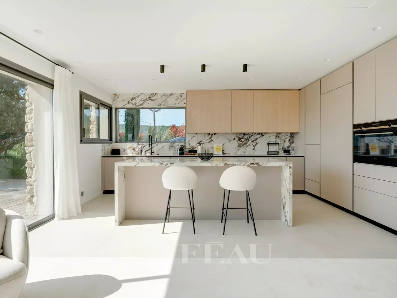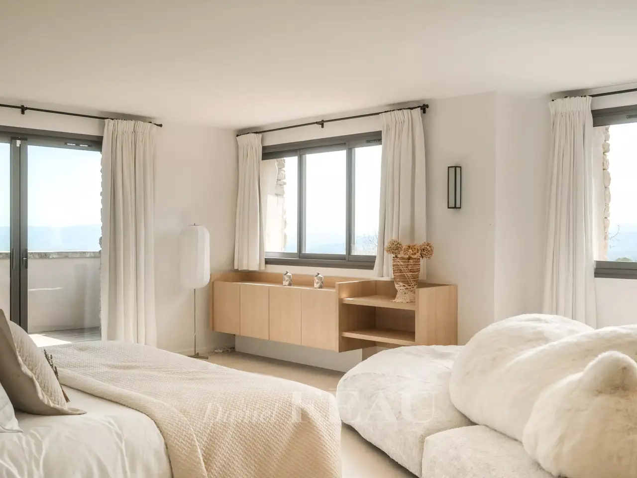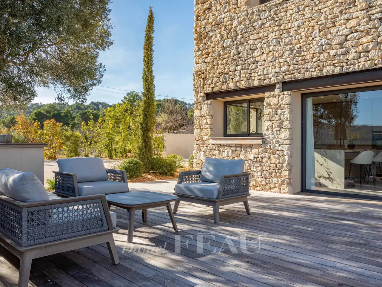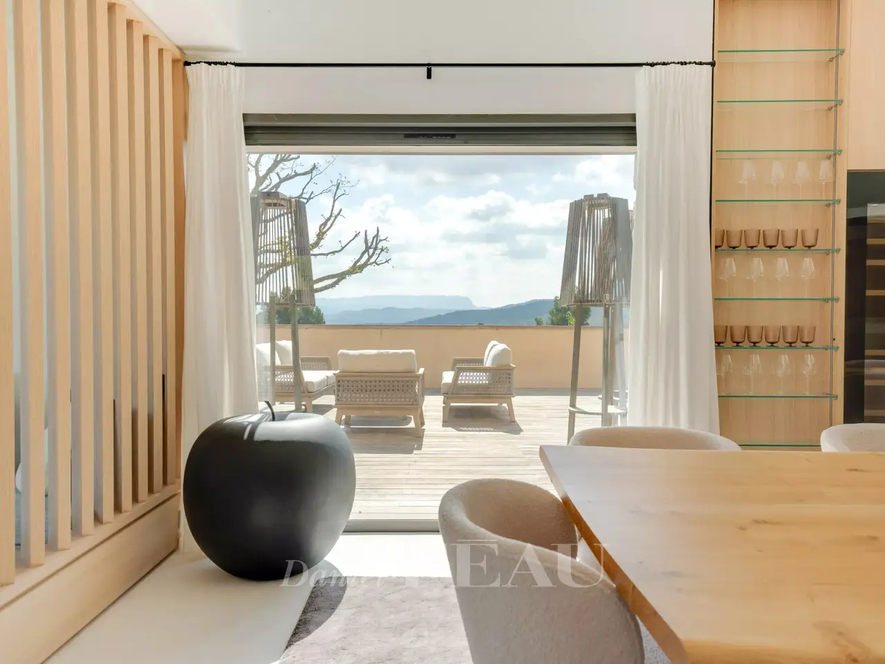Sole Agent. This superb property is located 15 minutes from Aix en Provence in an elevated setting commanding breathtaking views of the iconic Saint Victoire Mountain and the Luberon countryside. Offering 470 sqm of living space, it is set In 6 hectares of peaceful grounds (two hectares of which are enclosed and feature a 15 x 5 metre overflow swimming pool). Allying stone, steel and extensive glazing, the beautifully appointed and tastefully decorated main house includes a spacious entrance hall, a living/reception room and dining room and open-plan kitchen with wide patio windows opening onto 250 sqm timber-decked terraces, a study, and a suite with a bathroom and dressing room. Upstairs are a study/library area, and two suites including a 70 sqm master with a terrace overlooking the surrounding countryside. The garden level comprises a sitting room with a bar, two bedrooms including a suite, technical premises, a home cinema, a sauna, and a heated 10 x 4 metre swimming pool. There is also a further independent bedroom. With a car port for five vehicles. Water is provided by the Canal de Provence. Unique.