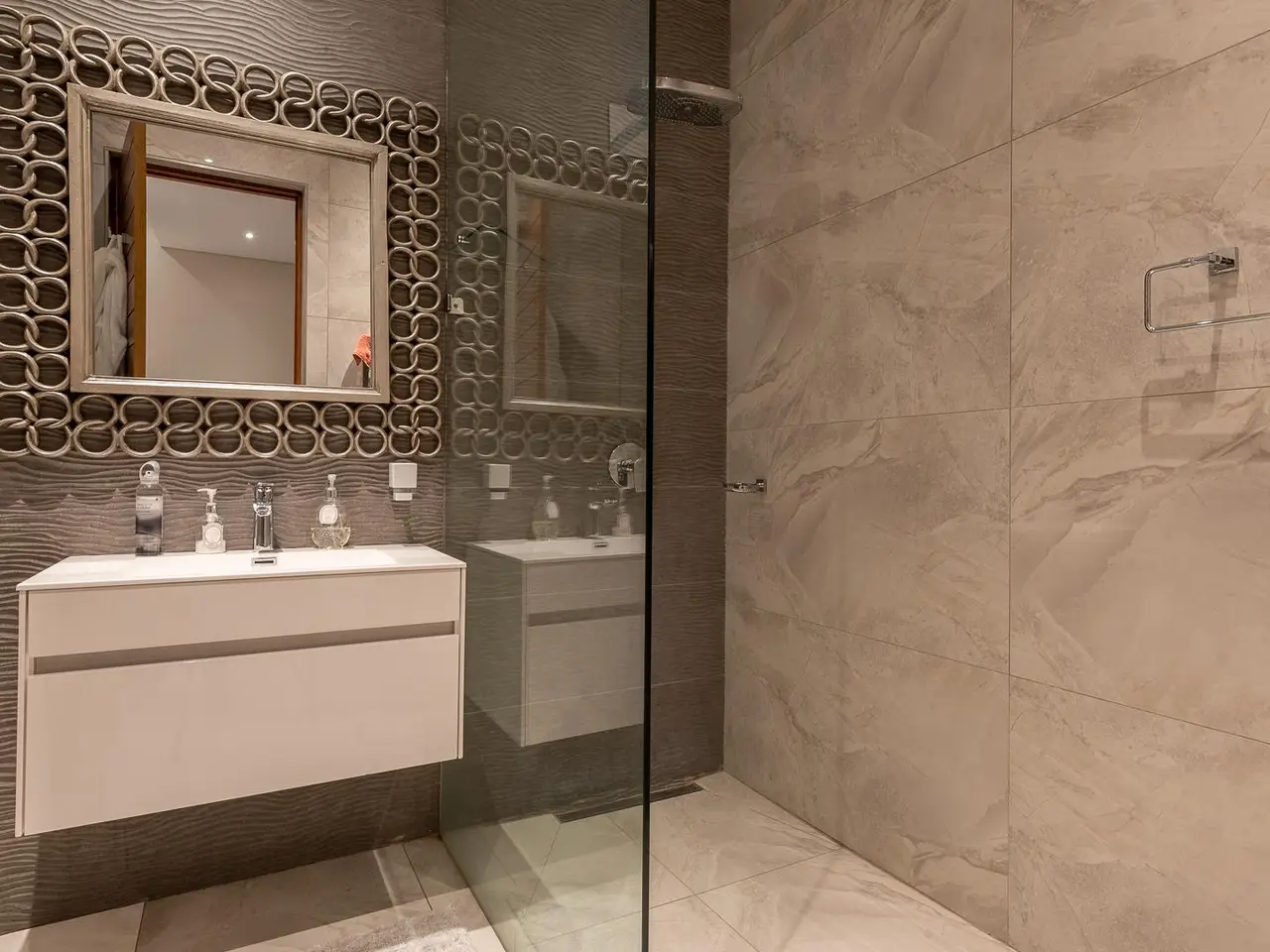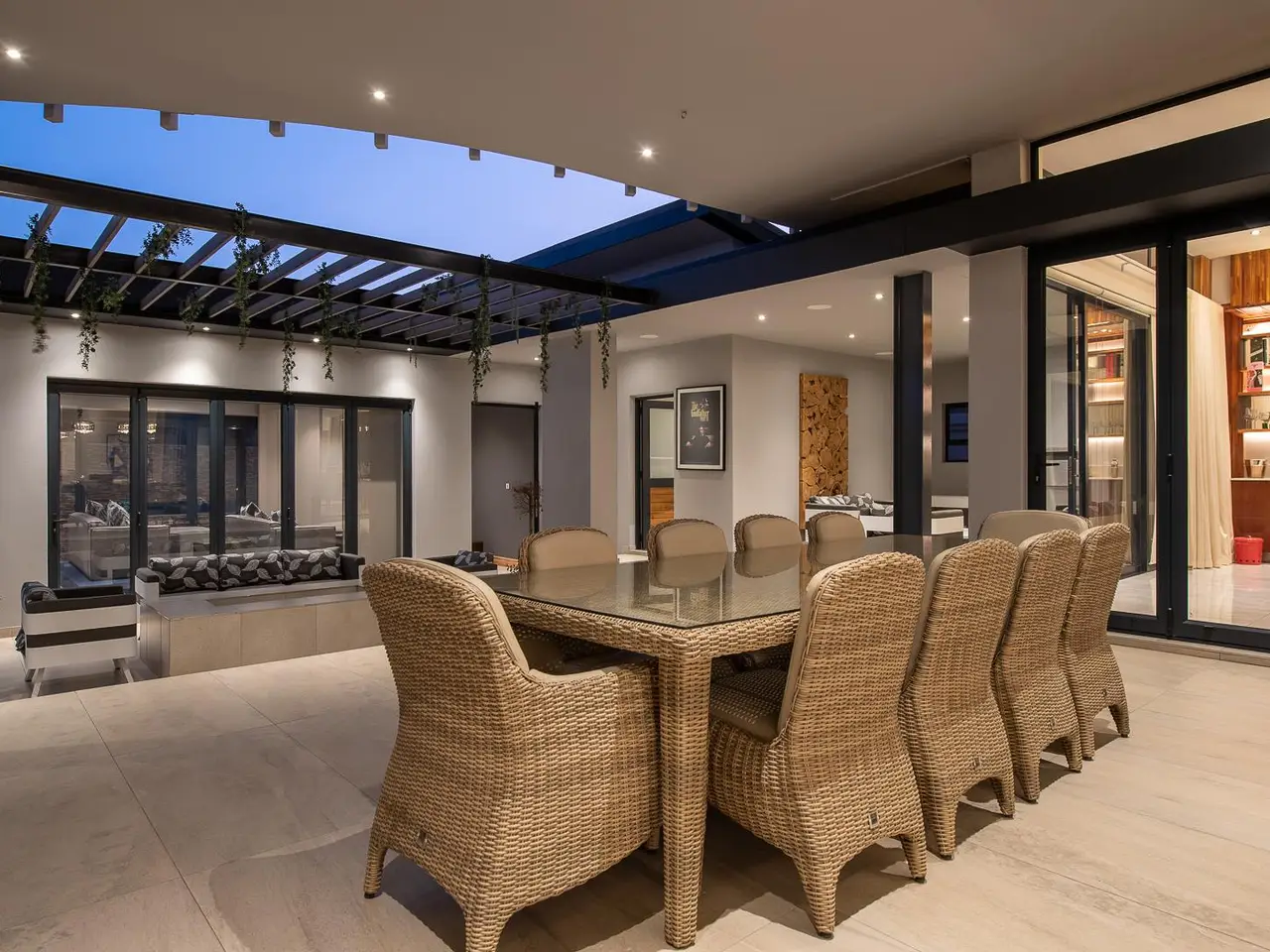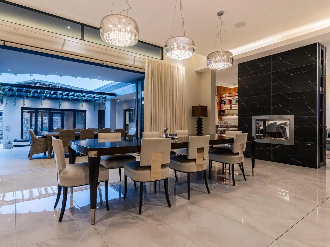 Location, Prestige Nature & Eco Estate, Architecturally Designed Master Built, Family Home & Entertainers Dream. With the use of quality Materials by the best builders in the business, An unmatched Architectural design that affords you effortless flow, allowing natural sunlight to highlight the homes natural beauty from the grand entrance, lit with grand Chandeliers to the formal lounge that opens to the patio and outdoor Pergola, A wine rack with entrance seating for guests to enjoy some delicious Pinot noir. A guest powder room/guest loo, guest bedroom en-suite, TV lounge with blue marble feature wall looking out to gorgeous landscaped gardens, open plan dining bar, living area with a well positioned fireplace for seperation. World class and gourmet chefs kitchen with miele deep fryer, griller, gas stove, oven, microwave complimented with scullery and pantry round off the ground floor living features. A seemless indoor outdoor flow takes you from inside perfection and class to outdoor paradise with eat out dining, boma, built in gas braai, outdoor elegant bathroom with shower and toilet, outdoor cinema and entertainment area with surround sound and projector screen where door stacks open to a beach entry to infinity swimming pool surrounded by rolling green lawns. Lets take you upstairs to Presidential accommodation, 4 oversized bedrooms all luxuriously en-suite with features and fittings that can only be described as class 5 star Hotel suites do not compare. Pyjama lounge with gas fireplace, gym, sauna, study and balconies complete the upstairs level. Full Home automation, aircons throughout, central vacuum, surround sound, cameras, staff accommodation, mounted generator, inverter system with solar panels, pool heat pump, 4 garages with direct access to the home and more. Call for exclusive viewing. *Extreme care has been taken to ensure that all representations contained in this advertisement are accurate and is provided on an GÇ£as isGÇ¥ basis with no guarantees whatsoever. The representations herein has not been compiled to meet a PurchaserGÇÖs individual requirements and it remains the PurchaserGÇÖs sole responsibility to inspect the property duly prior to entering into any purchase agreement. The representations herein does not constitute the terms of sale as the images and descriptions are merely indicative. Chas Everitt assumes no responsibility for any errors and we reserve the right to correct/change/update the advert at any time without prior notice.*