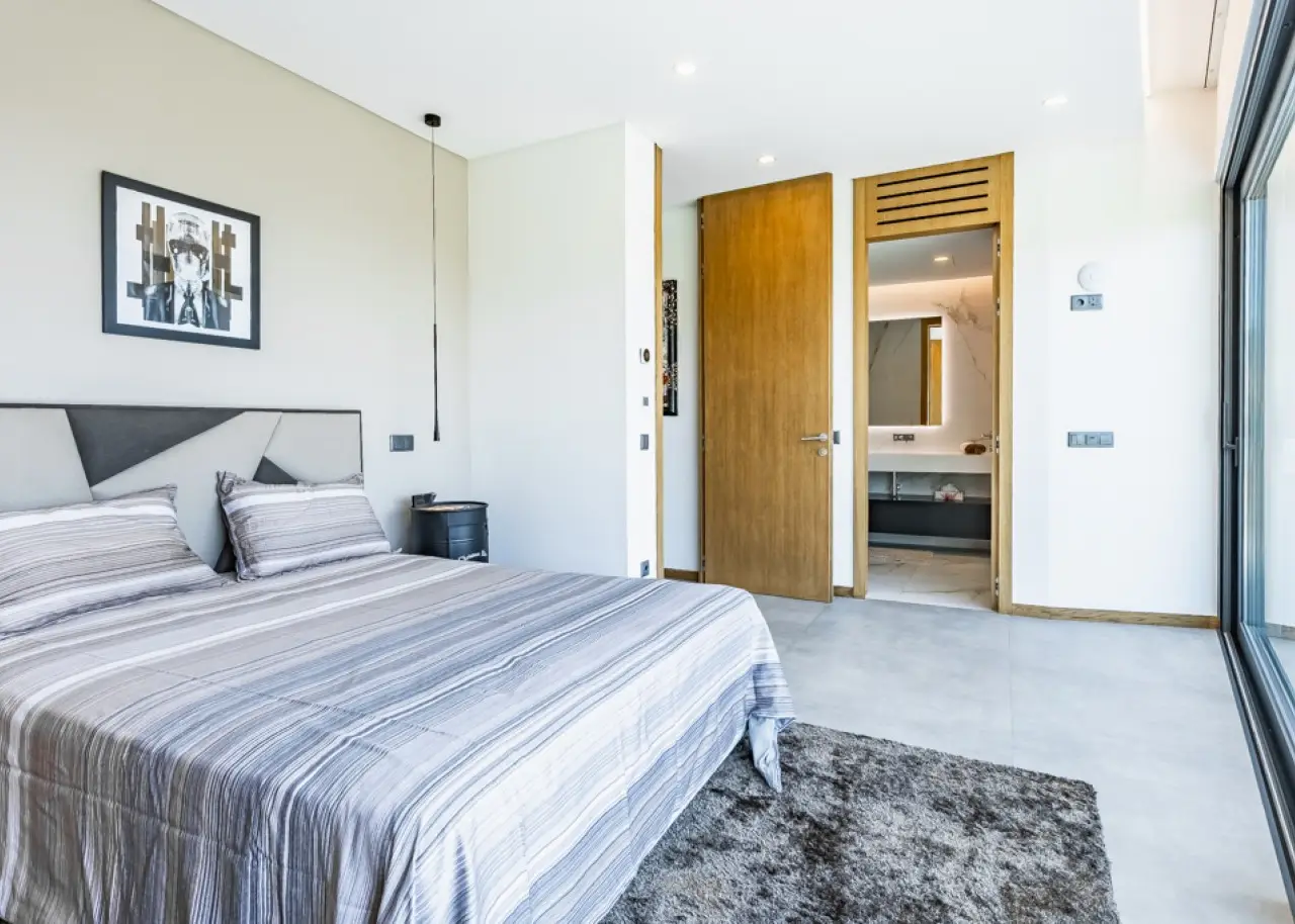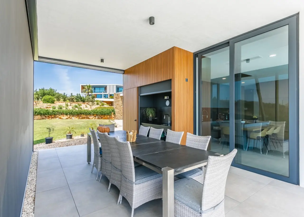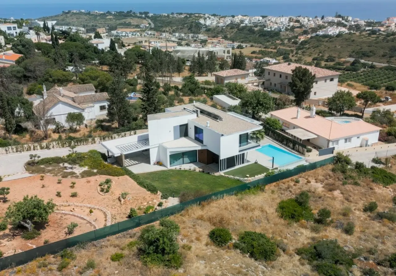 We present this elegant contemporary villa, with stunning sea views, located in the prestigious Cerro da Águia - one of Albufeira's most prized residential areas, in the heart of the Algarve. Recently built and spread over three floors, this property stands out for the functionality of its spaces, the quality of its finishes and a modern decor designed to offer comfort, privacy and sophistication. On the ground floor is the social area, with direct access to the terrace and pool. The large open-plan living room integrates living and dining areas, in perfect harmony with the fully equipped kitchen . There is also a versatile bedroom on this floor. The second floor is dedicated to the private area, with three suites, including the Master Suite with an exclusive balcony and panoramic views of the sea and Albufeira Marina. In the basement, there is a closed garage with capacity for three cars, a generous storage room, a technical area and an additional bedroom with a private bathroom. The outdoor space offers a well-kept garden with areas designed for leisure and socializing, including an outdoor dining area with barbecue, as well as a magnificent swimming pool with full sea views. There is also outdoor parking. This property is a unique opportunity for those looking for a house of excellence, with a modern design, in a privileged location and just a few minutes from the beaches, services and Albufeira Marina. CHARACTERISTICS: Plot Area: 1 193 m2 | 12 842 sq ft Useful area: 600 m2 | 6 462 sq ft Bedrooms: 5 Bathrooms: 6 Energy efficiency: A FEATURES: Contemporary villa 5 bedrooms Sea views Albufeira Marina 3 floors Garden Swimming pool Basement