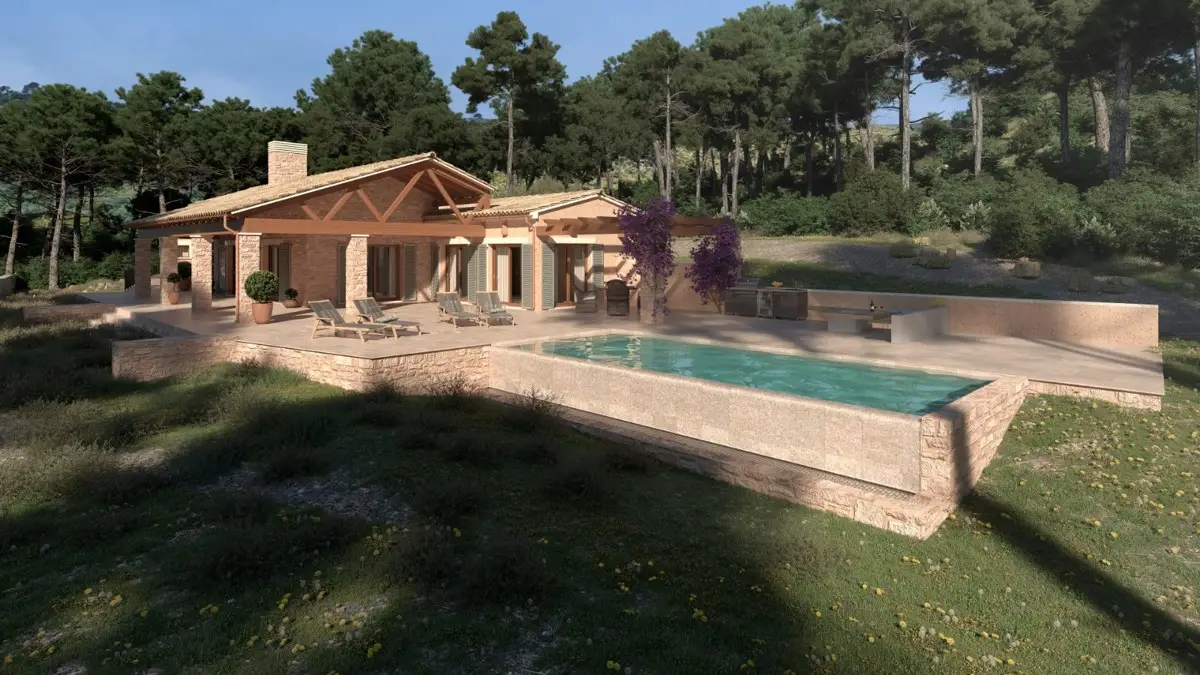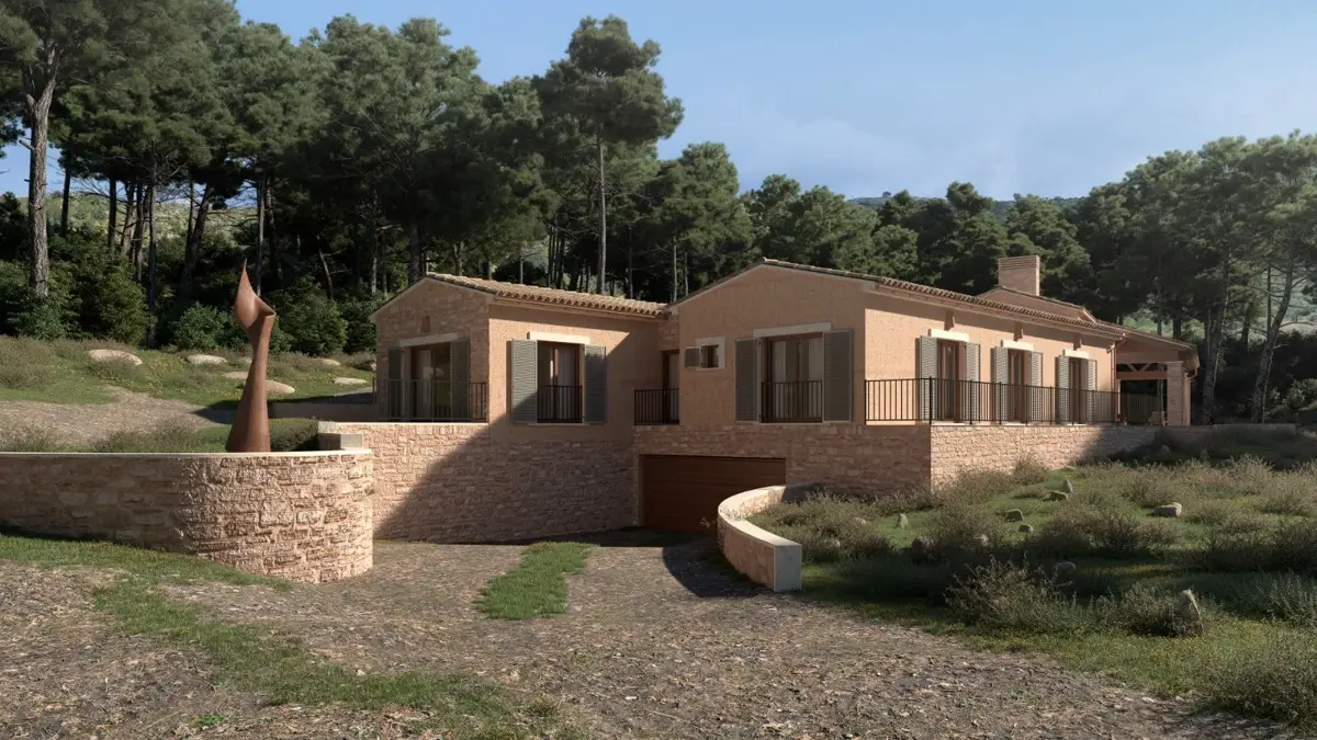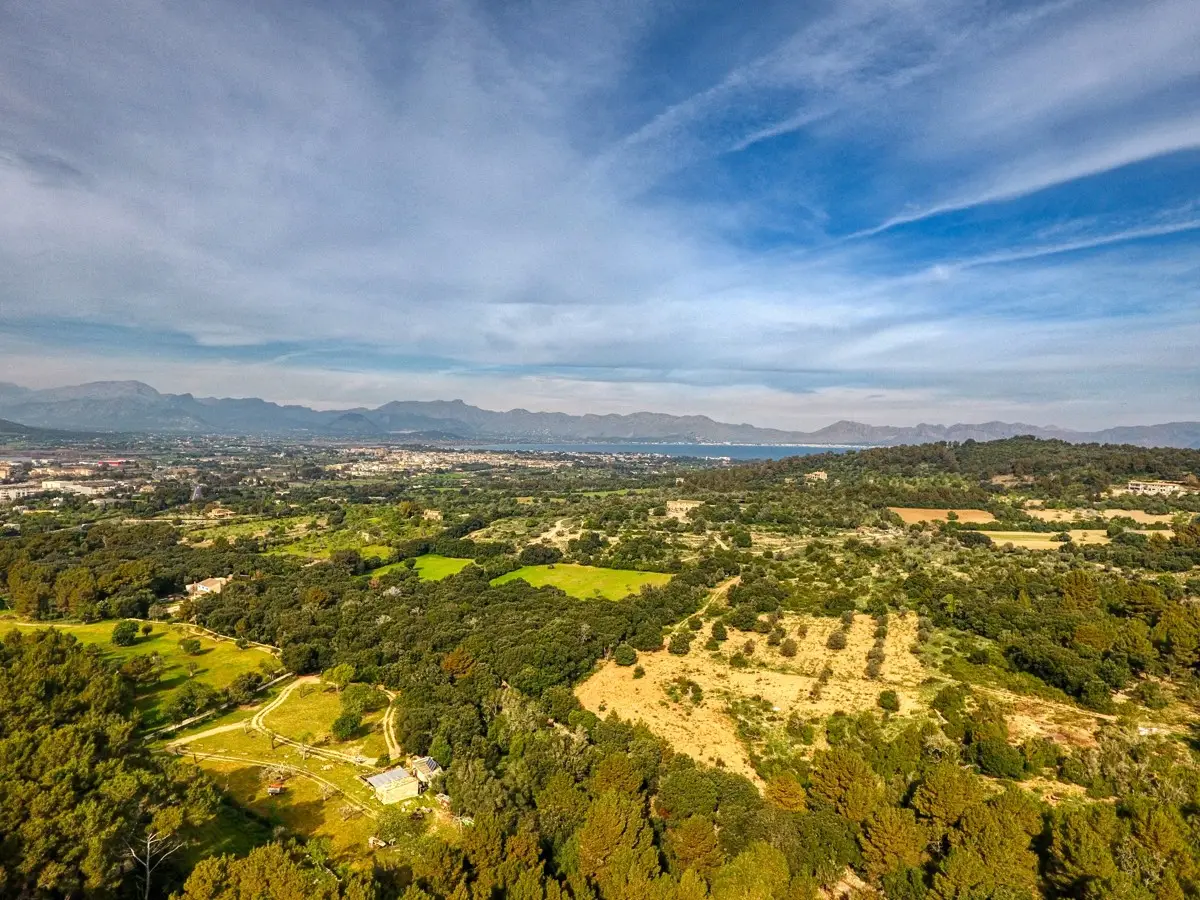 Fantastic finca plot with project near Alcudia with sea views This 3.5 hectare plot is completely private in the middle of nature and yet only 2 km from the center of Puerto Alcudia and its marina. The finca is planned on one level and has a complete basement. Surrounded by low-maintenance Mediterranean gardens with terraces, there are wonderful views of the sea. The plan is to have 4 bedrooms with bathrooms en suite, a large open kitchen, dining room, living room with fireplace and a large spa and wellness area. There is also a garage for several vehicles in the basement. Alcudia is a small municipality in the north of the island of Mallorca, 57 km from the capital Palma de Mallorca. The municipality is located on a small peninsula of 65 km2 between the Bay of Pollensa and the Bay of Alcudia and forms one of the most beautiful and magical corners of the island. Alcudia breathes history in every corner, where you will find remains of Roman cities, Templar walls, castles and countless historic buildings scattered throughout the municipality. Two kilometers from the city center in the Bay of Alcudia is the Port of Alcudia, a large and modern tourist and sports port with more than 750 berths. It is considered one of the most important ports on the island, ideal for a pleasant stroll and where you will find endless facilities and a wide range of leisure activities, water sports, restaurants and shops.