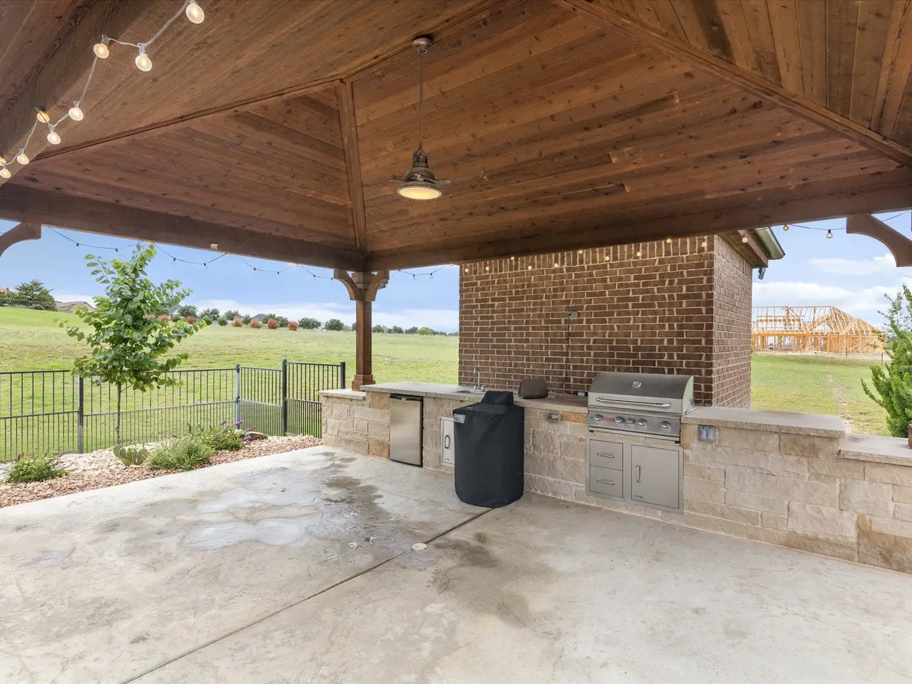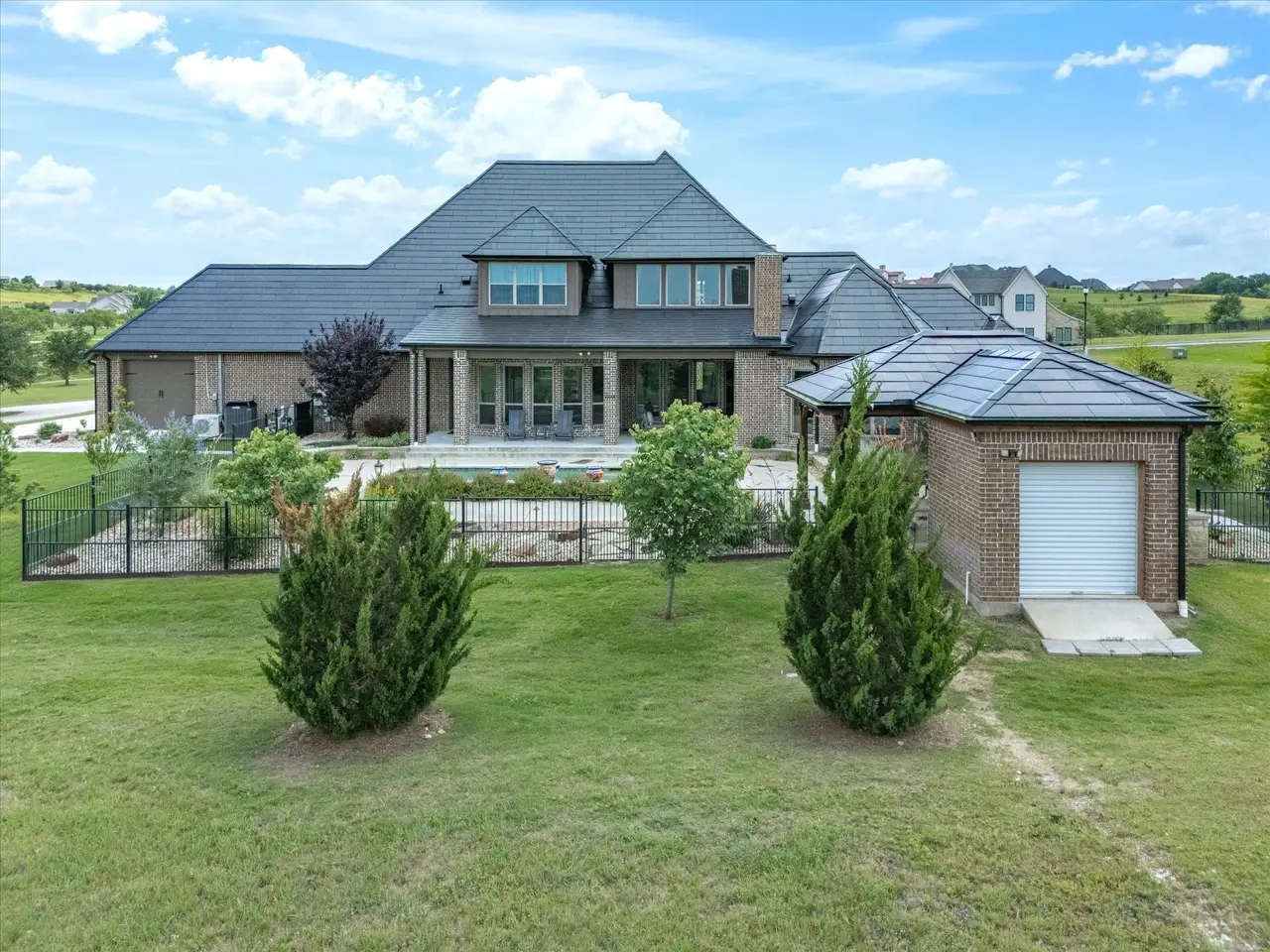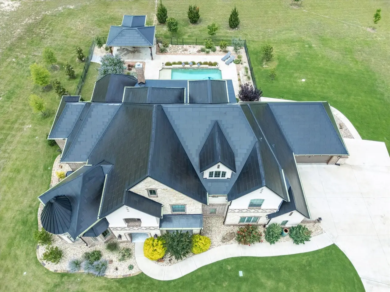 Extraordinary European Country inspired home in one of the most desirable additions in Aledo -- La Madera Estates! Superbly built with perfect blend of sophisticated yet livable style and appointed from head-to-toe with gorgeous finishes and state-of-the-art amenities including TESLA Powerwall Backup Power Grid plus Class 4 rated TESLA Solar Roof Tiles ultra energy efficient and arguably the most impressive feature of the home! Bright and open design chef's kitchen with SS commercial grade appliances, 6 burner cooktop and double ovens. The kitchen opens to impressive great room with high ceilings, impressive floor to ceiling stone fireplace, gleaming hardwood floors and great windows overlooking it's incredible resort-like backyard! Fabulous outdoor pool cabana with built-in BBQ grill and outdoor kitchen and living space overlooking a stunningly sleek pool with Pentair LED color lighting, pristine landscaping and gorgeous views of serene lake and pretty estate properties all around! Acclaimed Aledo ISD.