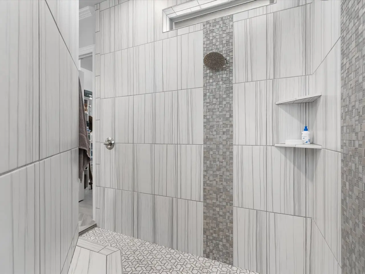 - TESLA Solar Roof Tiles Floor-to-ceiling stone fireplace