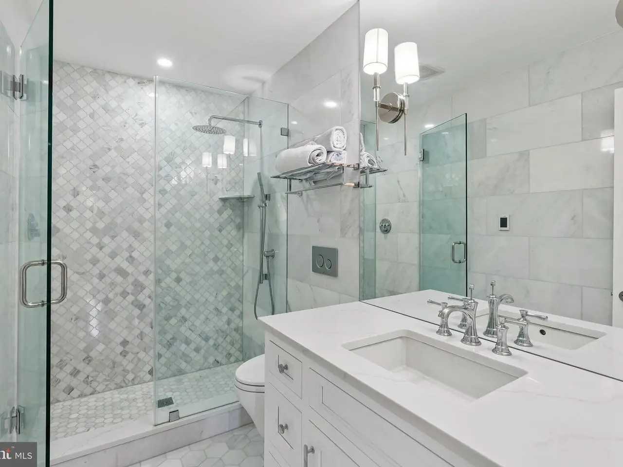 Stunning Fully Renovated Townhouse with Panoramic Rooftop Views This colonial-style townhouse has been completely reimagined through a meticulous two-year, full stud-out renovation, blending timeless architecture with today's modern luxury. From the herringbone floors and silver-leaf ceiling in the entry to the breathtaking 500 sq. ft. rooftop deck, no detail has been overlooked. The main level showcases a thoughtfully expanded kitchen, featuring a quartz waterfall island, custom cabinetry with integrated Sub-Zero panels, hidden outlets, and a Wolf range. The open floor plan continues into the living room with custom paneled walls, a gas fireplace framed by a seamless 5x12 ft Calcutta ultra quartz slab, and bespoke seating with embossed leather accents. French doors lead to a blue stone patio, perfect for indoor-outdoor living. The lower level offers a private guest suite with egress window, full bath, custom closet, and laundry. Upstairs, the primary bedroom suite features a spa-like marble bath with heated floors, floating European fixtures, and mirrored custom closets. An additional renovated full bath and bedroom complete the third floor. The top level is an entertainer's dream with a built-in bar, half bath, washer/dryer, and expanded waterfront views through oversized custom Pella windows. French doors open to a Brazilian Ipe hardwood landing with outdoor sauna, leading up to the reconceptualized roof deck. The roof deck provides unobstructed 365-degree views of the Potomac River, Old Town Alexandria, Woodrow Wilson Bridge, and even the U.S. Capitol. Additional highlights include a garage and additional deeded parking space, all new 36x80 Pella windows and doors, a modern glass-paneled garage door, new HVAC system, and custom wire fencing. Every inch of this home has been crafted to create a one-of-a-kind residence that combines sophistication, comfort, and unparalleled views.