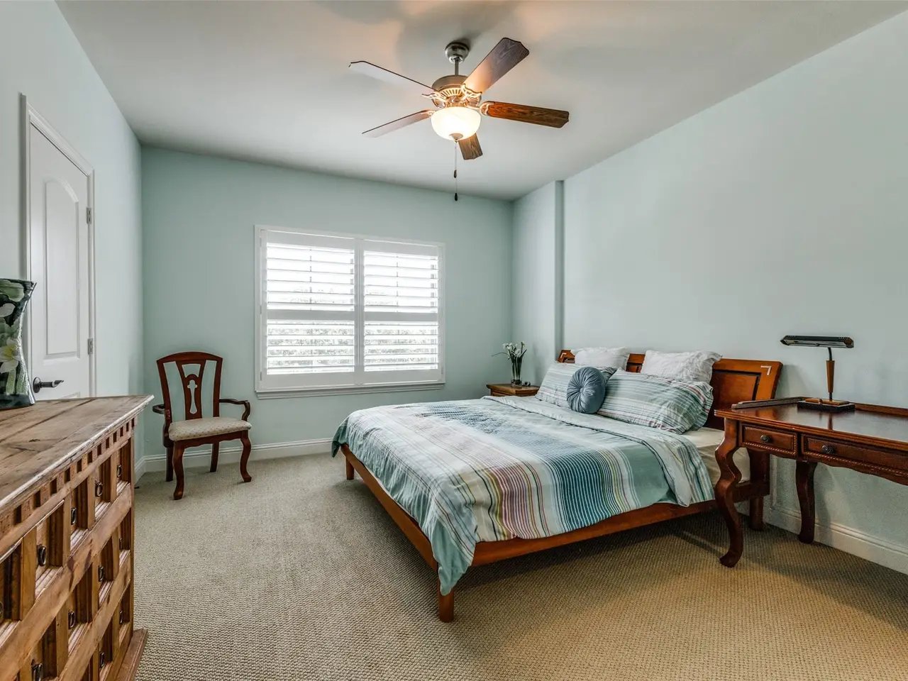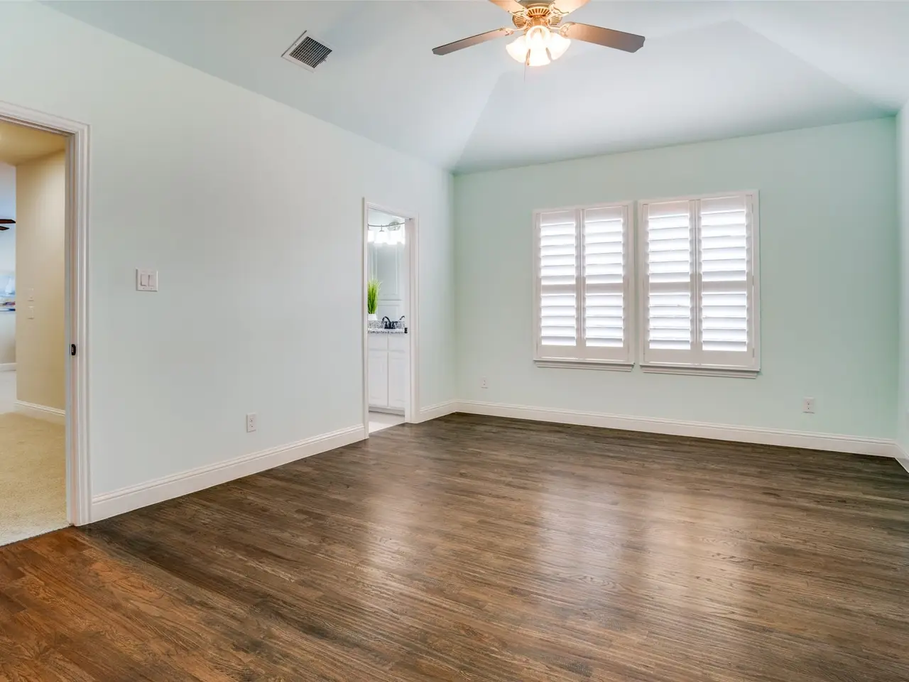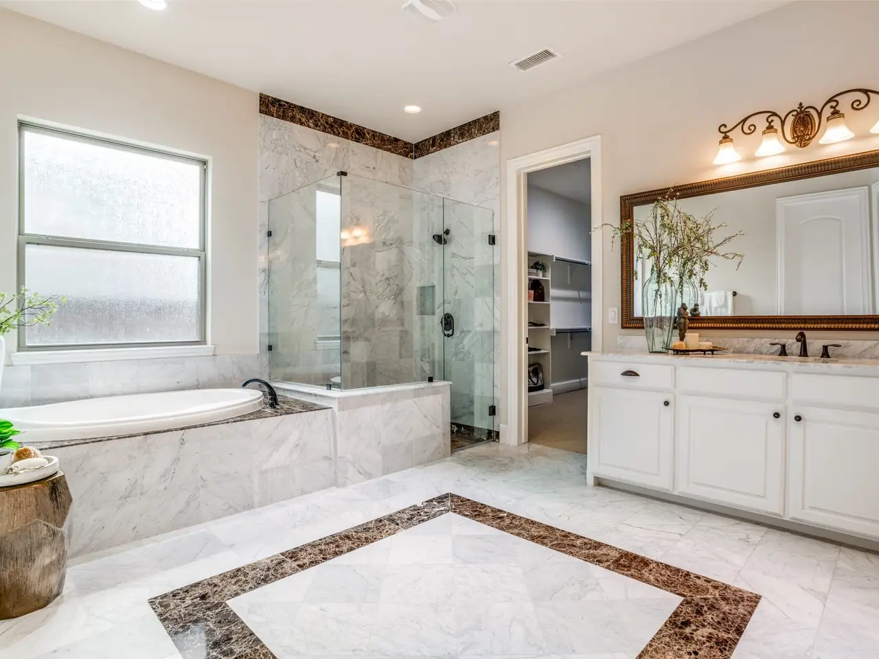 Spa-inspired primary suite with dual closets
