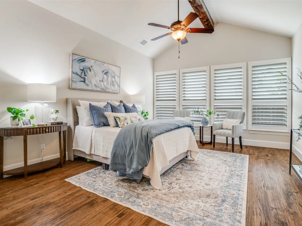 Vaulted ceilings with wood beams