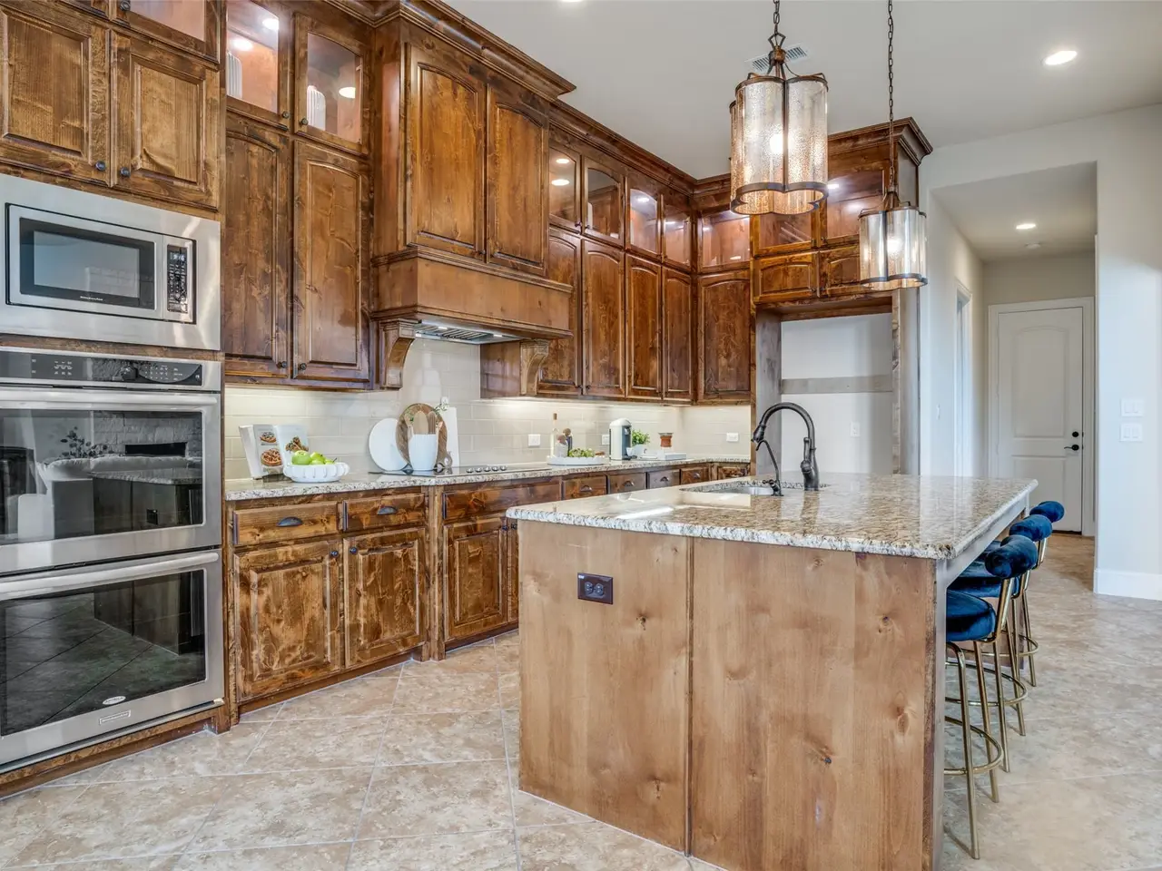 Oversized island with stone surfaces
