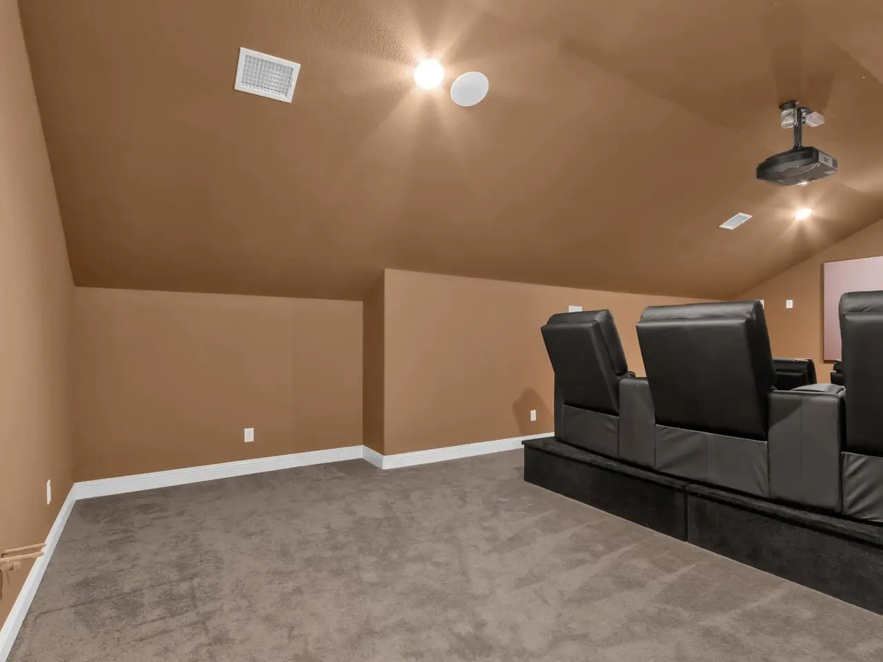 • Two-tiered media room with theater seats