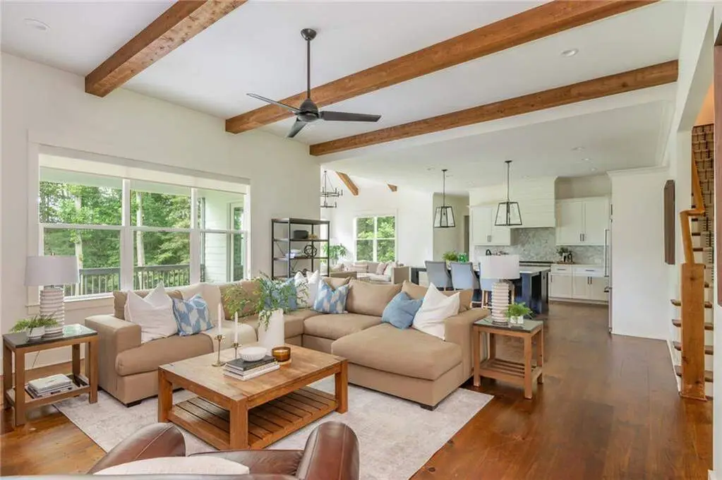 Welcome to 15430 Birmingham Highway! This is an exceptional opportunity to own a custom-built, gated home in the highly sought-after Birmingham Falls/Northwestern/Milton school district, all for under $1.5 million. Set on a beautifully landscaped property with over $100K in recent outdoor enhancements, this 5-bedroom, 5.5-bath home offers timeless design, thoughtful upgrades, and abundant living space inside and out. A charming front porch overlooks the lush front yard and leads into a warm, inviting interior where gorgeous heart of pine floors and beamed ceilings capture your heart. The open-concept layout features a spacious family room with fireplace and custom built-ins, elegant separate dining room with butler's pantry, and a large chef's kitchen with 6-burner gas range, double ovens, large walk-in pantry, built-in microwave, and a generous island with seating for six. Adjacent is a cozy fireside keeping room, perfect for relaxed gatherings or everyday living. Highly desirable primary suite on the main level includes vaulted, beamed ceilings, double vanities, a soaking tub, oversized walk-in shower, and a custom walk-in closet. A main-level guest suite offers flexibility for visitors, multigenerational living, or is perfect as an office. Tucked away you will also find a well-designed mudroom and laundry room with a sink and storage. Upstairs are three additional bedrooms, two full baths, a large bonus/media room, and even more finished space (Approx. 513 sq. ft.) thanks to the newly finished bonus room ($60K) above the garage, complete with 3 storage areas. The unfinished daylight basement includes a recently installed full bathroom and HVAC system with duct work to all areas. The basement is also partially wired with electrical outlets and low voltage for TV and internet. The fully fenced flat backyard is a true highlight with fresh sod, trees, and irrigation. Enjoy views of the well manicured lawn and mature trees surrounding the property from the expansive deck. The 3-car garage is equipped with a 240-volt outlet for electric car charger. Other notable upgrades include a new upper-level HVAC system, security gate with internet control, whole home external security cameras, home automation lighting control, uNiFi access points on all levels, irrigation system throughout the property, landscape lighting, and a separate parking pad. This is a prime opportunity to own a move-in ready, thoughtfully maintained property with high-end finishes, modern conveniences, and room to grow all in one of Milton's most coveted school zones within close proximity to popular Scottsdale Farms, 7 Acre Barn & Grille, Publix, and more!