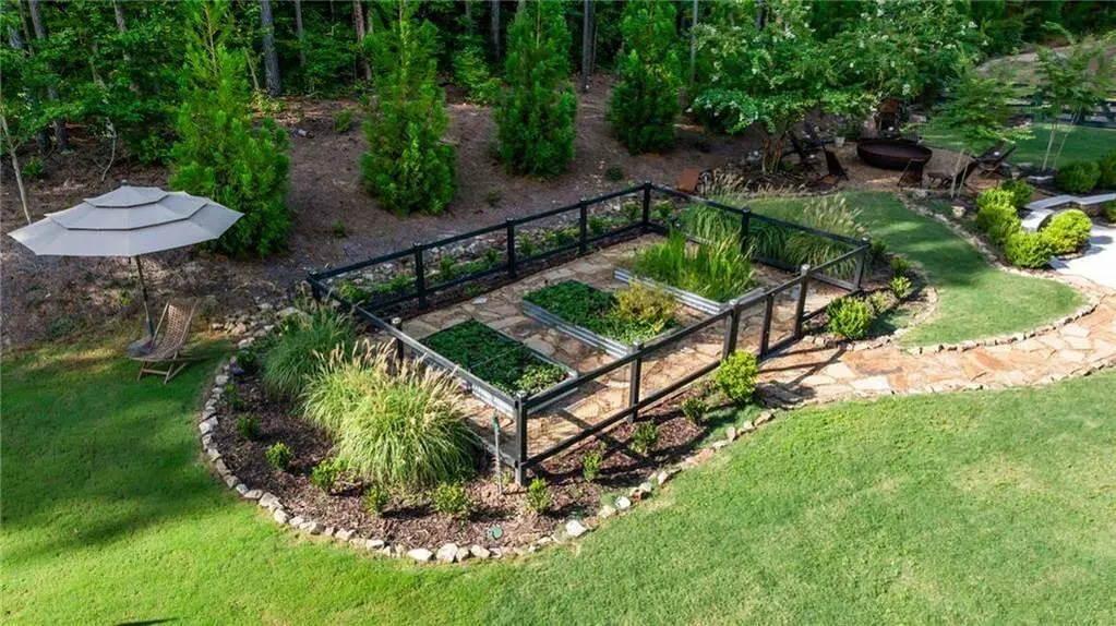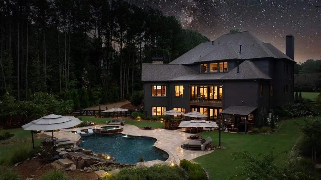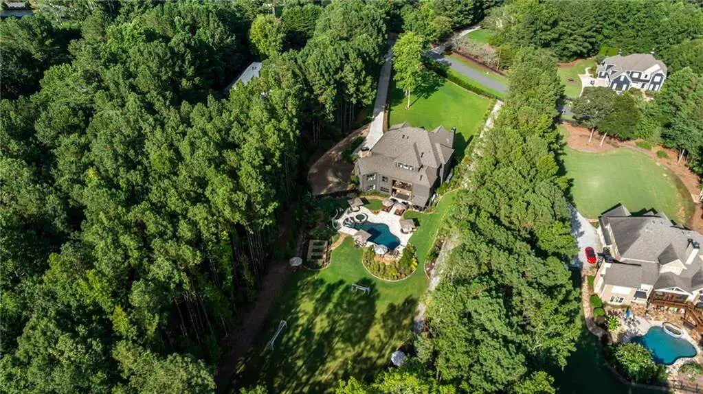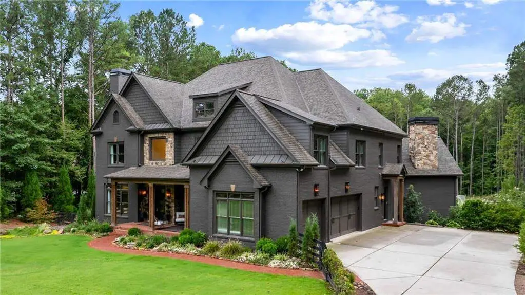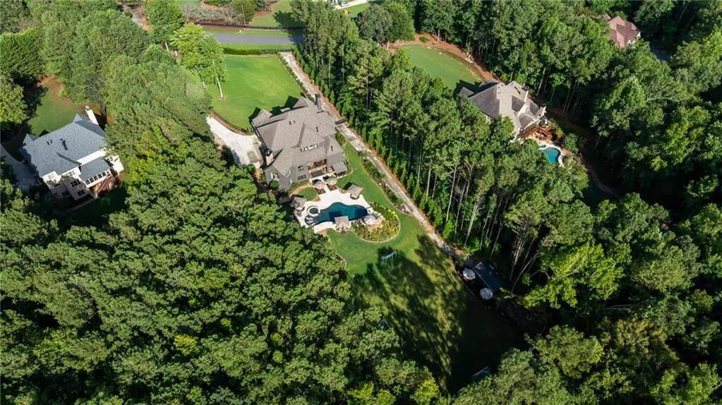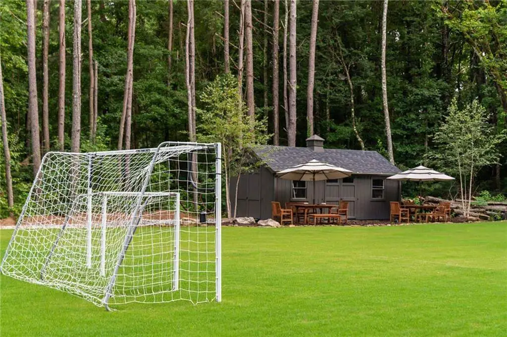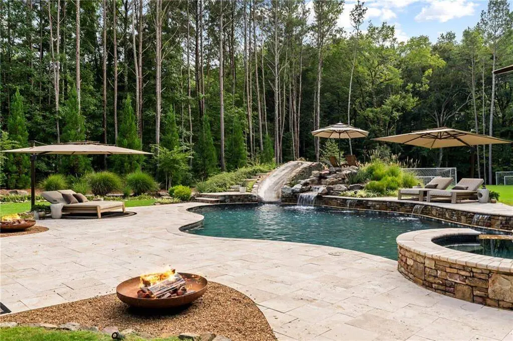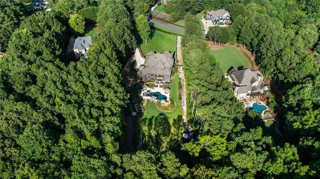 Tucked within a gated enclave and offering the rare blend of a sought-after Alpharetta address and low Cherokee County taxes, this stunning modern cottage-style estate is a true lifestyle property. Set on a beautifully landscaped lot, the exterior stuns new rock pathways, and a full yard transformation including a leveled, aerated backyard perfect for soccer play. Outdoor living is redefined with a heated saltwater pool featuring a blue light system, waterslide, and 10-person spa, paired with a round steel firepit, 18-speaker sound system with in-ground subwoofers, raised garden beds, firepits, and expansive patios for entertaining. Inside, the light-filled home features refinished Ashwood floors, fresh cedar accents, and over $100,000 in Restoration Hardware lighting. A Control4 smart home system integrates sound, lighting, hardwired cameras, and more. The open chef's kitchen is equipped with Sub-Zero, Wolf, and Miele appliances, plus double ovens and a walk-in pantry. Custom window treatments and built-in garage storage remain. The home boasts 7 total bedrooms, including a serene main-level primary suite with a gas fireplace. Upstairs offers four large bedrooms and the terrace level features two additional suites (one with separate entrance and kitchenette), a theatre, game room, and gym with sauna, all complemented by secondary laundry and ample storage. Experience elevated, turnkey living, just minutes from Milton and downtown Alpharetta.