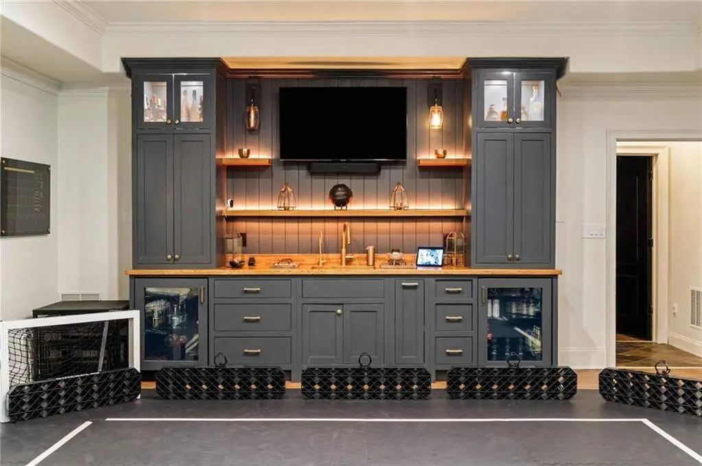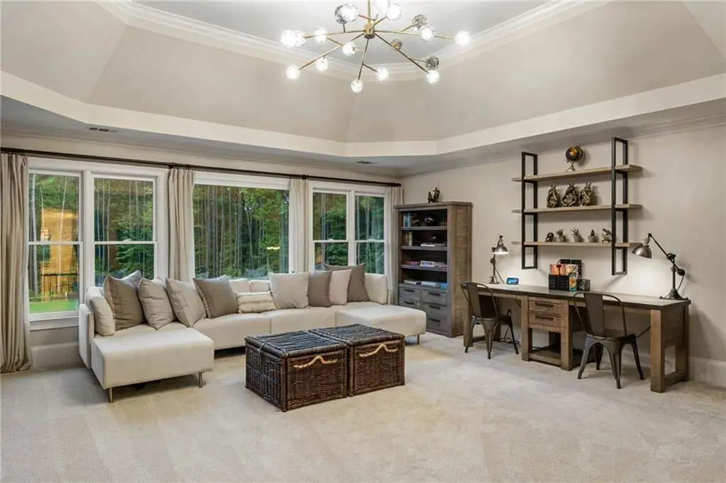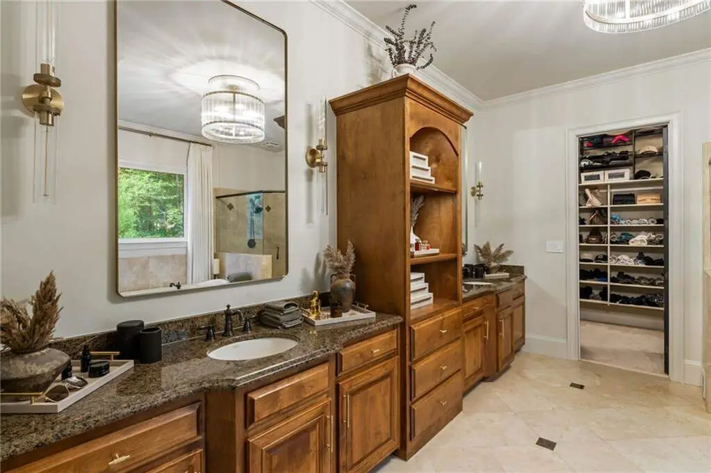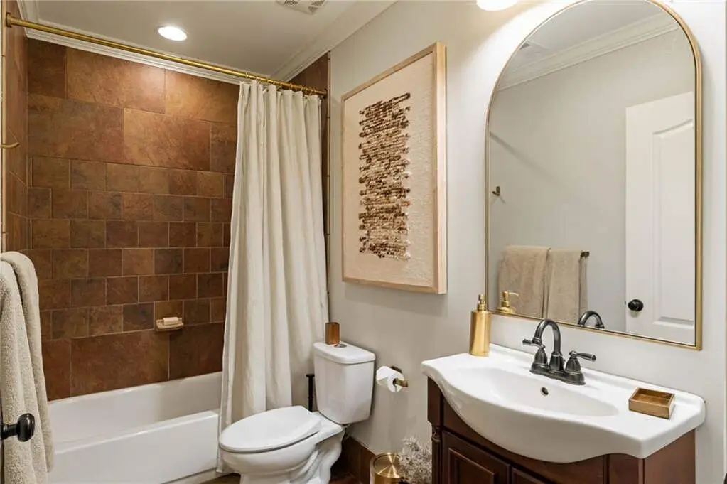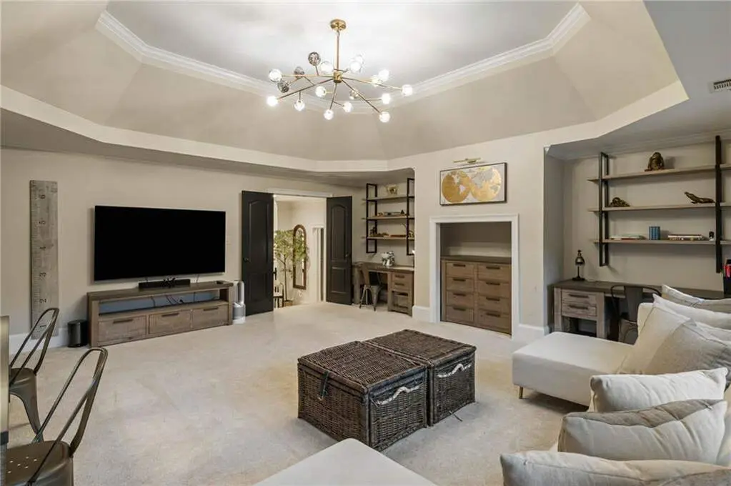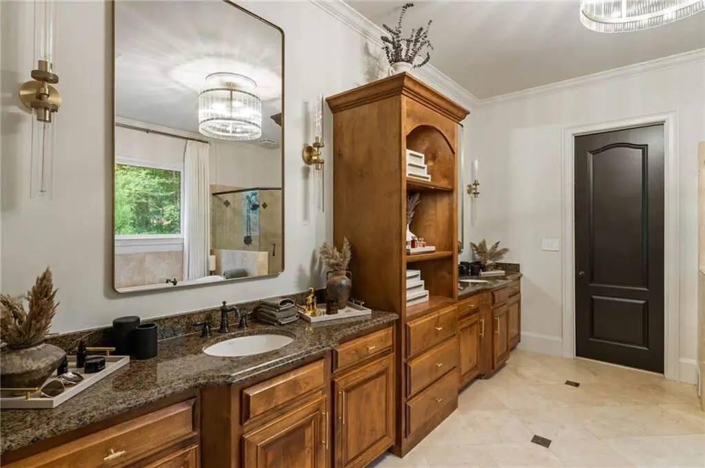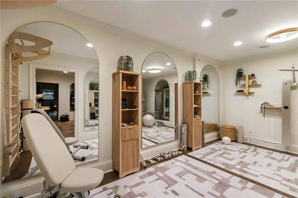 Tucked within a gated enclave and offering the rare blend of a sought-after Alpharetta address and low Cherokee County taxes, this stunning modern cottage-style estate is a true lifestyle property. Set on a beautifully landscaped lot, the exterior stuns new rock pathways, and a full yard transformation including a leveled, aerated backyard perfect for soccer play. Outdoor living is redefined with a heated saltwater pool featuring a blue light system, waterslide, and 10-person spa, paired with a round steel firepit, 18-speaker sound system with in-ground subwoofers, raised garden beds, firepits, and expansive patios for entertaining. Inside, the light-filled home features refinished Ashwood floors, fresh cedar accents, and over $100,000 in Restoration Hardware lighting. A Control4 smart home system integrates sound, lighting, hardwired cameras, and more. The open chef's kitchen is equipped with Sub-Zero, Wolf, and Miele appliances, plus double ovens and a walk-in pantry. Custom window treatments and built-in garage storage remain. The home boasts 7 total bedrooms, including a serene main-level primary suite with a gas fireplace. Upstairs offers four large bedrooms and the terrace level features two additional suites (one with separate entrance and kitchenette), a theatre, game room, and gym with sauna, all complemented by secondary laundry and ample storage. Experience elevated, turnkey living, just minutes from Milton and downtown Alpharetta.