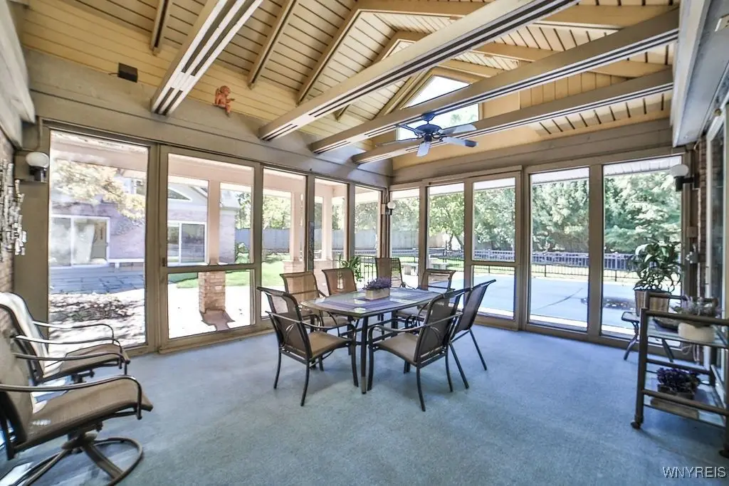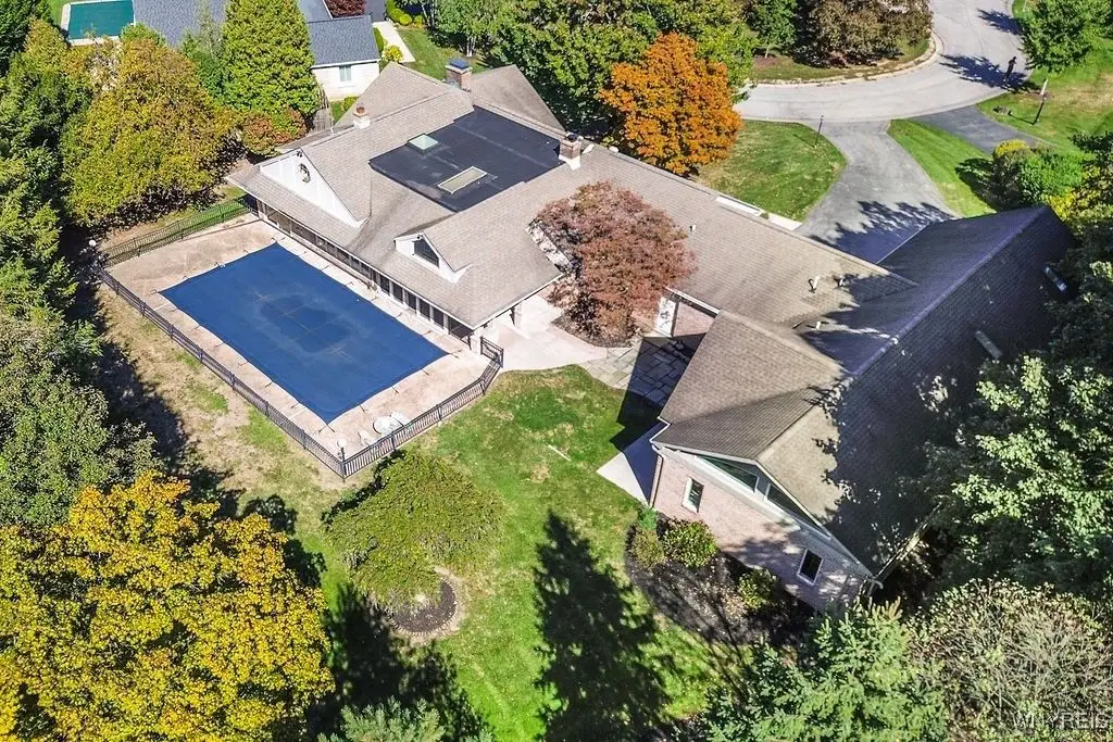 Don't miss this rare opportunity in Snyder! Tucked away in a serene, park-like setting on a private cul-de-sac, this spacious 3-bedroom, 3.5-bath ranch offers exceptional living and entertaining space. The home features a 24' x 64' art studio with soaring cathedral ceilings C/B?B= perfect for creative pursuits or flexible use.Enjoy summer days in the 20' x 40' Gunite pool, or relax in the 3-season room (15' x 17'). Entertain guests in the formal dining room, complete with a bar and kitchenette, or cook with ease in the fully applianced eat-in kitchen featuring granite countertops and a stylish backsplash.Additional highlights include: Central air conditioning, Abundant built-in cabinetry and storage, Professionally landscaped grounds and Smallwood schools.