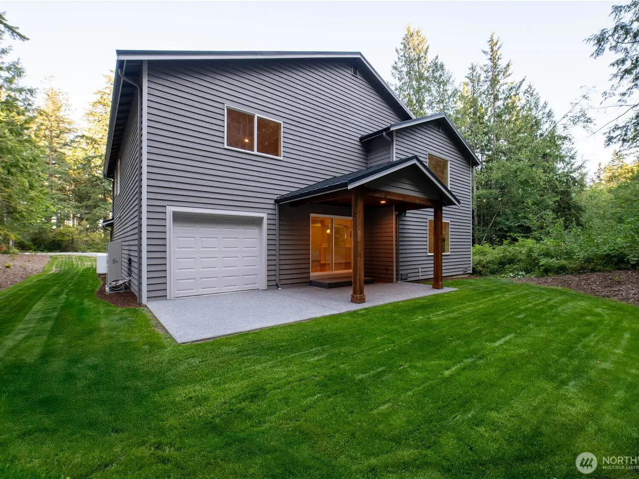 Brand new home on a secluded 4.49 acre lot. 3 car Tandem garage. Neighborhood is gated with an unattended guard house for added security and privacy. Trails lead to Whistle Lake. Metal roof and cedar siding. The home is completed with white painted cabinets, LVP and tile floors, slab granite counters, full height backsplash, white painted millwork, wood wrapped windows, double panel white painted doors and stainless steel KitchenAid appliances. High ceilings in the huge family room, formal dining room, downstairs office and a huge master bedroom make this home extremely functional. Hybrid heat pump water heater, High Efficiency ductless mini splits provide both heating and air conditioning to the entire living space.