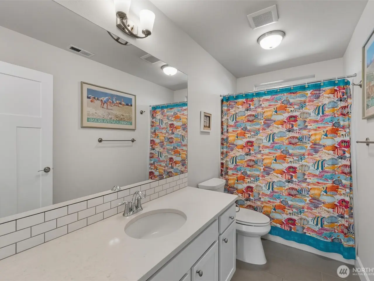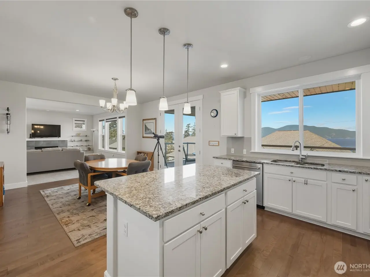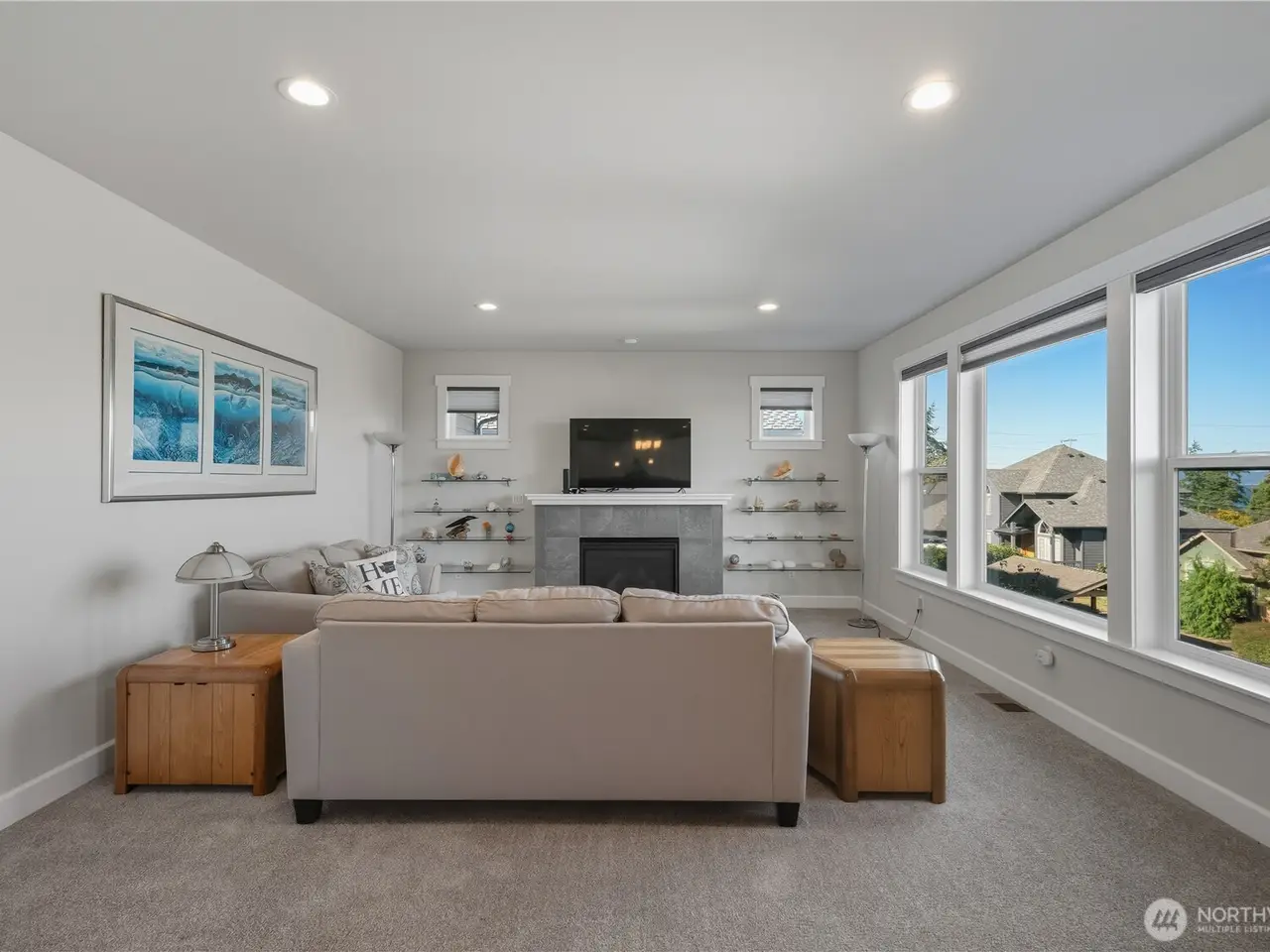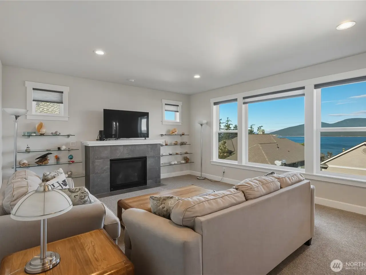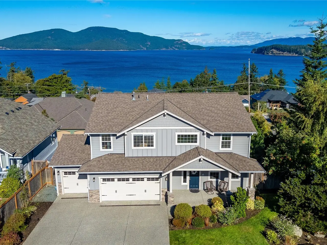 Set on a quiet corner lot, this spacious 4-bedroom, 3-bath home offers over 3,000 square feet of living space with a versatile layout. The main level features open-concept living and dining areas plus a large kitchen designed for entertaining, complete with a walk-in pantry and plenty of storage and counter space. The upper level includes all four bedrooms and a large family room providing extra space for relaxing, play, or hobbies. The 3-car garage includes an electric vehicle charging station and offers excellent space for vehicles, work, and storage. Enjoy beautiful views of Guemes Channel and relax on the deck while boats pass by. All just minutes from town, schools, parks, and more--a wonderful opportunity to own in Anacortes!