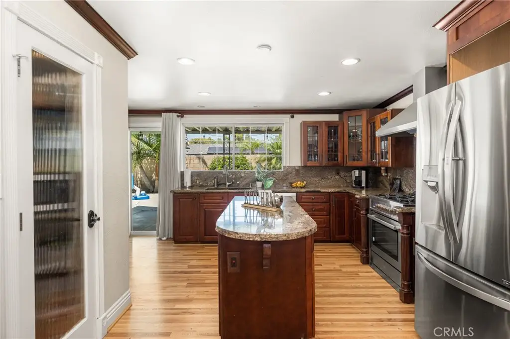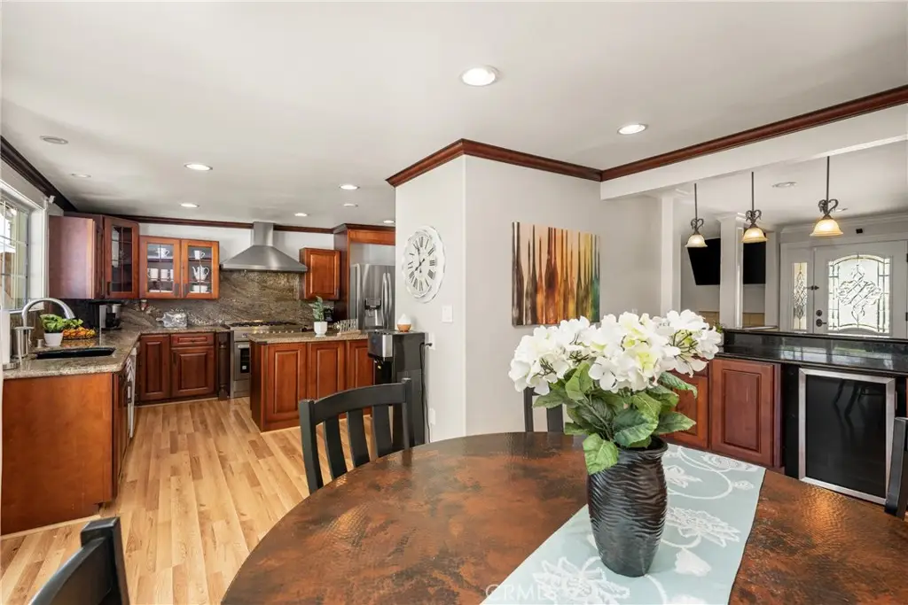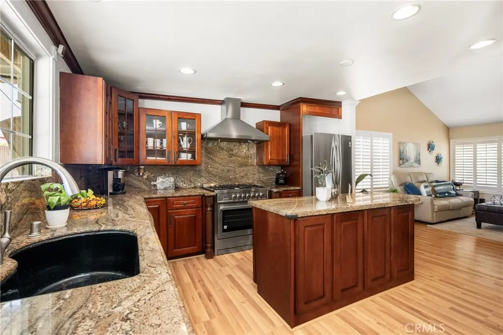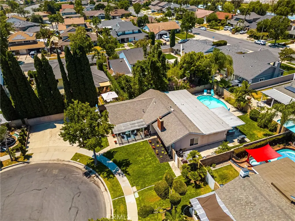 Tucked away in a peaceful Anaheim Hills cul-de-sac, this beautifully upgraded single-story pool home offers 4 bedrooms, 2 baths, and a layout designed for comfort and convenience. The spacious living room features vaulted ceilings, crown molding, wood flooring, a cozy brick fireplace, and plantation shutters. Energy Star-qualified windows and recessed lighting add to the home's efficiency and charm. The updated kitchen boasts granite countertops, a center island, stainless steel appliances, and a pantry--perfect for everyday living and entertaining. French doors in the primary bedroom open to a private backyard retreat complete with a sparkling pool and spa, covered patio, fruit trees, and a side dog run. Additional highlights include mirrored closets, six-panel doors, ceiling fans, a water softener system and wood flooring throughout. With a wide driveway suitable for extra cars or RV parking, a two-car garage equipped with an EV charging outlet, upgraded HVAC system, water softener, roof, house insulation, water heater, energy-efficient pool pump and rain gutters--this home is move-in ready. Located in an award-winning Canyon High School district, within walking distance to Riverdale Park, shopping, and dining, with easy freeway access. No HOA. Welcome Home, this one's ready for you!