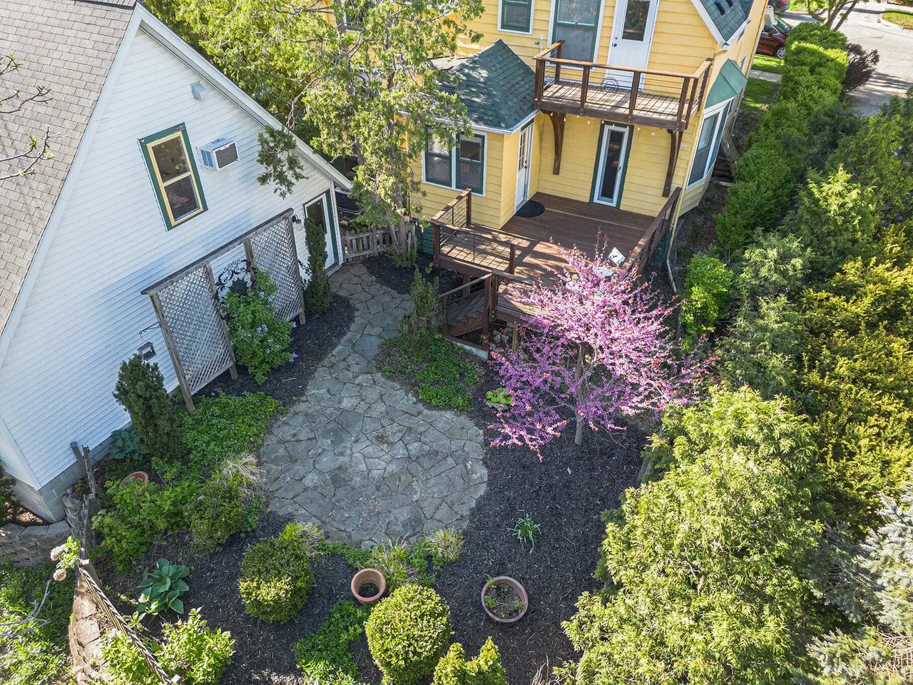 Charming 1920s home on Ann Arbor's historic Old West Side, just steps from the YMCA and downtown shops and dining (Walk Score 99). Set on a corner lot, this well-maintained property boasts a welcoming front porch with swing, an oversized 2.5-car garage with bonus room above, and a peaceful back deck with garden patio. Inside, enjoy original hardwood features, a large updated kitchen, a modern full bath on the main level, and a versatile flex space. The living room with a wood burning stove flows into a spacious dining area. Upstairs you'll find four generous bedrooms and another full bath. A lower-level studio with private entrance adds flexibility. Garage access from Mulholland St. Home Energy Score of 1. Download report at stream.a2gov.org