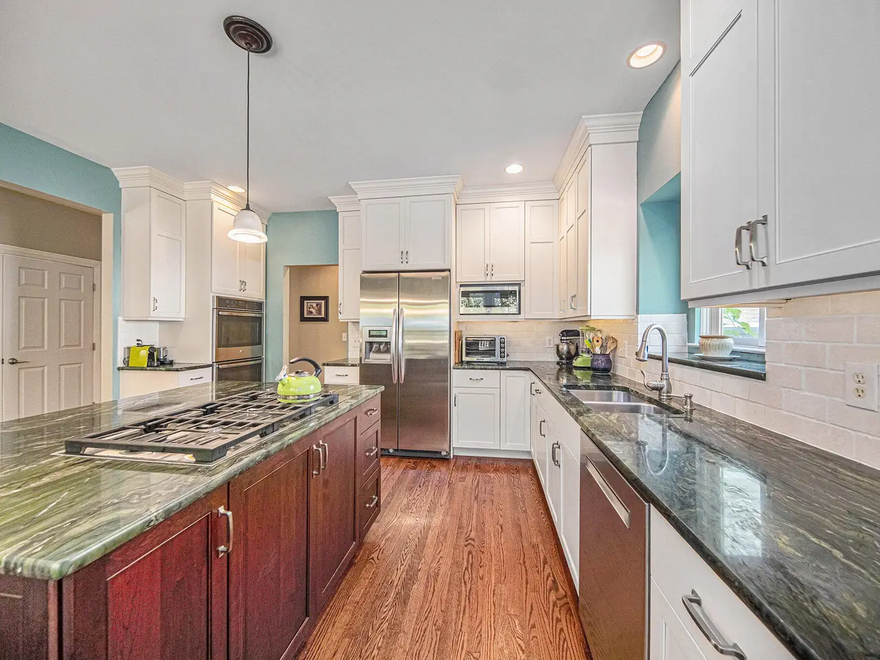Newport Hills classic floor plan with contemporary flair! Lovely 2-story entry greets you, leading to both the home office with French doors and the living room. Elegant formal dining room features wainscot trim and beautiful lighting. Large, palladium windows bring the outdoors in. Quality kitchen remodel includes Pinnacle cabinetry carried over into the dining area for books, display and storage, stunning pressurized granite, a large island, 6 burner gas stove top and double oven - all open to the family room with cathedral ceiling, gas fireplace and second stairway. Large pantry, powder room and laundry room off hallway. Curved stairway leads to the oversized primary suite with walk-in closet and bath with Jacuzzi soaking tub. 3 additional spacious bedrooms, 2 with walk-in closets. Easy walk via back entry to Skyline HS for students or enjoy tennis courts on campus. Beloved NW location for nature enthusiasts- walk to Bird Hills Park, Barton Park on the Huron River for kayaking and now connecting to the B2B trail. Short drive to major shopping, U of M and highway access. Mature, tree-lined streets showcase every season! Home Energy Score of 4. Download report at stream.a2gov.org.