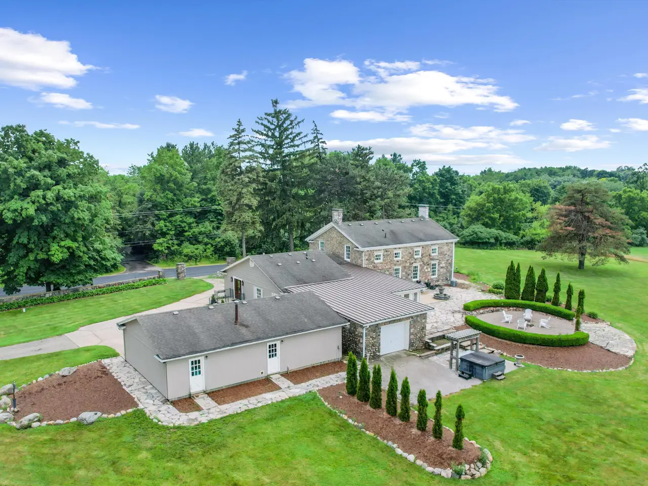 On 15.62 acres of prairie & farmland, this 1856 Cobblestone Farmhouse in Scio Twp has almost 4,000 sq. ft. of up-to-the-minute renovations. Its sophisticated design respects the classic nature of the Four-Square floor plan. It features formal living & dining rooms w/ fireplaces, a home office, updated bath & a chef's kitchen w/ custom cabinets, butcher block counters & stainless. A thoughtful addition that almost doubles the first-floor living space. It has a family room w/ impressive wet bar area, an additional bedroom or den, full bath & laundry. Upstairs is the large Primary bedroom, 3 additional bedrooms, & a renovated hallway bath. The oversized 3-season room w/ fireplace opens to an expansive outdoor living area with multiple patios & firepit area, all overlooking the expansive acreage, w/ regular visits from deer, turkeys & Sandhill cranes. Important updates include windows (2025), French doors to 3-season room (2023), garage doors (2023), well (2018) & 8-zone boiler (2018).