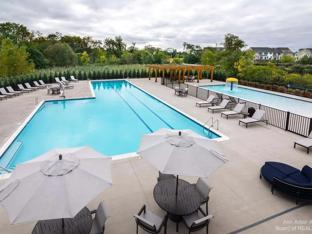 North Oaks never looked so good! This exceptional end-unit Villa with a premier wooded location is as pristine as the day it was built & is ready for immediate occupancy! With brand new wood floors throughout the first level, this desired Brandeis floor plan features soaring ceilings, bright spaces & windows galore. It has a chef's kitchen with granite, stainless & large center island, & opens to the living room with vaulted ceiling & divided-light door to deck. The Primary suite with tray ceiling has a perfectly appointed bath. There's also a first-floor office with French doors & vaulted ceiling! Upstairs are two additional bedrooms with attached baths, & a loft area. The walk-out lower level is ready to be finished for additional living space. Residents enjoy amenities including club house with fitness center & game rooms, & outdoor lap & wading pools. Its location is minutes to U of M North Campus, U of M & VA Hospitals & Domino's Farms. Home Energy Score of 7. Find report at stream.a2gov.org.