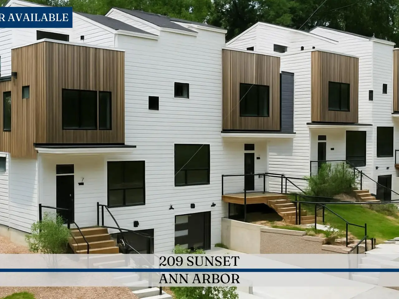 Nestled in Ann Arbor's sought-after Water Hill neighborhood, this modern new construction home exemplifies meticulous craftsmanship and thoughtful design. Situated on a prominent lot, the residence offers views from every window, capturing the Huron River and downtown Ann Arbor. The home's prime location provides immediate driving access M14 and walking to the natural beauty of Hunt Park and the Bluffs Nature Area, both just steps away via Sunset Road. A short walk leads to the vibrant Kerrytown district, renowned for its farmers market, boutique shops, and restaurants. Inside, the open floor plan is adorned with warm white oak flooring and custom built-ins, creating a harmonious blend of comfort and style. Expansive windows flood the space with natural light, enhancing the home's inviting atmosphere. The bathrooms feature elegant quartz countertops and durable tile flooring, and the second floor laundry room boasts ample counter space with cabinet storage. The primary bathroom offers a spacious double vanity, providing ample storage and convenience. The top floor offers versatile space, ideal for a home office or creative studio. Step out onto the private balcony to find yourself nestled among the treetops, offering a serene retreat with stunning views. This exceptional home combines modern amenities with a prime location, offering a unique opportunity to experience the best of Ann Arbor living. Please adhere to showing protocols established by the State, MAR, REO, and the seller. A licensed Michigan Realtor must be present for the duration of all showings. Photos shown are from staged unit.
