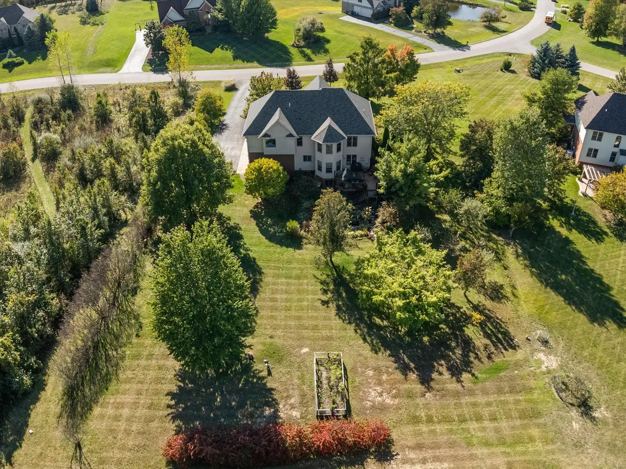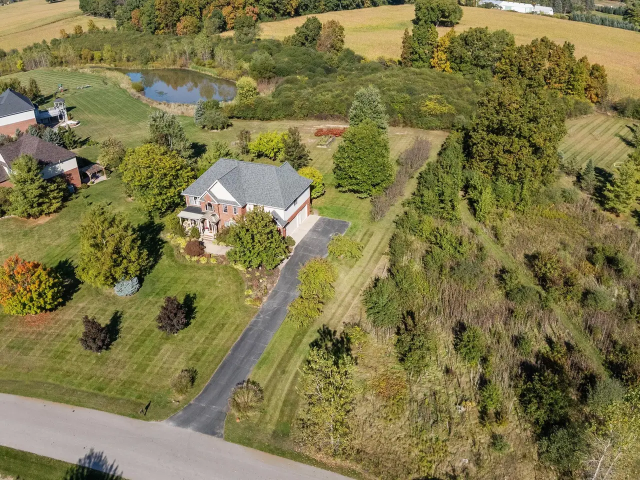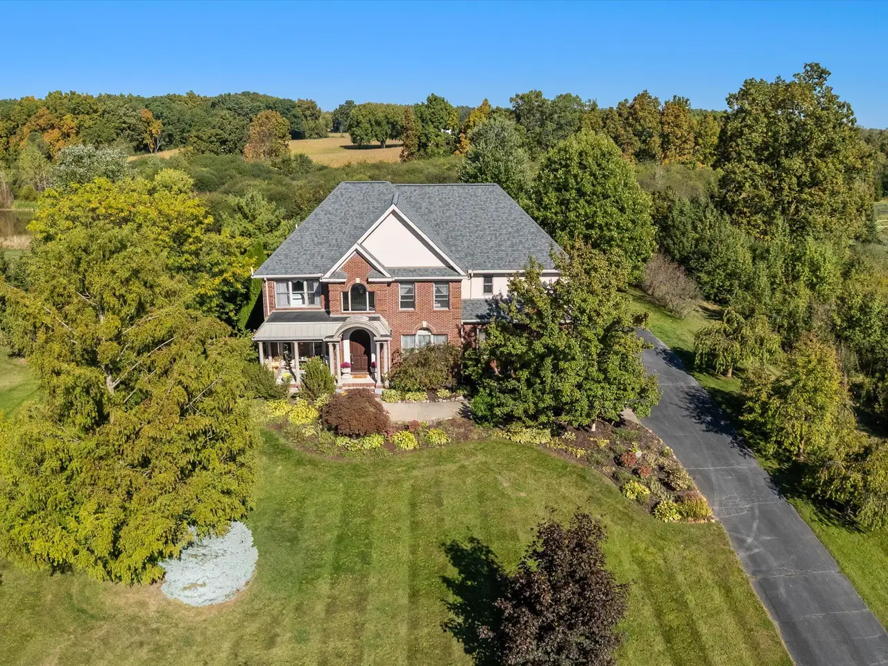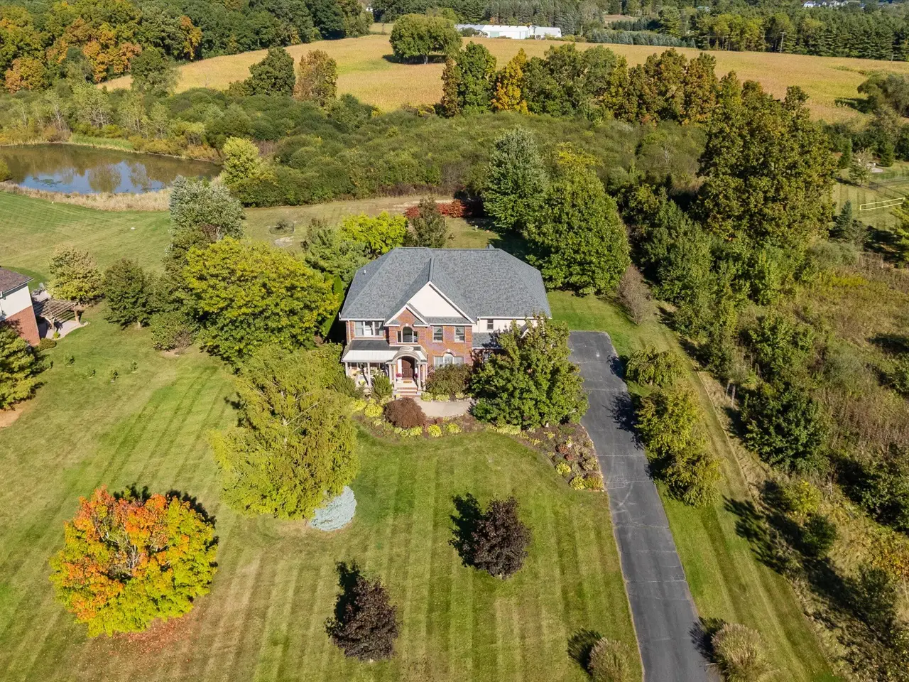 OPEN HOUSE CANCELLED *Serenity meets convenience at this beautifully maintained home on a secluded one-acre lot just minutes from downtown Ann Arbor, the University of Michigan main campus, and both medical centers. Surrounded by countryside views yet tucked into a private neighborhood of only 20 homes, this residence offers over 4,300 square feet of thoughtfully designed living space that truly lives like new. From the covered front porch, step inside to a dramatic two-story foyer, flanked by a formal dining room and a flexible space with French doors - ideal as a family room, den, or office. At the back of the home, the two-story living room boasts a gas fireplace and a wall of windows overlooking the neighborhood green space and pond. The adjacent eat-in kitchen features elegant cream cabinetry, granite counters, and a large island with breakfast bar seating. A sunny breakfast nook opens to the expansive Trex deck and patio, perfect for summer entertaining. Upstairs, retreat to the suite with tray ceiling and a connected sitting room wrapped in windows - a serene spot for reading or morning yoga. The luxurious en suite bath offers dual vanities, spa tub, separate shower, and a huge walk-in closet. Three additional bedrooms and two more full baths, including one en suite and one Jack & Jill, plus bedroom-level laundry, ensure comfort and convenience. The finished lower level with daylight windows extends the living space with a second fireplace, full bathroom, and ample storage - ideal for game day gatherings or private guest quarters. Outdoors, enjoy a backyard sanctuary with a Trex deck, firepit patio, and private pond surrounded by lush perennial landscaping. It's the perfect place to watch the seasons change or simply relax in peace. With countless recent updates - including roof (2023), renovated bathrooms (2022), remodeled kitchen (2010), newer flooring (2015-2023), and fresh paint (2025) - this home combines timeless design and turnkey condition with modern comfort and an unmatched location. A private haven with effortless access to Ann Arbor and beyond - don't miss this one!