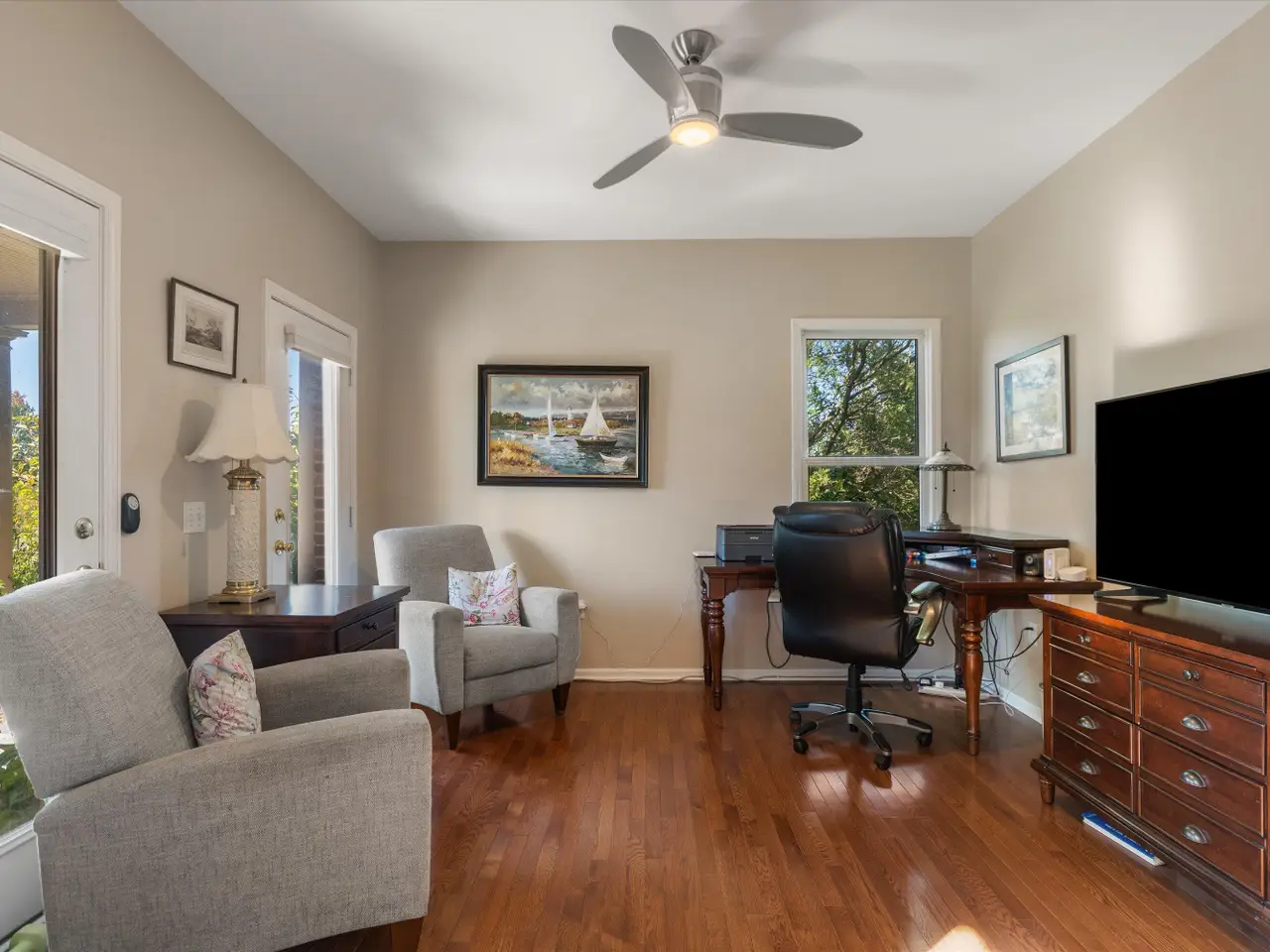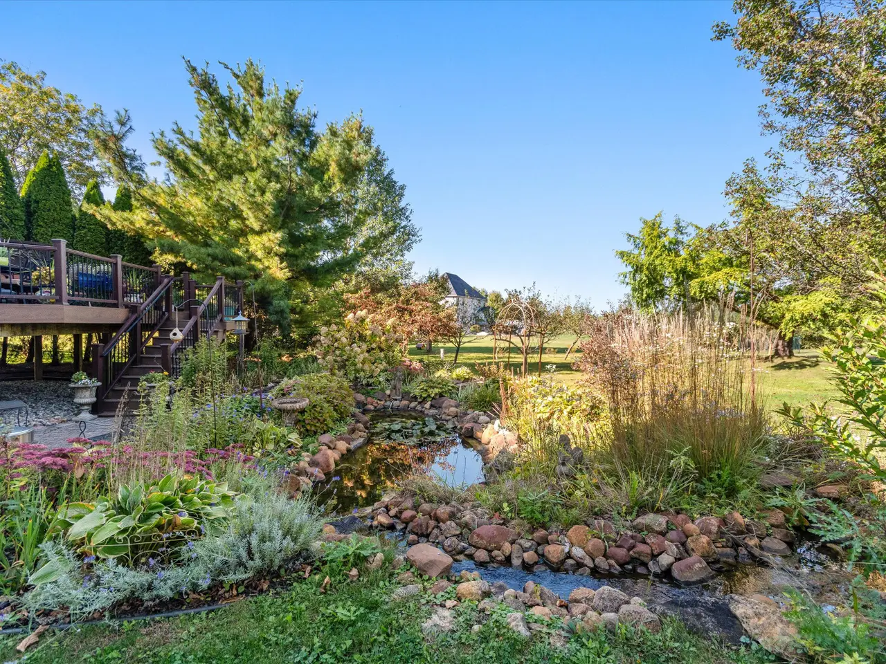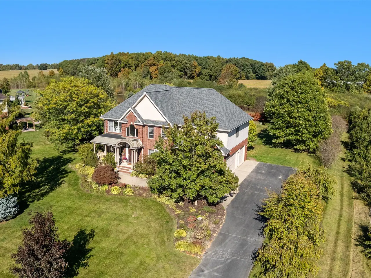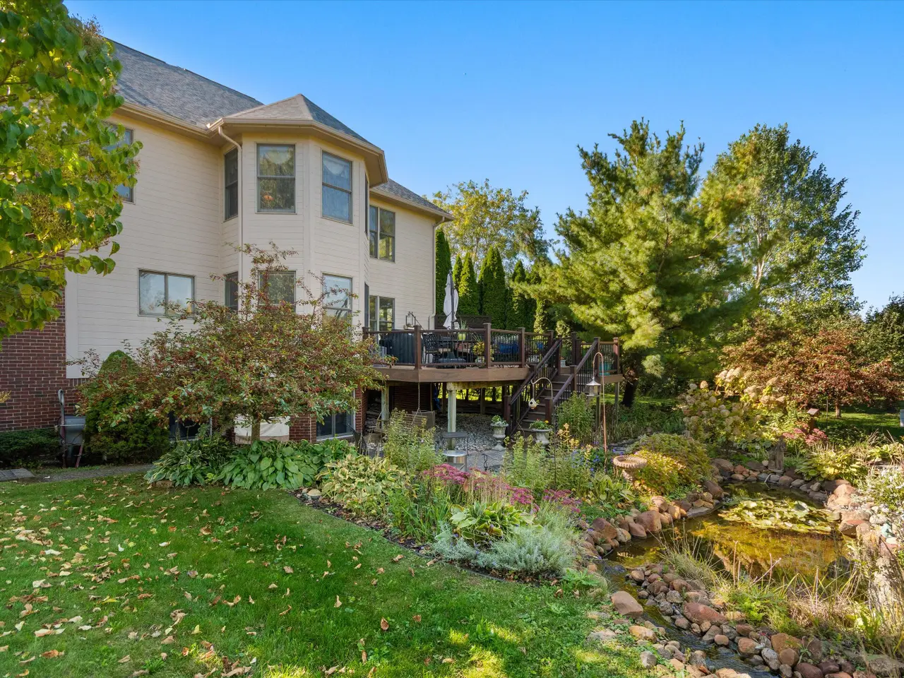 OPEN HOUSE CANCELLED *Serenity meets convenience at this beautifully maintained home on a secluded one-acre lot just minutes from downtown Ann Arbor, the University of Michigan main campus, and both medical centers. Surrounded by countryside views yet tucked into a private neighborhood of only 20 homes, this residence offers over 4,300 square feet of thoughtfully designed living space that truly lives like new. From the covered front porch, step inside to a dramatic two-story foyer, flanked by a formal dining room and a flexible space with French doors - ideal as a family room, den, or office. At the back of the home, the two-story living room boasts a gas fireplace and a wall of windows overlooking the neighborhood green space and pond. The adjacent eat-in kitchen features elegant cream cabinetry, granite counters, and a large island with breakfast bar seating. A sunny breakfast nook opens to the expansive Trex deck and patio, perfect for summer entertaining. Upstairs, retreat to the suite with tray ceiling and a connected sitting room wrapped in windows - a serene spot for reading or morning yoga. The luxurious en suite bath offers dual vanities, spa tub, separate shower, and a huge walk-in closet. Three additional bedrooms and two more full baths, including one en suite and one Jack & Jill, plus bedroom-level laundry, ensure comfort and convenience. The finished lower level with daylight windows extends the living space with a second fireplace, full bathroom, and ample storage - ideal for game day gatherings or private guest quarters. Outdoors, enjoy a backyard sanctuary with a Trex deck, firepit patio, and private pond surrounded by lush perennial landscaping. It's the perfect place to watch the seasons change or simply relax in peace. With countless recent updates - including roof (2023), renovated bathrooms (2022), remodeled kitchen (2010), newer flooring (2015-2023), and fresh paint (2025) - this home combines timeless design and turnkey condition with modern comfort and an unmatched location. A private haven with effortless access to Ann Arbor and beyond - don't miss this one!