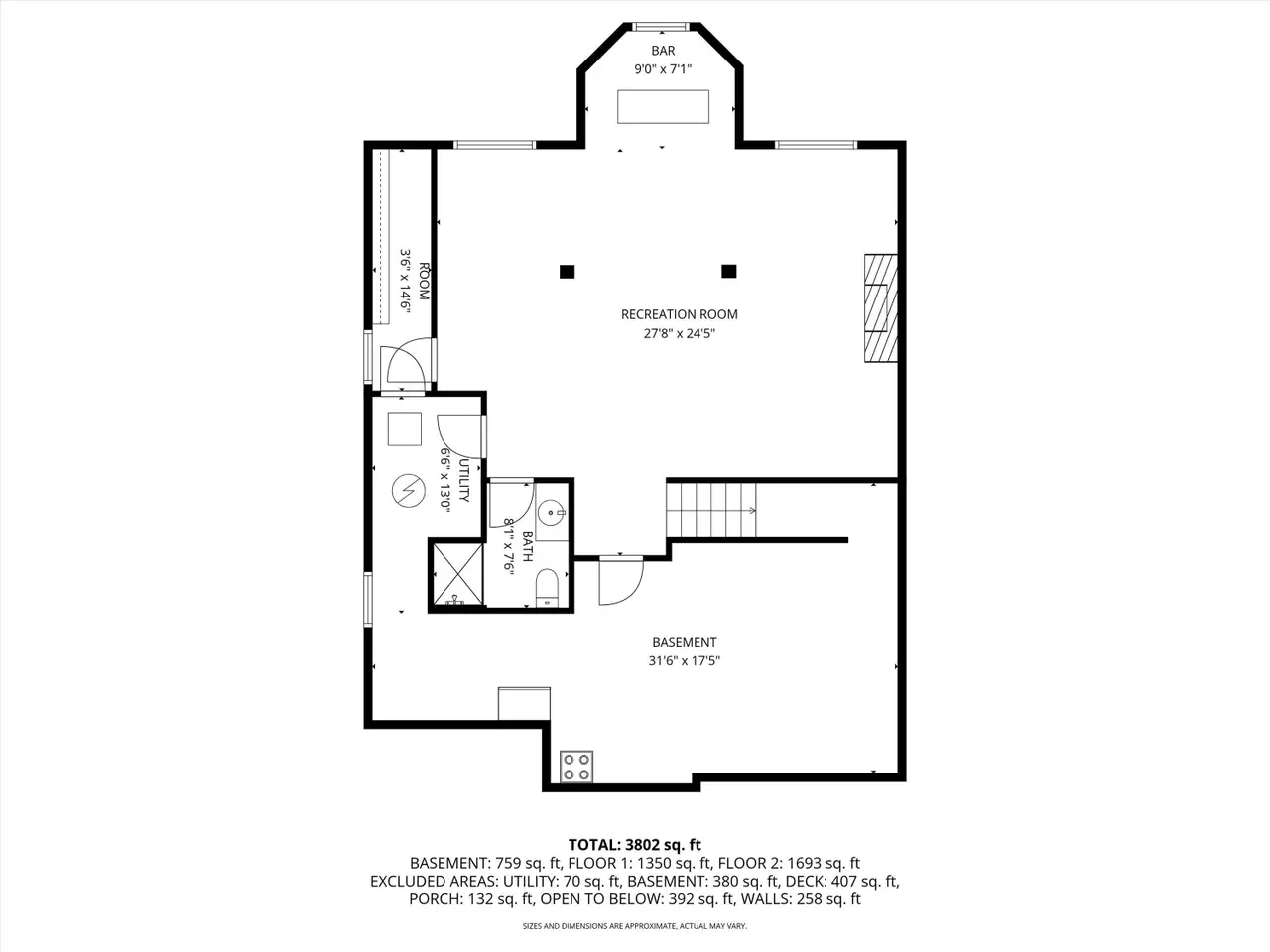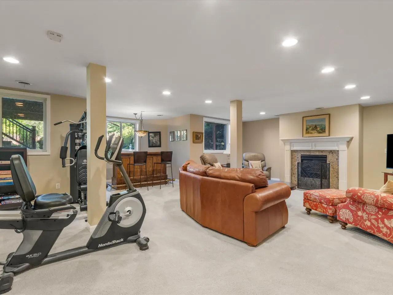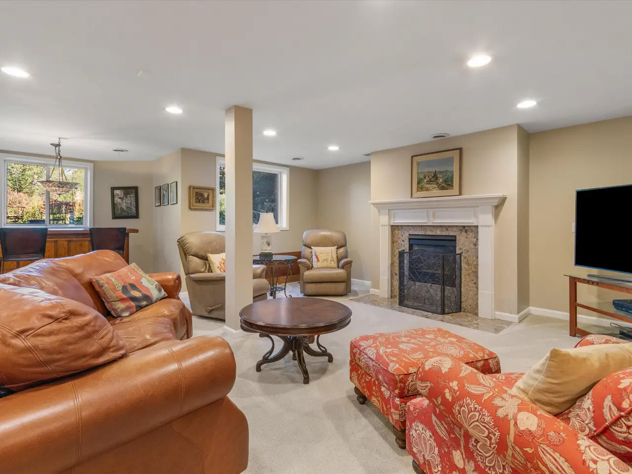 Finished lower level with fireplace