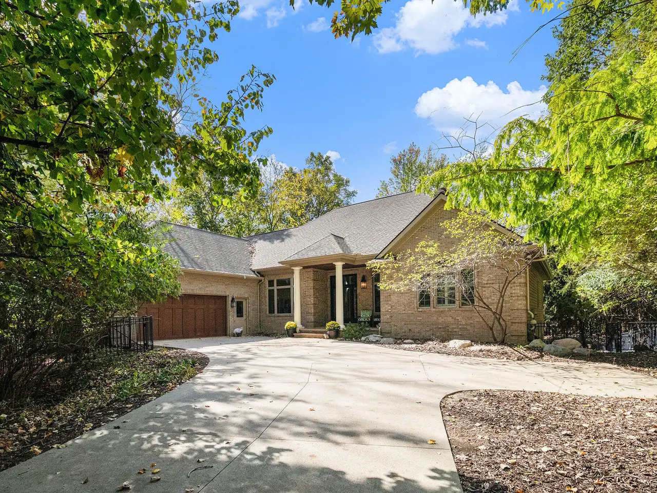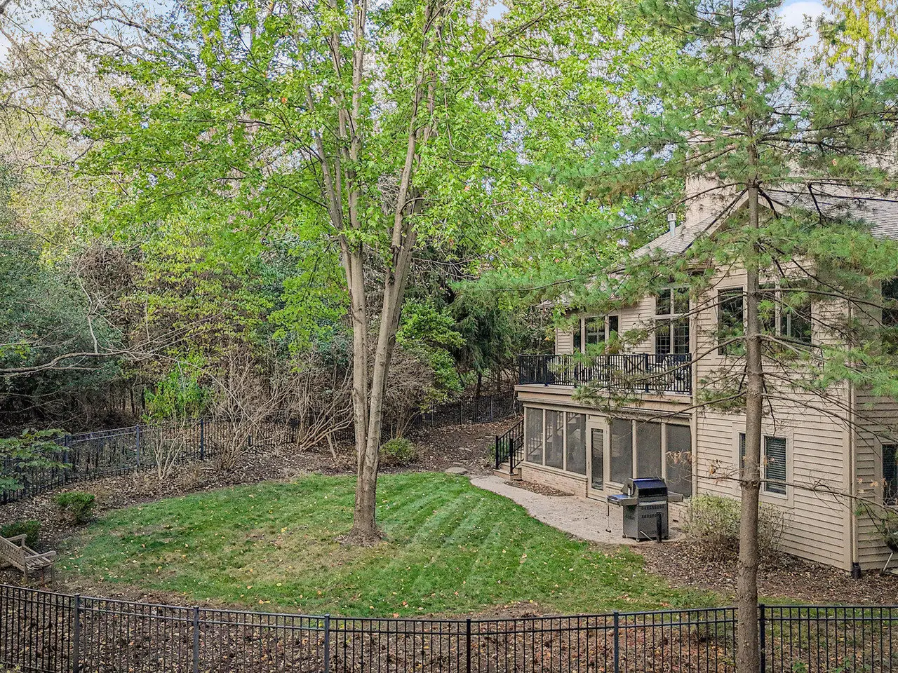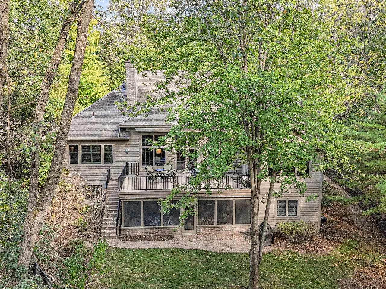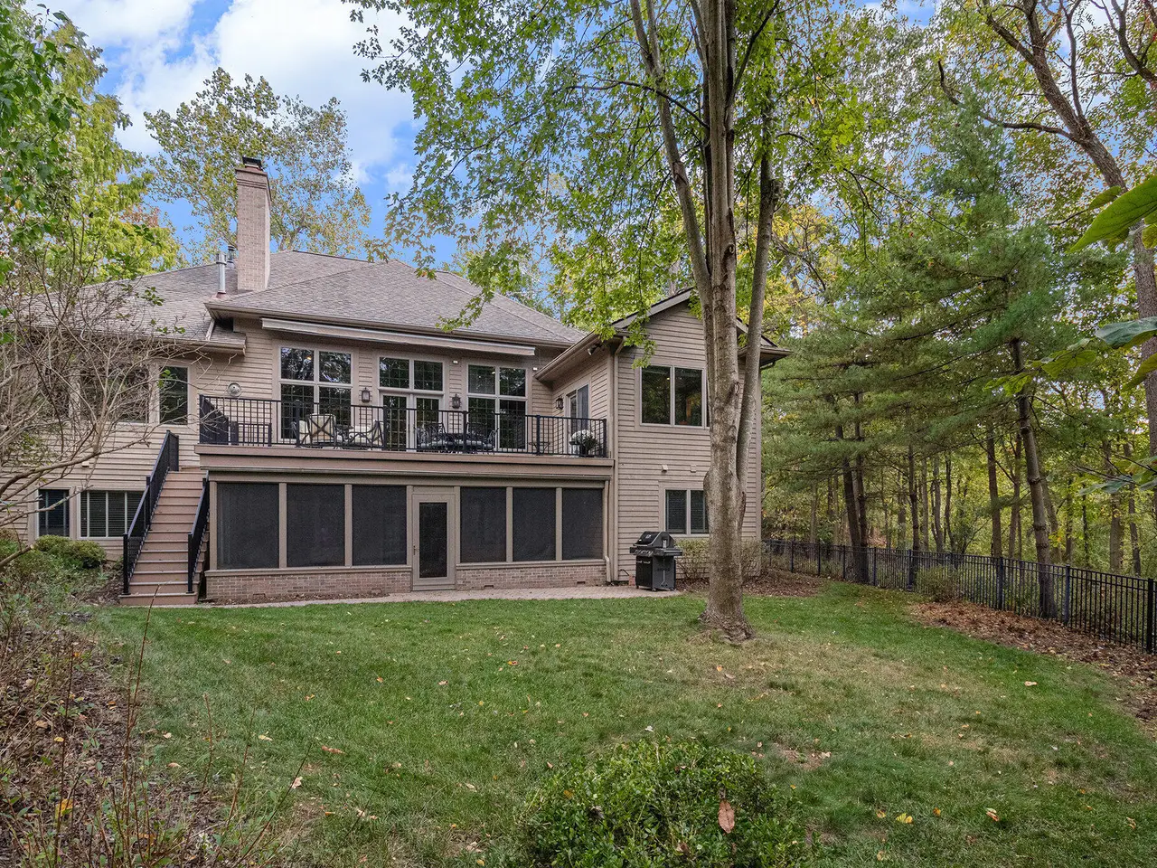 This custom built Ranch by Henry Landau is truly spectacular and includes a panoramic view of Fleming Creek . The home was built with only finest in Design, Materials, and Craftsmanship and has been perfectly modernized to today's standards. The setting is incredible just minutes to all Hospitals and UM Campus locations with a private, wooded 2.3 acre setting featuring panoramic views of Fleming Creek from the large deck and all the main living areas in the home. This home is stunning at every turn. Highlights include a covered entry porch, welcoming foyer, all hardwood floors throughout the main living area, striking Great Room with 12' Ceilings, fireplace, and built-in cabinets and display shelves, updated kitchen with painted white cabinets, quartz counter tops, and stainless steel appliances, wonderful Sun Room with walls of glass to the backyard, spacious formal Dining Room, luxurious main level primary bedroom with fireplace, spa-like bath with stone tile floor, and great closet space, and nice back hall mud room and laundry room. The finished walk-out lower level is fantastic. Features include a large rec room with fireplace, oversized screened porch, three bedrooms, two full baths, kitchenette, exercise space with sauna, and tons of storage. Bedroom 4 is set up as a perfect home office with fireplace. The home has many additional amenities including an oversized garage, fenced backyard, brick paver patio, and retractable awning. You will LOVE this home!