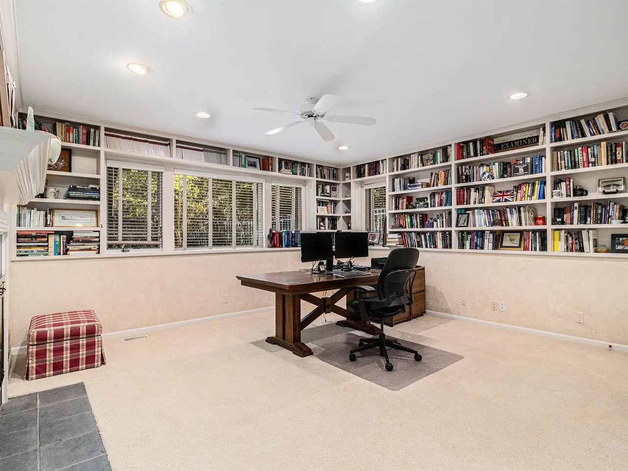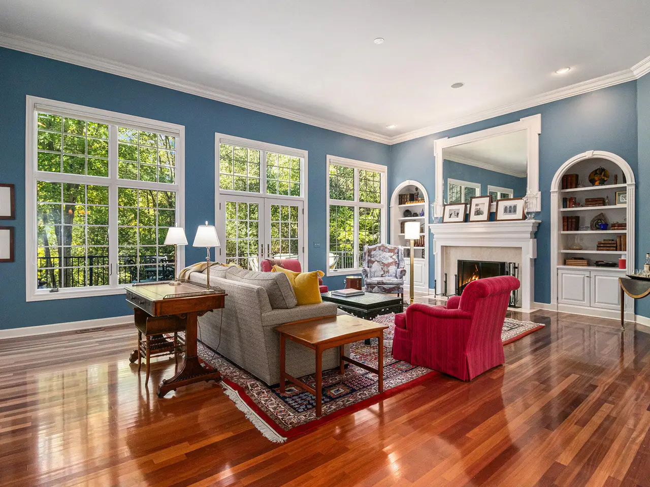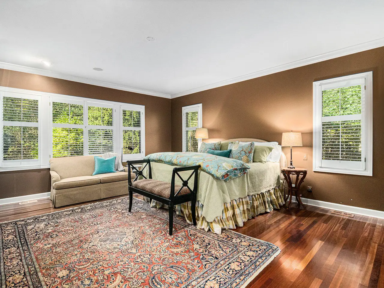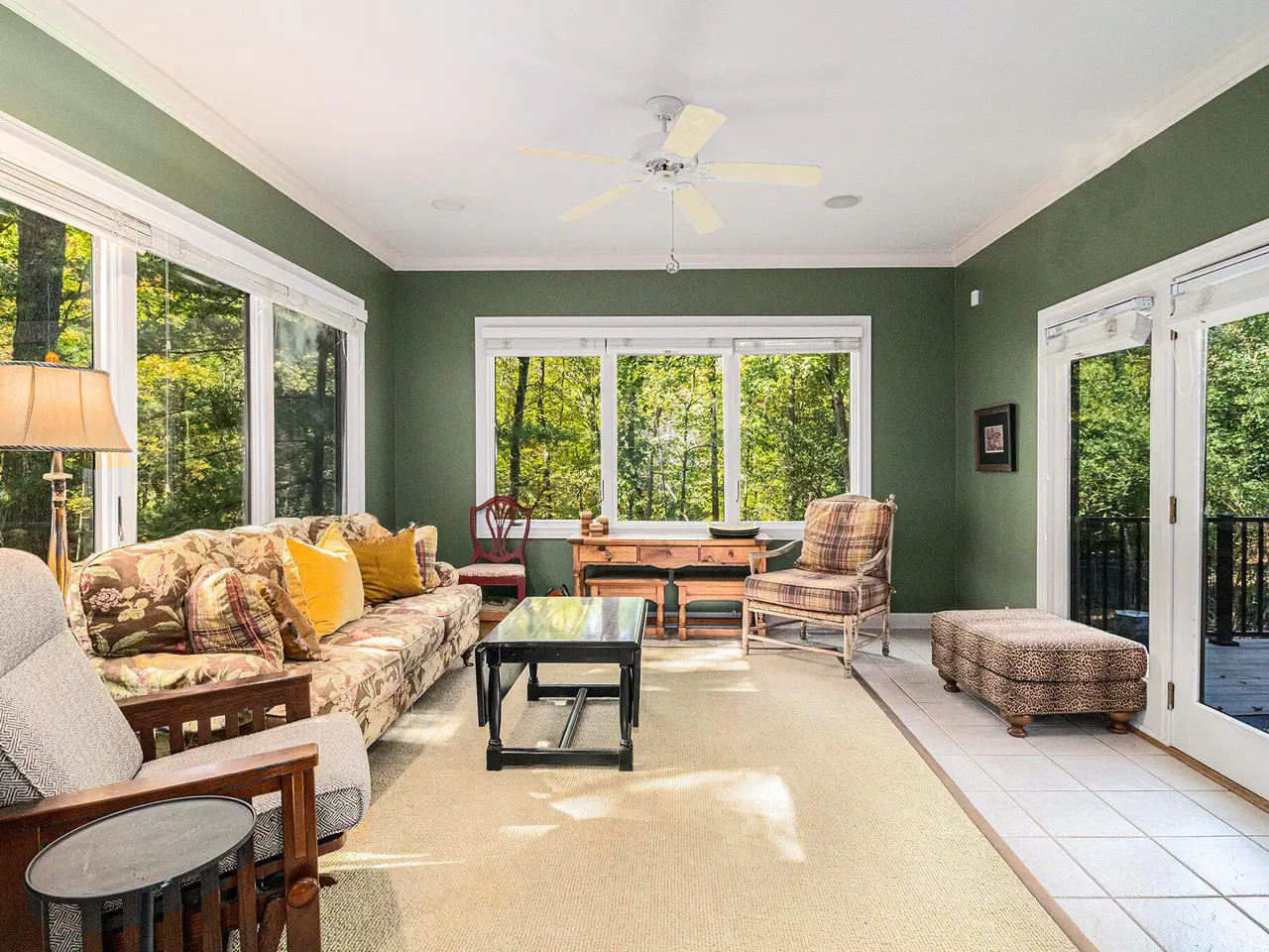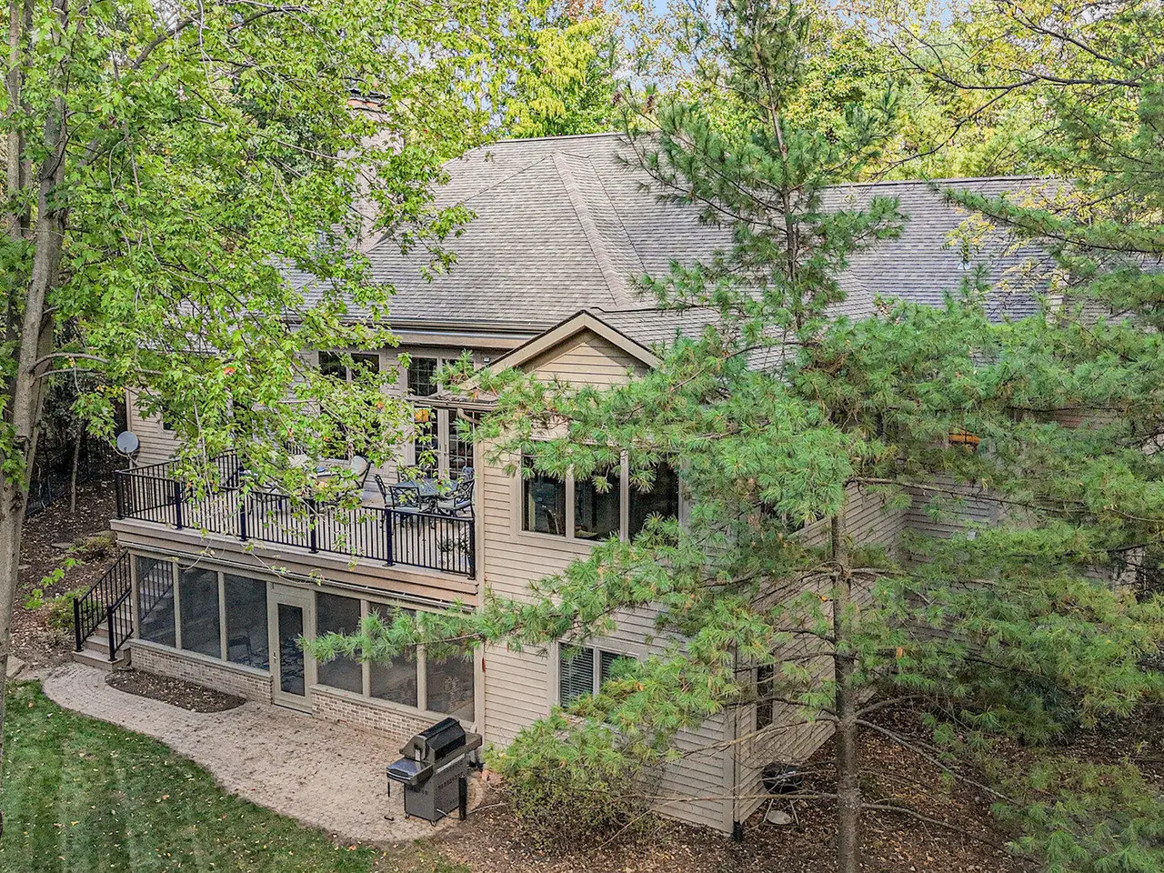 This custom built Ranch by Henry Landau is truly spectacular and includes a panoramic view of Fleming Creek . The home was built with only finest in Design, Materials, and Craftsmanship and has been perfectly modernized to today's standards. The setting is incredible just minutes to all Hospitals and UM Campus locations with a private, wooded 2.3 acre setting featuring panoramic views of Fleming Creek from the large deck and all the main living areas in the home. This home is stunning at every turn. Highlights include a covered entry porch, welcoming foyer, all hardwood floors throughout the main living area, striking Great Room with 12' Ceilings, fireplace, and built-in cabinets and display shelves, updated kitchen with painted white cabinets, quartz counter tops, and stainless steel appliances, wonderful Sun Room with walls of glass to the backyard, spacious formal Dining Room, luxurious main level primary bedroom with fireplace, spa-like bath with stone tile floor, and great closet space, and nice back hall mud room and laundry room. The finished walk-out lower level is fantastic. Features include a large rec room with fireplace, oversized screened porch, three bedrooms, two full baths, kitchenette, exercise space with sauna, and tons of storage. Bedroom 4 is set up as a perfect home office with fireplace. The home has many additional amenities including an oversized garage, fenced backyard, brick paver patio, and retractable awning. You will LOVE this home!