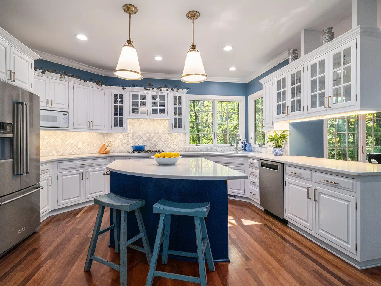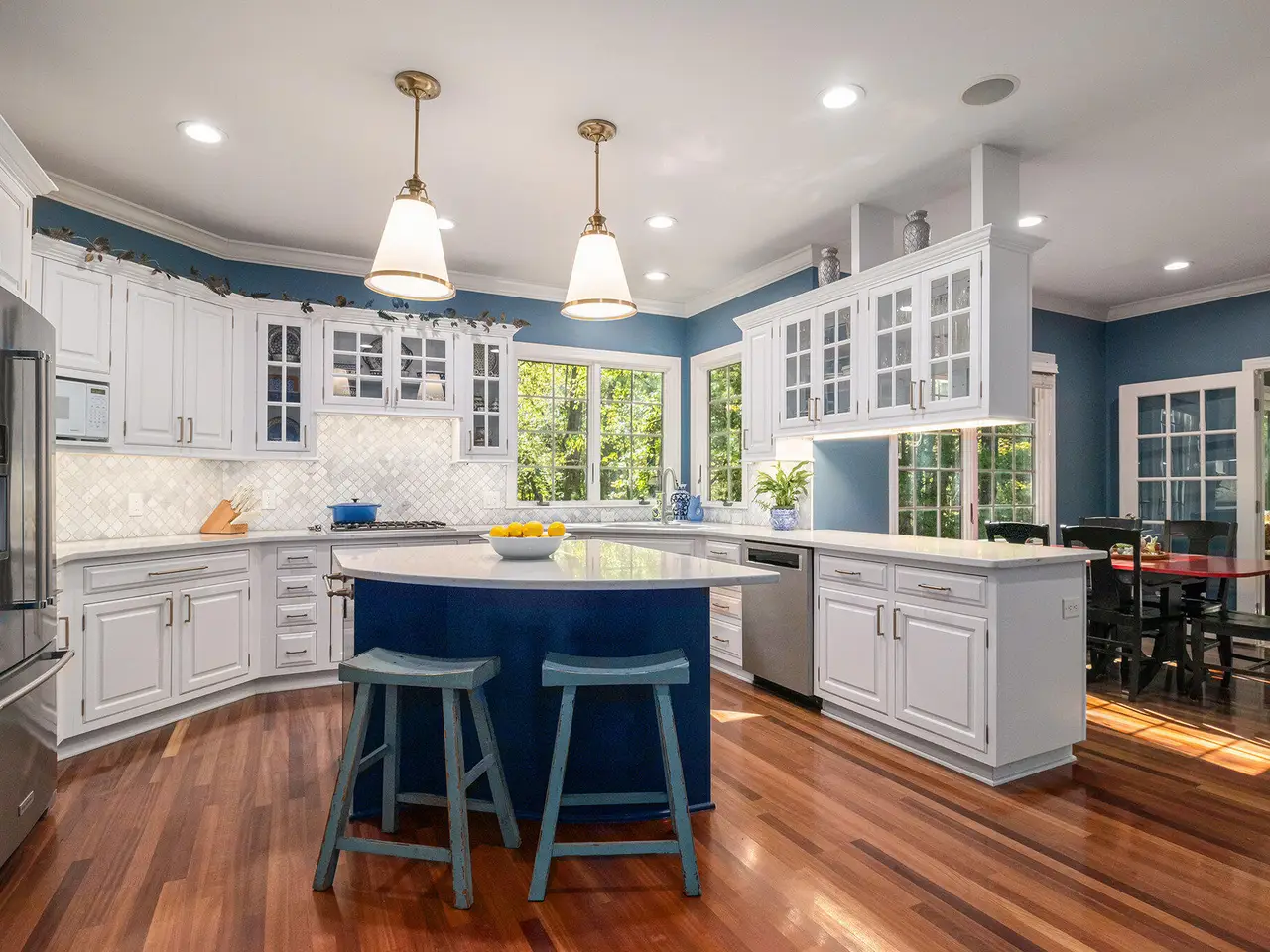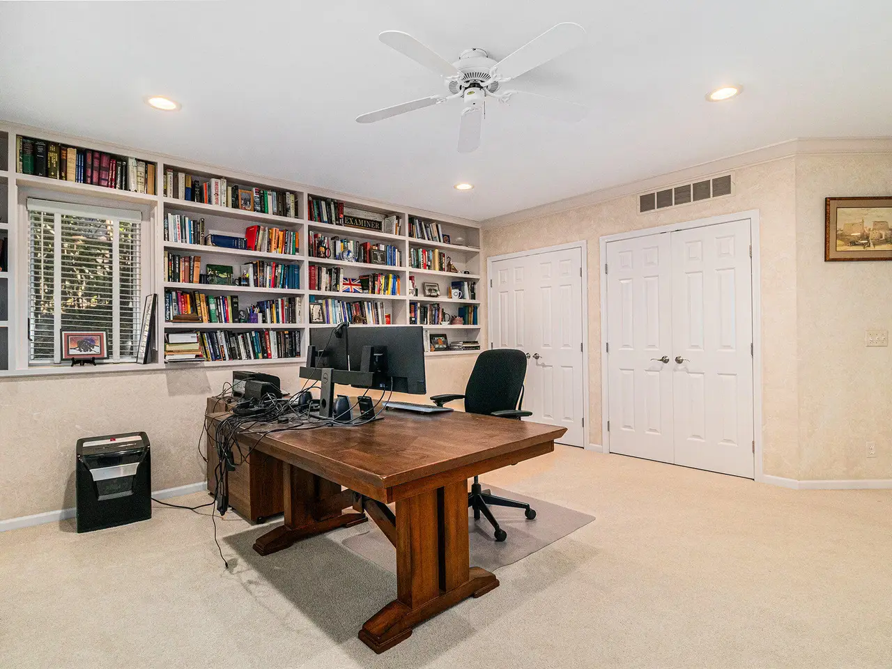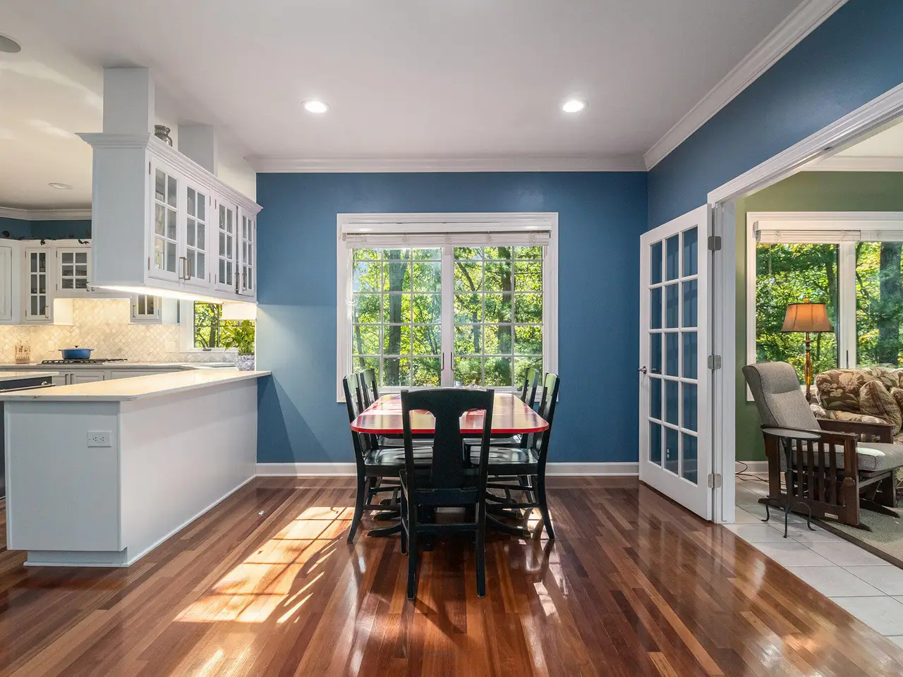 This custom built Ranch by Henry Landau is truly spectacular and includes a panoramic view of Fleming Creek . The home was built with only finest in Design, Materials, and Craftsmanship and has been perfectly modernized to today's standards. The setting is incredible just minutes to all Hospitals and UM Campus locations with a private, wooded 2.3 acre setting featuring panoramic views of Fleming Creek from the large deck and all the main living areas in the home. This home is stunning at every turn. Highlights include a covered entry porch, welcoming foyer, all hardwood floors throughout the main living area, striking Great Room with 12' Ceilings, fireplace, and built-in cabinets and display shelves, updated kitchen with painted white cabinets, quartz counter tops, and stainless steel appliances, wonderful Sun Room with walls of glass to the backyard, spacious formal Dining Room, luxurious main level primary bedroom with fireplace, spa-like bath with stone tile floor, and great closet space, and nice back hall mud room and laundry room. The finished walk-out lower level is fantastic. Features include a large rec room with fireplace, oversized screened porch, three bedrooms, two full baths, kitchenette, exercise space with sauna, and tons of storage. Bedroom 4 is set up as a perfect home office with fireplace. The home has many additional amenities including an oversized garage, fenced backyard, brick paver patio, and retractable awning. You will LOVE this home!