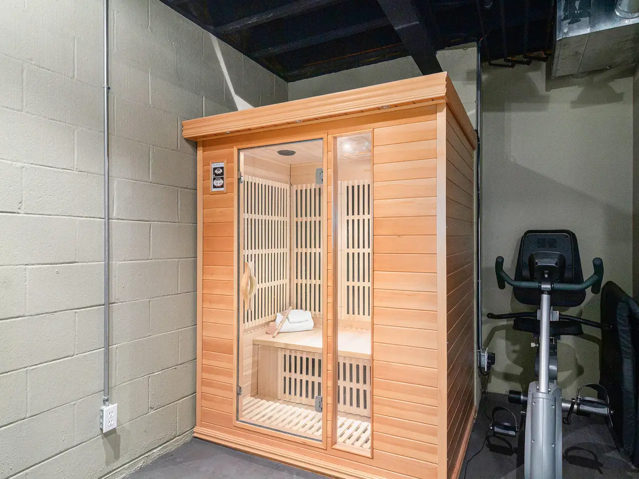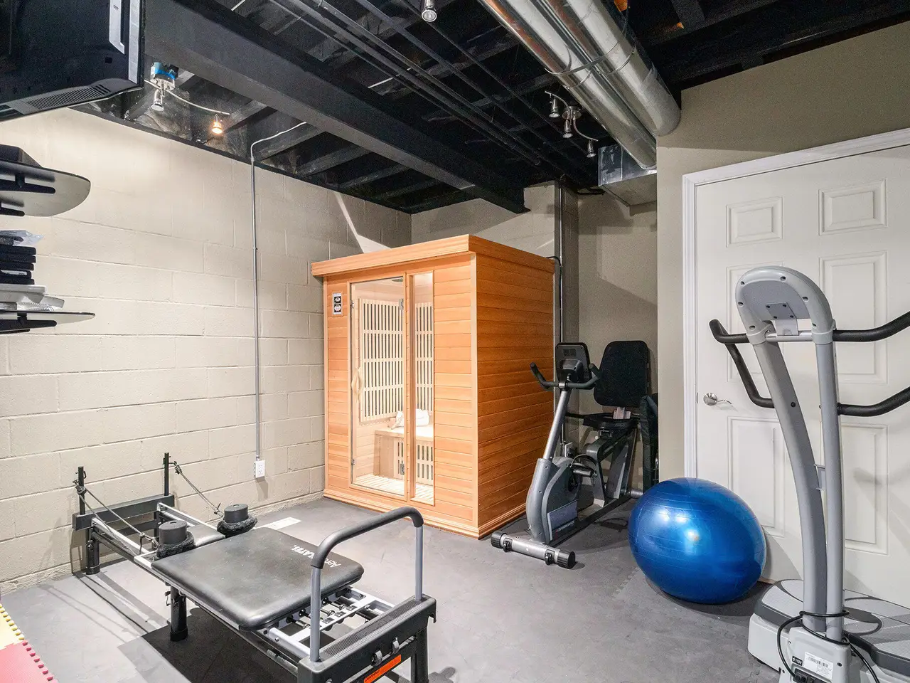 Exercise space with sauna