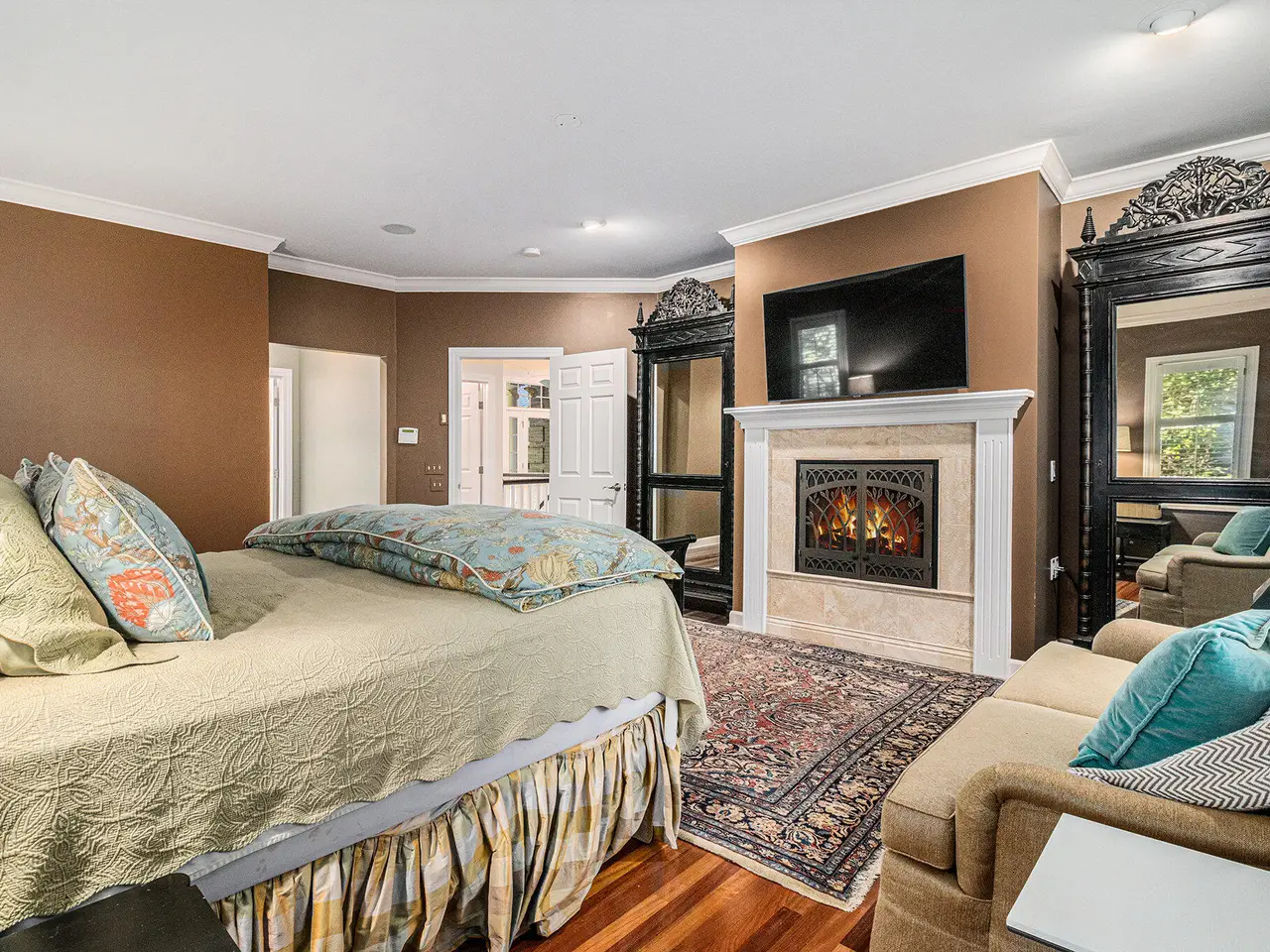 Fireplace in primary bedroom