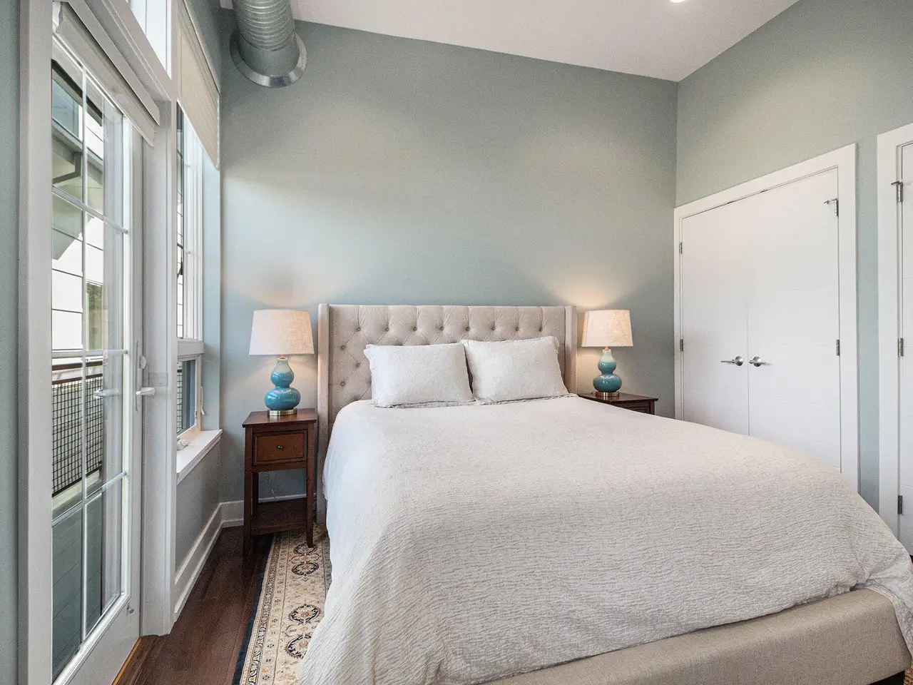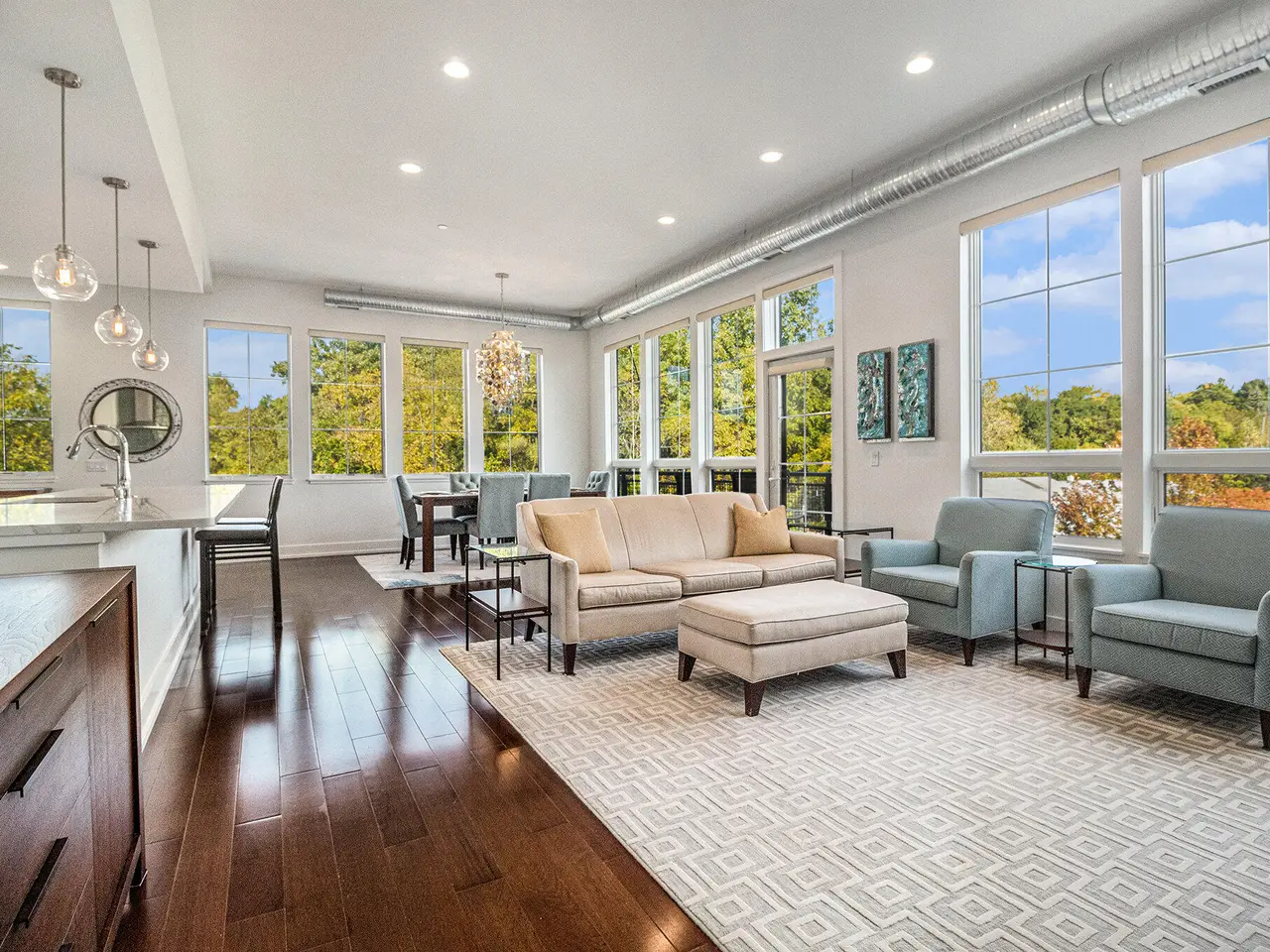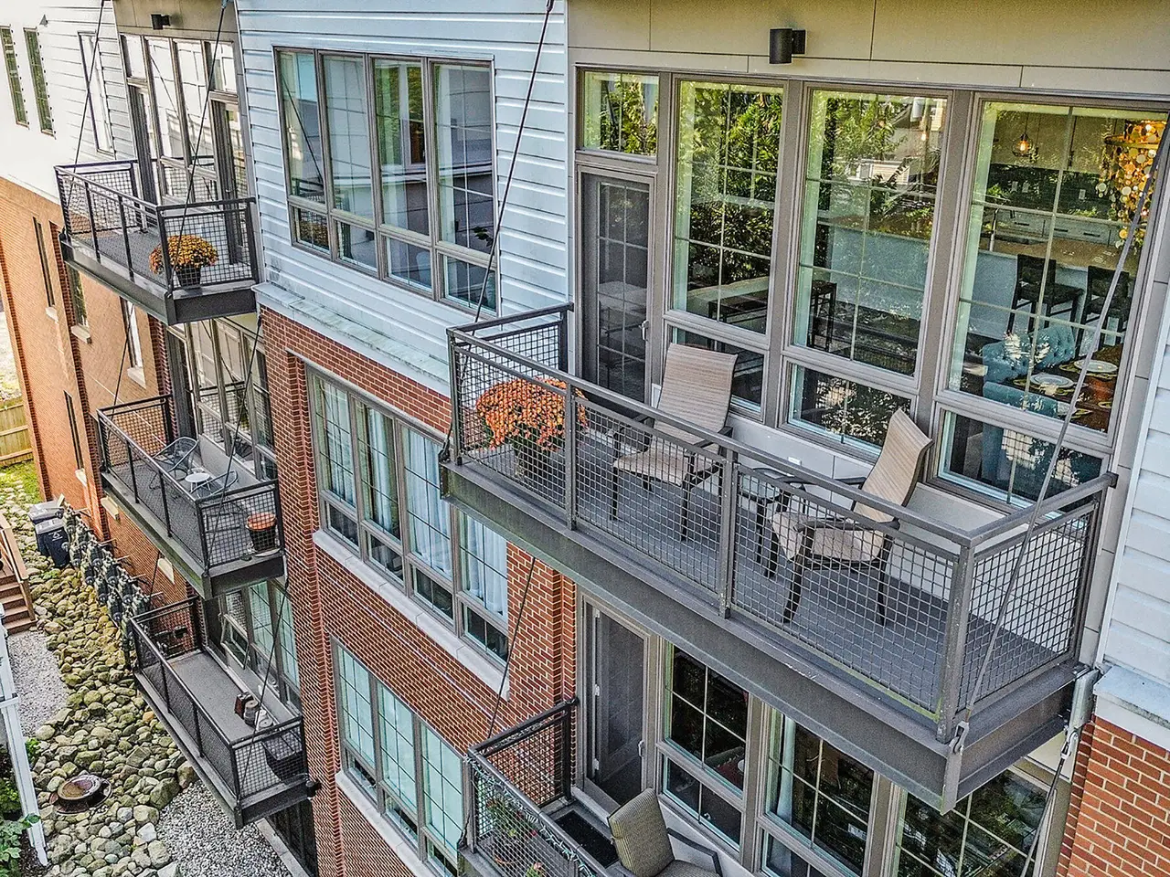 Experience the best of downtown Ann Arbor living in this nearly 2,000 SF ranch-style corner unit condo at 410 N. First. Just steps from Kerrytown's vibrant shops, award-winning dining, the Ann Arbor Farmers Market, and the University of Michigan Central and Medical Campuses, this upscale residence puts you in the heart of it all - yet offers peaceful, unobstructed views of Fish Park right next door. With a Walk Score of 95, this is truly a walker's paradise and a dream for city lovers. Inside, the sun-filled open floor plan is perfect for both everyday living and entertaining. The sleek kitchen features clean white cabinetry, quartz countertops, and premium Wolf and KitchenAid stainless appliances. A central breakfast bar connects seamlessly to the dining and living areas, making it easy to host friends or enjoy a quiet evening at home. The dining room opens to its own balcony, while a spacious deck near the entrance to the unit is ideal for grilling and dining al fresco and provides an additional opportunity to enjoy the outdoors. The luxurious primary suite is your personal retreat, offering a vaulted ceiling, expansive walk-in closet with custom organization, and spa-inspired bath with dual vanities and oversized shower. This bedroom also shares a balcony with the bedroom next door. The two guest bedrooms (one currently an office/den) share a hallway full bath, while wood floors, in-unit laundry with bonus storage, and upgrades like reverse osmosis, water softener, Hunter Douglas window treatments, and whole-house air purification add comfort and ease. In addition to three private outdoor spaces in the unit, you'll have access to the community terrace located on the first floor, as well as the shared bike and storage rooms and a dedicated mail room. This unit also enjoys two assigned spaces in the covered garage. No need to wait for new construction - with its prime downtown location, abundant natural light, and three private outdoor spaces, this well-maintained and stylish condo is the epitome of city living - move right in and enjoy!