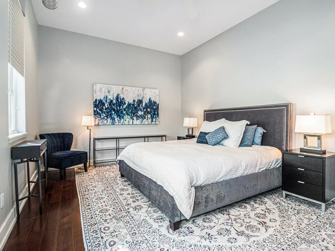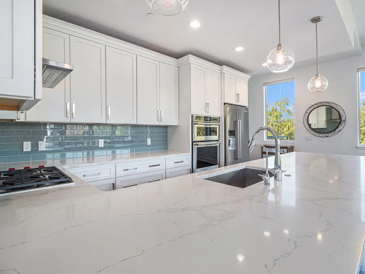 Wolf and KitchenAid stainless appliances Vaulted ceiling in primary suite