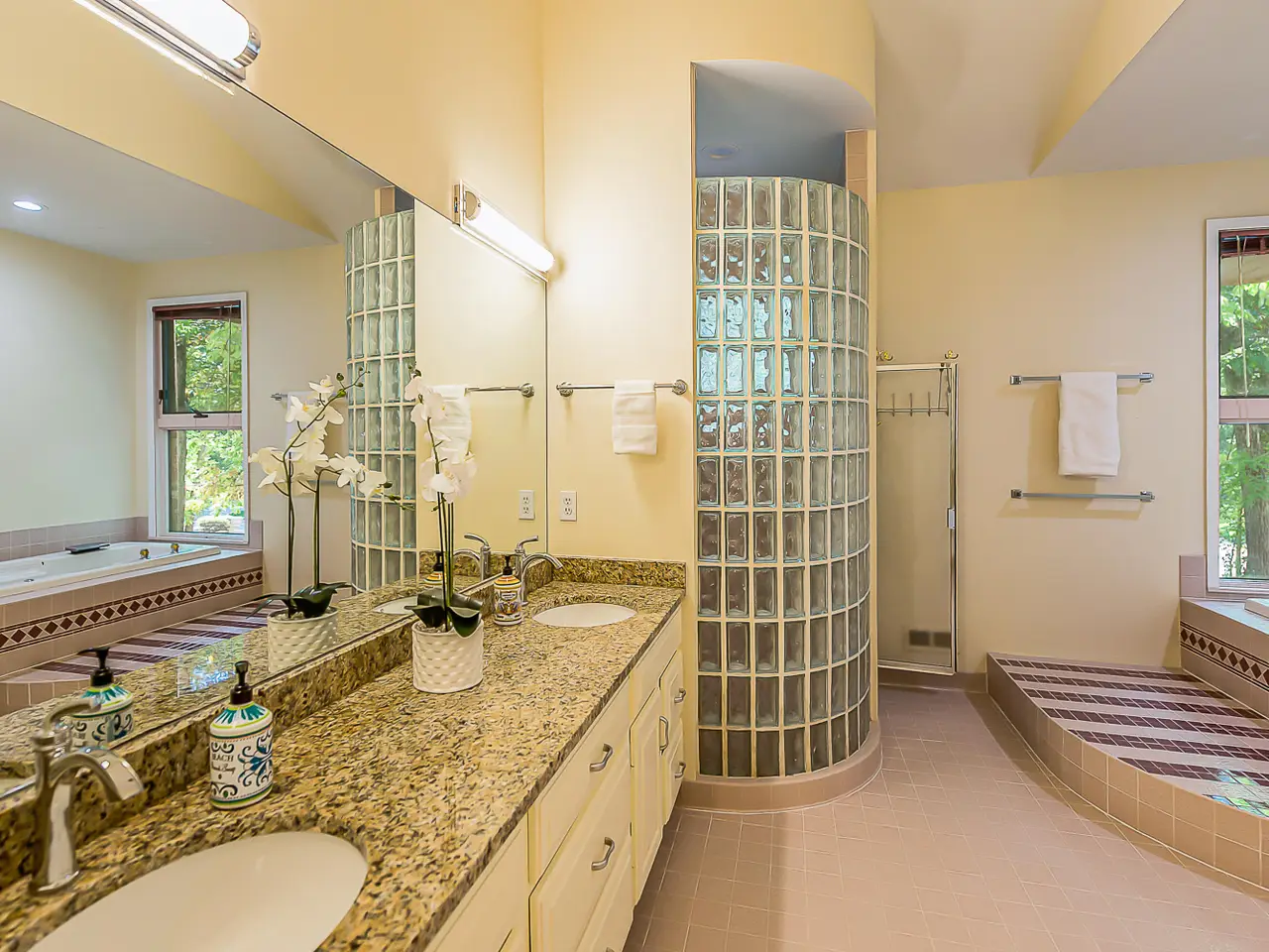Versatility is the word for this spacious Ann Arbor Hills home - perfect for all stages of life! A 3098 SF main level (accessed by stairs or garage elevator) offers everything needed for one level living. Enjoy hardwood floors, large windows for views of the wooded lot and a deck off the kitchen/breakfast area. A spacious primary suite has 2 large closets, dressing area, spa tub, walk-in shower and private deck. Find added utility in the 470 SF bonus play room, office and laundry. The upper level has 3 bedrooms w/hardwood, 2 baths, cedar closet. The 2,000 SF walk-out lower level offers flexibility with a full eat-in kitchen, full bath, expansive living space and access to a paver patio, perfect for entertaining or extended stays. Updates: new carpet, paint, counters, garage floor, LED lighting & more. On a private .69-acre lot, this home blends luxury, privacy, and adaptable living in one of Ann Arbor's most desirable areas. Home Energy Score of 3. Download report at stream.a2gov.org