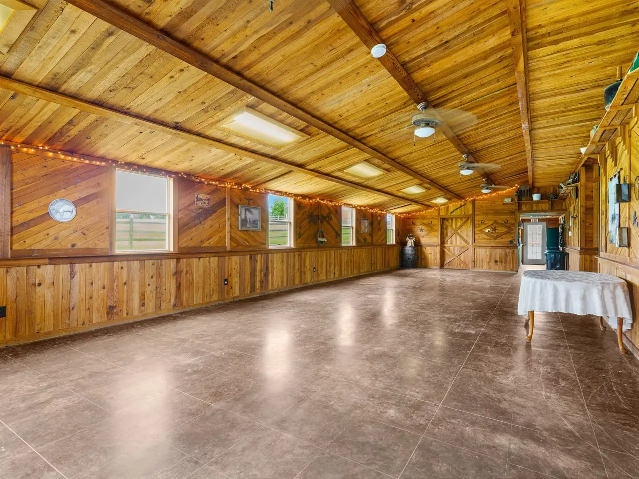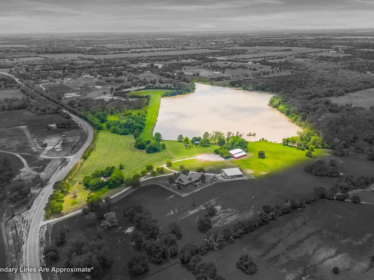 The Longhorn Hill Ranch Venue is a true getaway and a perfect place to raise a family, enjoy the ranch life, or escape the city. This barndominium features vaulted beamed ceilings, 2 huge doors can open for an outdoor experience. Trimmed w cedar wood for unique designs & themes. The 2 front facades that says Jail on one and the other is a porch look will move over on rollers to provide an outdoor opening for a party to flow indoor and outdoors. The structure provides a rustic western atmosphere. The upstairs has living accommodations and a balcony overlooking the Ball Room. 2 bedrooms, Full kitchen,3 baths, ( 1 full bath up and 2 down) storage room. Less than 1 hour from downtown Dallas and DFW airport, this sprawling 63-acre Ranch offers large trees, a 32-acre lake ( owned by sellers and In soil and water conservation), a gazebo, lush pastures, This property is perfect for equine lovers. The Structure and gazebo are located near the lake to make a beautiful setting for weddings, cookouts, and pictures. Ideal location to live and work in a setting for family reunions, retreats, receptions, holiday parties, special birthdays, class reunions, bridal showers, church events, company picnics, & Christmas or New Year parties. Centrally located to many towns. Part of the property has ag exemption due to growing hay. No Mobile or manufactured homes will be added in deed restrictions. lake in a water and soil conservation area but per owners and survey is owned by the sellers. Buyer to verify if there are rules for the lake with Collin County SWCD. Additional 4 bedroom,3 bath, 2 living. Log House with shop on 3.5ish acres may be purchased with a year leaseback.