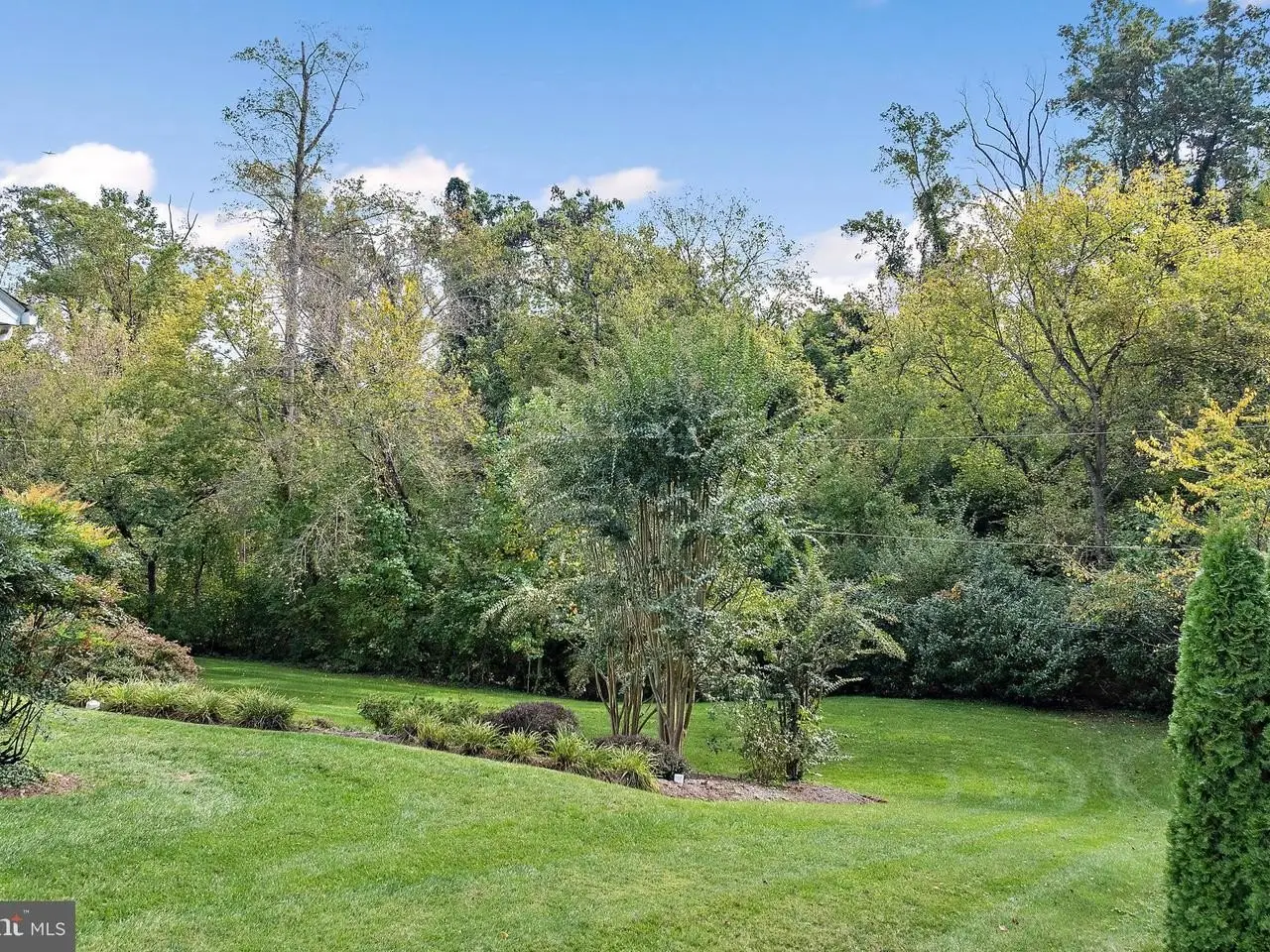 Screened porch overlooking landscaped backyard