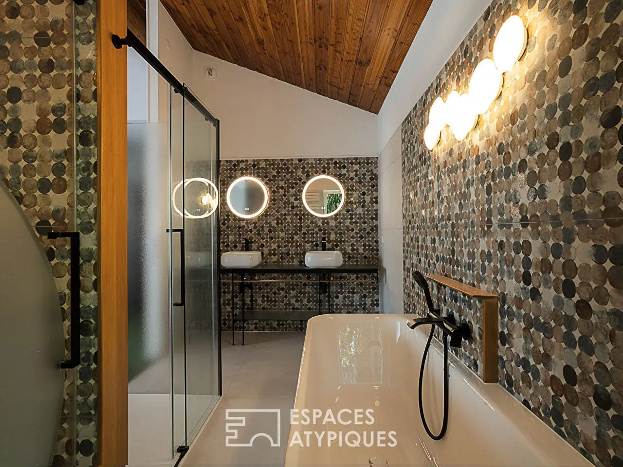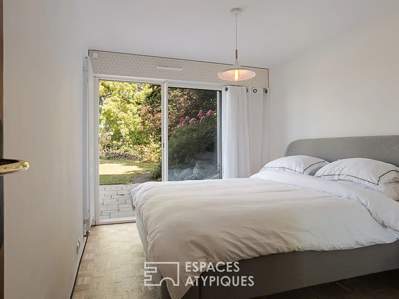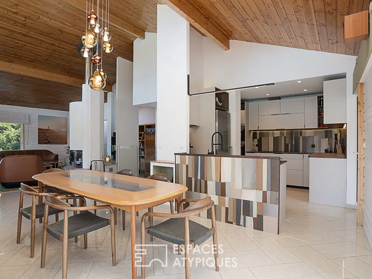 Ideally located in Anthy-sur-Leman, in a peaceful and green environment, this comfortable and atypical architect-designed villa of approximately 170 m2 of living space (220 m2 of usable space), extends on an enclosed and landscaped plot of 3,352 m2 with a swimming pool, in the immediate vicinity of the lake. Passing the entrance, the main level reveals a living space with generous volumes enhanced by a cathedral ceiling and bathed in light thanks to the large bay windows opening onto the garden and its terraces. The kitchen, perfectly equipped, extends into a dining area under glass, while the living room with fireplace and lake view invites relaxation and conviviality. The upper floor also accommodates a master suite designed as a true cocoon of well-being enjoying direct access to the terraces and the swimming pool. It includes a dressing room and an elegant semi-open bathroom with bathtub and walk-in shower. A cloakroom and storage space complete this level. On the lower half-level, a unique room overlooked by the balcony of the living room is distinguished by a monumental custom-made library and loophole windows. Designed in perfect aesthetic continuity, it offers a workspace that is both functional and inspiring. The lower level, organized around a central hall, offers three bedrooms, two of which open onto a terrace extended by the lower part of the garden. This level also includes a bathroom and a laundry room. In its continuation, on the basement floor, wine lovers will find a converted cellar with direct access to the garden. A large multipurpose room, currently used as a gym, as well as a boiler room, complete the features of this superb villa clad in Larch. Outside, the 15-meter long and 5-meter wide swimming pool promises true moments of pleasure. A garage with adjoining storeroom reinforces the many advantages of this property, completely renovated with care and attention to detail by its owners. Finally, an additional building surface of 137 m2 on the ground offers rare potential, making this property a real favorite for lovers of exceptional properties. Close to beaches, shops, schools and transport. ENERGY CLASS: D / CLIMATE CLASS: D Estimated average amount of annual energy expenditure for standard use, established from energy prices for the year 2021/2022/2023: between 3,140 Euros and 4,310 Euros. Information on the risks to which this property is exposed is available on the Georisques website for the areas concerned: www.georisques.gouv.fr. ESPACES ATYPIQUES GENEVOIS - LÉMANREF. 1821EAAdditional information* 7 rooms* 4 bedrooms* 1 bathroom* 1 shower room* 1 floor in the building* Land area: 3352 m2* Parking: 4 spaces* Property tax: €3,034Energy performance diagnosticsPrimary energy consumptiond: 248 kWh/m2.yearExtremely efficient housing*A*B*C*248kWh/m2.year42*kg CO2/m2.yearD*E*F*GExtremely inefficient housing* Of which greenhouse gas emissionsd: 42 kg CO2/m2.yearLow CO2 emissions*A*B*C*42kg CO2/m2.yearD*E*F*GEvery high CO2 emissionsAverage estimated annual energy expenditure for standard use, indexed to the years 2021, 2022, 2023: between €3,140 and €4,310 (subscription included)Agency feesThe fees are inclusive of tax and are payable by the seller