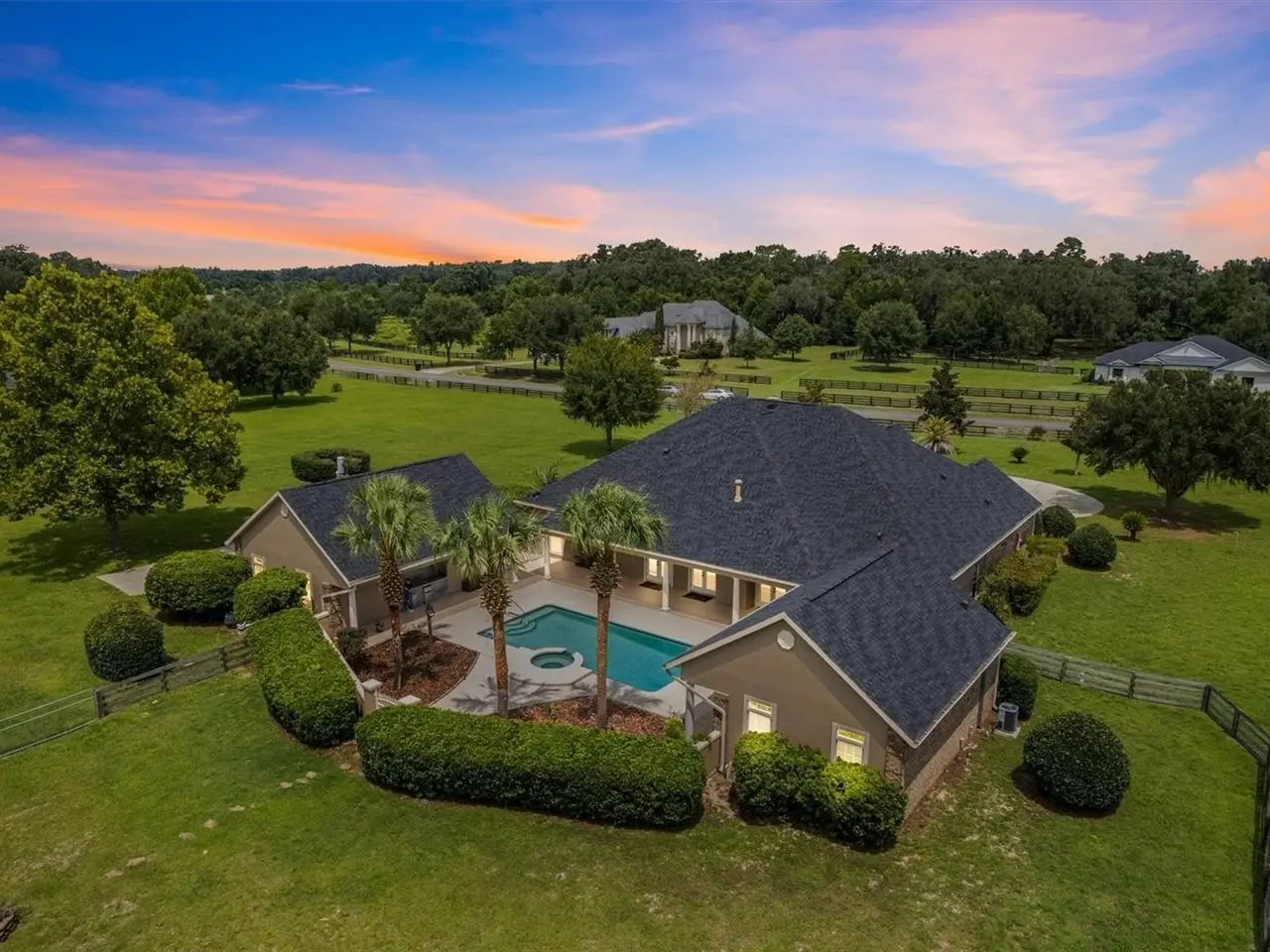 One or more photo(s) has been virtually staged. Luxury Pool Home with In-Law/Guest House, and Dual Three-Car Garage This stunning six-bedroom, five-bathroom, six car garage home located in Pradera offers exceptional living inside and out. Pradera is an equestrian-friendly, gated community in Archer, Florida known for its spacious lots, luxury homes, and miles of trails for riding, walking, and biking. Residents enjoy a blend of seclusion and convenience, with easy access to I-75, (6miles) UF/Shands (10miles) the World Equestrian Center, (21 miles) Restaurants, and Shopping. The main residence features five bedrooms, four bathrooms, a dedicated office, a spacious upstairs bonus room and an attached three-car garage. The three-way split plan is perfect for a large family. A detached in-law or guest house with a private entrance adds comfort and flexibility, while an additional three-car garage provides ample space for the car enthusiast. Outdoors, the beautifully fenced pool area offers a lovely pool and heated spa, an outdoor shower, and a summer kitchen. Recently updated with new pool area fans and a new pool pump, this space is perfect for year-round entertaining. Interior upgrades include wood and LVP flooring, crown molding, glazed cabinetry, and granite countertops. Modern conveniences abound with Starlink installed, a central vacuum system, security system, stand-alone safe, generator with transfer switch, and a home warranty. Recent improvements that ensure lasting value: Roof (2024) Titan XT 30-year roof rated for 160 mph winds, three new HVAC units, new dishwasher, refrigerator, central vacuum and fresh exterior paint. Roof, Home Warranty, and Starlink are all transferable to new homeowner. Come see this rare combination of luxury, functionality, and peace of mind—all in one exceptional property.
