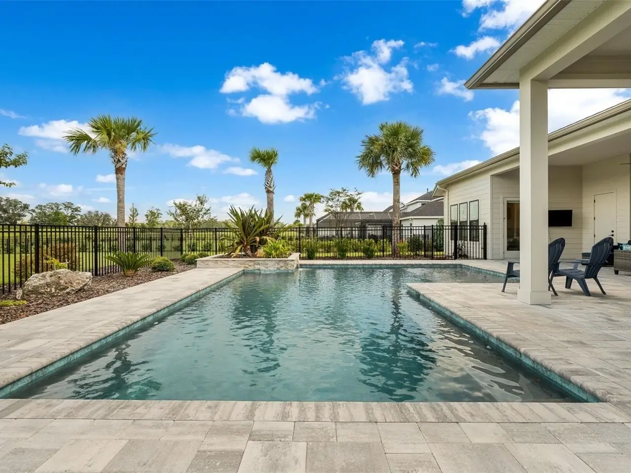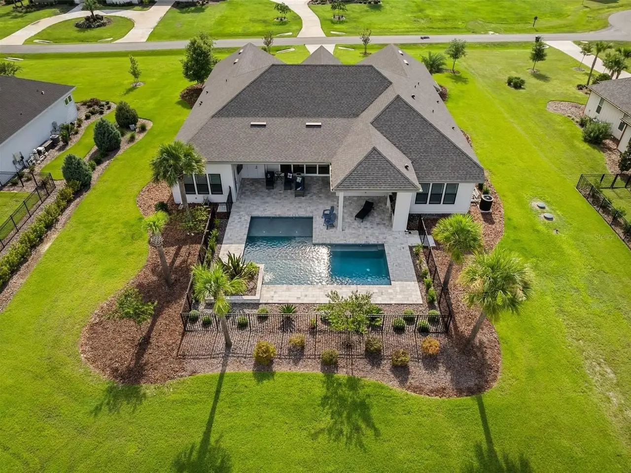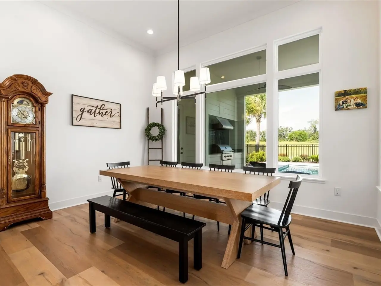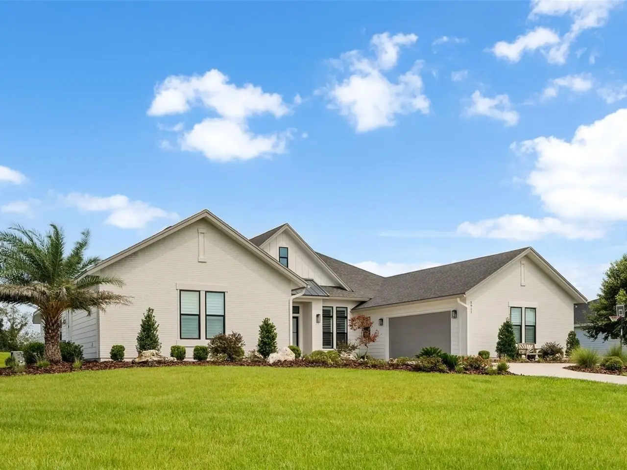 Designed and built by Barry Bullard Homes, this estate blends timeless style with today’s most sought after features, all thoughtfully placed on a fully landscaped, one-acre lot in one of Gainesville’s most desirable luxury communities - Flint Rock. With over 3,600 square feet, this home offers four spacious bedrooms, four full bathrooms, a dedicated study, formal dining, and a flex room with a custom beverage bar that opens directly to your outdoor living space. You’ll instantly appreciate every detail of the kitchen, from the rift-cut oak cabinetry and quartz countertops to the oversized island, stone hood, 5-burner gas cooktop, a built-in convection oven integrated above the microwave, and the wine chiller tucked into its own elegant nook with glass-front cabinets above. The walk-in pantry offers exceptional storage with plenty of space for small appliances, bulk items, and everyday essentials. It doesn’t stop there..your own dedicated household supply room offers even more room for seasonal decor, cleaning essentials, or just extra bulk supplies. Laundy just became that much easier with additional cabinetry, a folding counter, and a designated space to hang clothes. Wood plank flooring runs throughout the main living areas, offering durability with an elevated look. 16' vaulted ceilings with stained wood beams define the great room, which features a gas fireplace, built-ins, and 10’ stack-back sliders that disappear to reveal an expansive lanai and pool. The primary suite has dual walk-in closets, a freestanding soaking tub, and a spa-like walk-in shower. Two full-size, 2-car garages allow for separate entryways from either side of the house for seamless access into the home- each with its own custom drop zone and built-in storage. Out back, the patio is fully paved and made for Florida days. Enjoy a saltwater pool with a sun shelf and flowing water feature, a summer kitchen with a built-in grill and sink, and plenty of covered space to relax or host. Additional energy-efficient upgrades include spray foam insulation, tankless water heaters, a two-zone high-efficiency HVAC system, and vinyl insulated low E windows, all designed to enhance comfort and performance year-round. Flint Rock is a thoughtfully planned community designed to preserve open space and natural beauty. Residents get to enjoy access to recreational areas, nature trails, orchards with fruit and nut-bearing trees, community gardens, and winding walking paths offering more green space than a typical Gainesville subdivision. Schedule a private tour to see the only available home in the neighborhood!