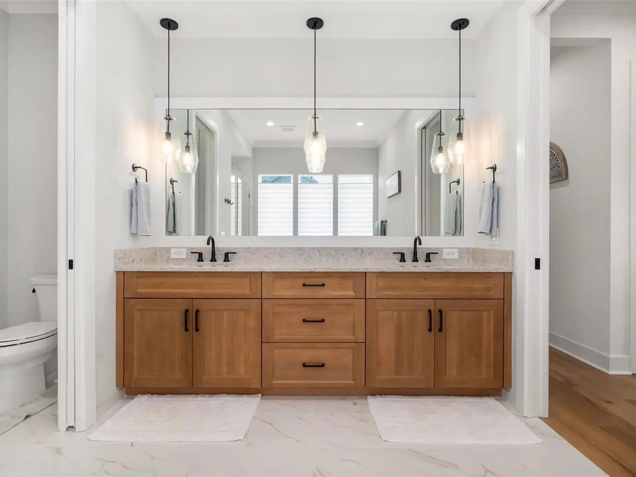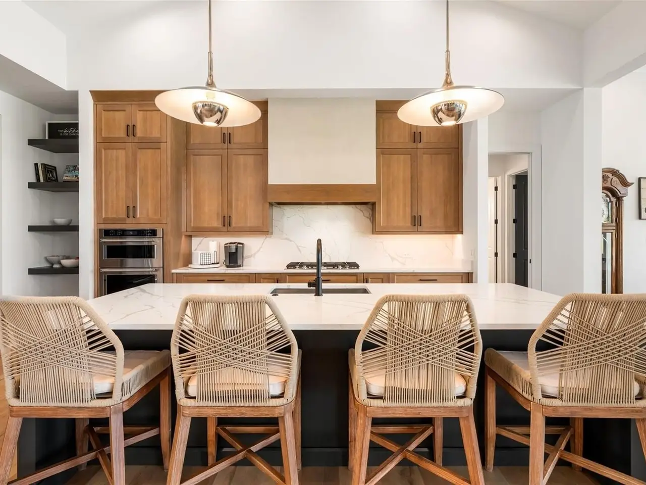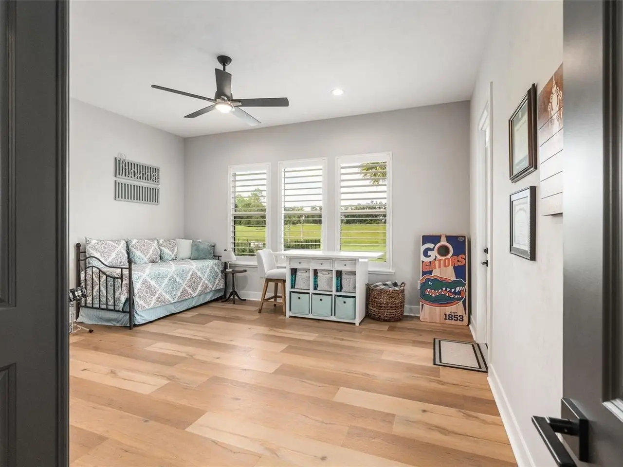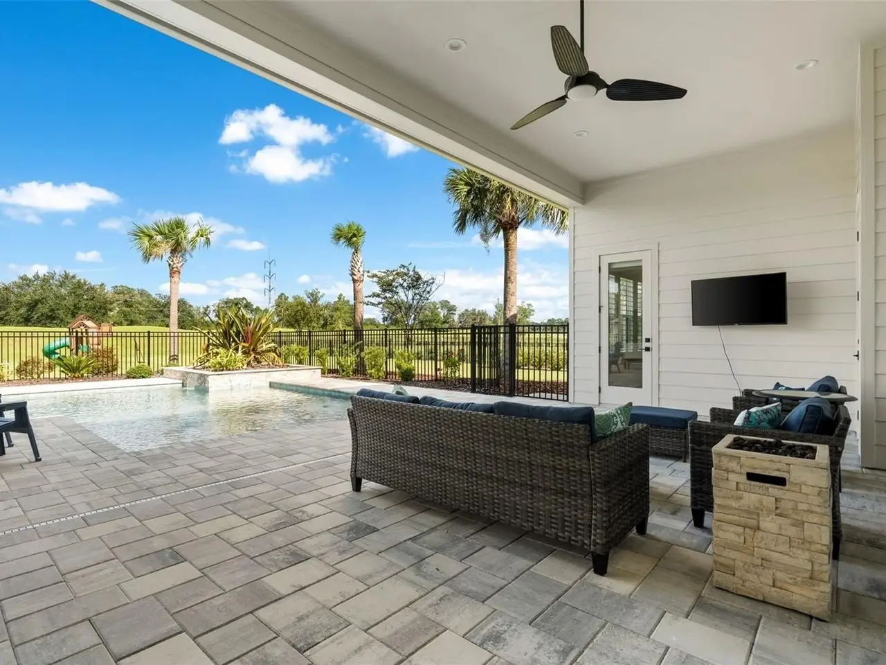 Designed and built by Barry Bullard Homes, this estate blends timeless style with today’s most sought after features, all thoughtfully placed on a fully landscaped, one-acre lot in one of Gainesville’s most desirable luxury communities - Flint Rock. With over 3,600 square feet, this home offers four spacious bedrooms, four full bathrooms, a dedicated study, formal dining, and a flex room with a custom beverage bar that opens directly to your outdoor living space. You’ll instantly appreciate every detail of the kitchen, from the rift-cut oak cabinetry and quartz countertops to the oversized island, stone hood, 5-burner gas cooktop, a built-in convection oven integrated above the microwave, and the wine chiller tucked into its own elegant nook with glass-front cabinets above. The walk-in pantry offers exceptional storage with plenty of space for small appliances, bulk items, and everyday essentials. It doesn’t stop there..your own dedicated household supply room offers even more room for seasonal decor, cleaning essentials, or just extra bulk supplies. Laundy just became that much easier with additional cabinetry, a folding counter, and a designated space to hang clothes. Wood plank flooring runs throughout the main living areas, offering durability with an elevated look. 16' vaulted ceilings with stained wood beams define the great room, which features a gas fireplace, built-ins, and 10’ stack-back sliders that disappear to reveal an expansive lanai and pool. The primary suite has dual walk-in closets, a freestanding soaking tub, and a spa-like walk-in shower. Two full-size, 2-car garages allow for separate entryways from either side of the house for seamless access into the home- each with its own custom drop zone and built-in storage. Out back, the patio is fully paved and made for Florida days. Enjoy a saltwater pool with a sun shelf and flowing water feature, a summer kitchen with a built-in grill and sink, and plenty of covered space to relax or host. Additional energy-efficient upgrades include spray foam insulation, tankless water heaters, a two-zone high-efficiency HVAC system, and vinyl insulated low E windows, all designed to enhance comfort and performance year-round. Flint Rock is a thoughtfully planned community designed to preserve open space and natural beauty. Residents get to enjoy access to recreational areas, nature trails, orchards with fruit and nut-bearing trees, community gardens, and winding walking paths offering more green space than a typical Gainesville subdivision. Schedule a private tour to see the only available home in the neighborhood!