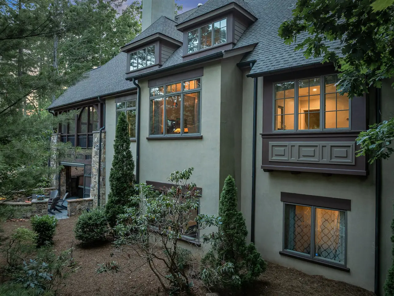 Snuggled into a quiet enclave in The Cliffs at Walnut Cove, the not-so-big home you've been seeking awaits. This charming cottage gives an architectural nod to Asheville's European influence yet ensures well-appointed spaces for everyone. An extensive remodel to the kitchen and primary bath, as well as an expansion of the outdoor living space occurred in 2023. Outdoor living reigns supreme in Walnut Cove! Indulge yourself in the luxurious hot tub hidden behind the retractable screen on the lower-level patio. Then dry off and warm up by the natural gas-powered fire pit mere steps away. Two generous guest suites downstairs and another one upstairs complement the main-floor primary bedroom. Here you enjoy easy access to Walnut Cove's miles of hiking trails, streams and waterfalls, and standard-setting 18,000 square foot wellness center. World-class golf, dining and merriment await you in Walnut Cove's Club village a few minutes away, while Asheville's best remains easy to explore.